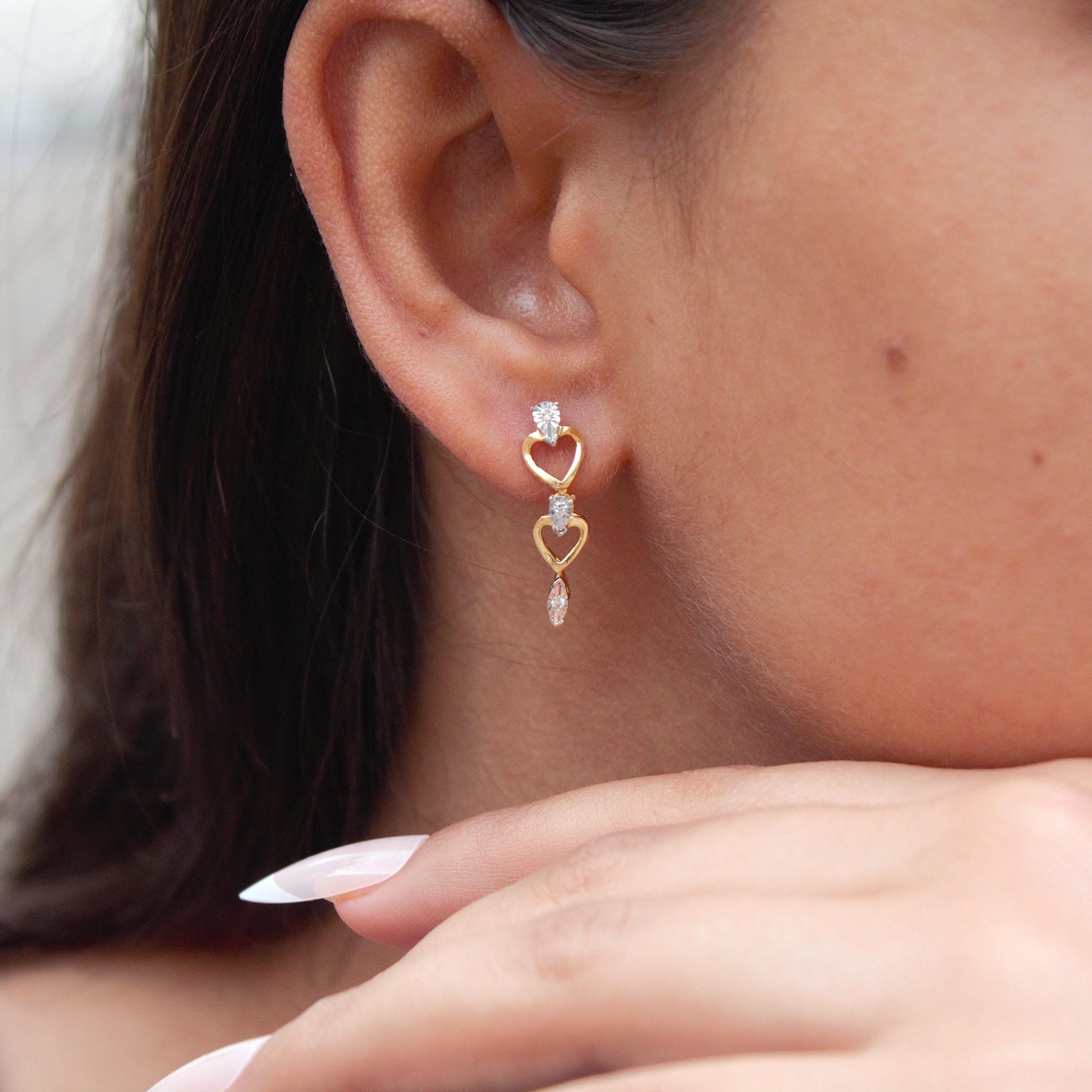 0.07 Carat Natural Diamonds Earrings, Real Diamond Solid Gold Jewelry, Heart Shape Dangle Earrings, 14K Gold With IGI Certified Jewelry