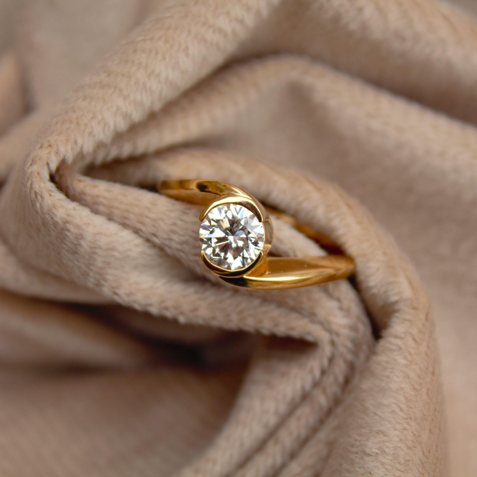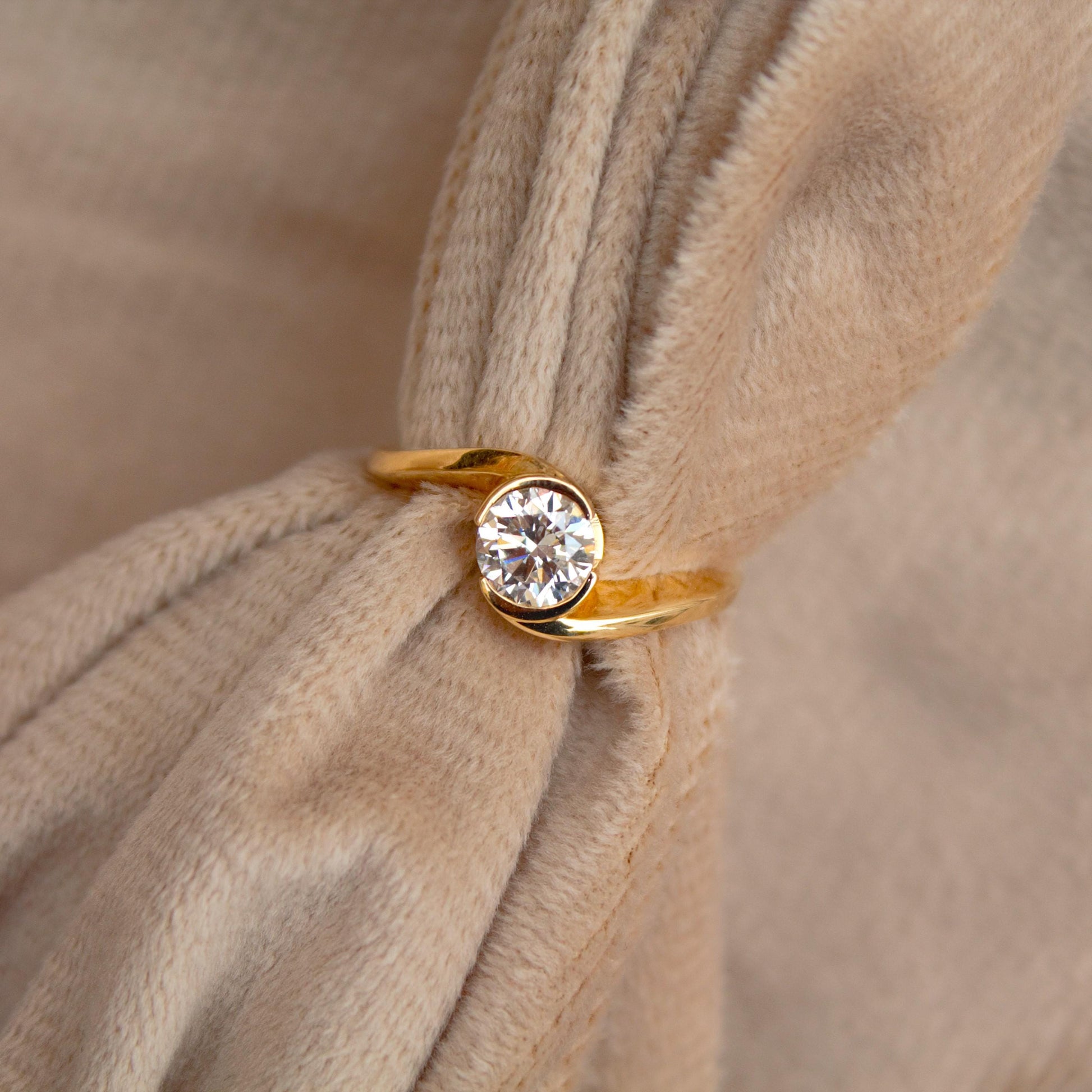 0.90 Carat Lab Grown Diamond Ring, US 6.25 Solid 14K Gold Ring, Perfect for Engagement or Wedding Gift, Statement Gold Ring for Women Product Details :- Diamond Details: ↣ Type : Lab Grown Diamond (CVD/HPHT) ↣ Shape : Round ↣ Size : 6 MM ↣ Weight : 0.91 Ct. ↣ No. of Diamond : 1 ↣ Color/ Clarity : EF VVS Ring Details : ↣ Material : 14K Solid Yellow Gold ↣ Setting : Tension ↣ Size : US 6.25 ↣ GW : 3.56 Gm. ↣ NW : 3.373 Gm. Customization:- We are able to make changes to this design according to your need or can make any other design you may desire, just send us photo of your favorite product and get it made in your desired materials. Care Instructions:- Wipe your jewelry with a soft cloth after every use Always store your jewelry in a flat box to avoid accidental scratches About Lab Diamond :- Lab-grown diamonds share the same physical, chemical, and optical properties as mined diamonds. Their matching brilliance and sparkle make their appearance indistinguishable from diamonds sourced from the Earth. These gems are created in controlled, humane conditions. This eliminates concerns about 'blood diamonds' or worker exploitation that can occur in diamond mining. Lab-grown diamonds shine brightly as an excellent choice for your jewelry. These ethical diamonds offer the identical aesthetic of mined diamonds, with the added benefits of sustainability, affordability, and higher quality. If you have any questions or need more information, Please feel free to contact us. For more amazing designs visit our shop https://www.etsy.com/shop/Gemethysts