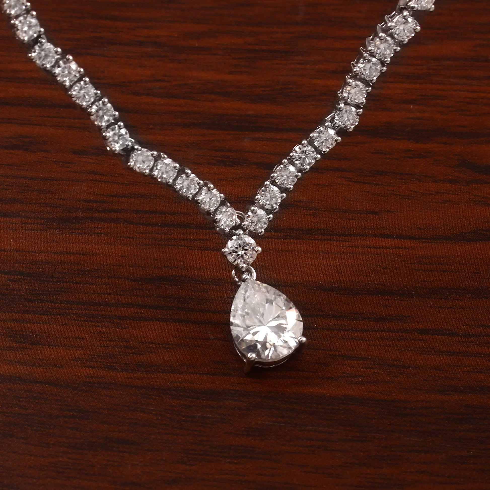 10k 14k 18k Solid Gold Moissanite Necklace, Moissanite Pear Drop Necklace, Victorian Moissanite Necklace, Perfect Wedding Gift for Bride