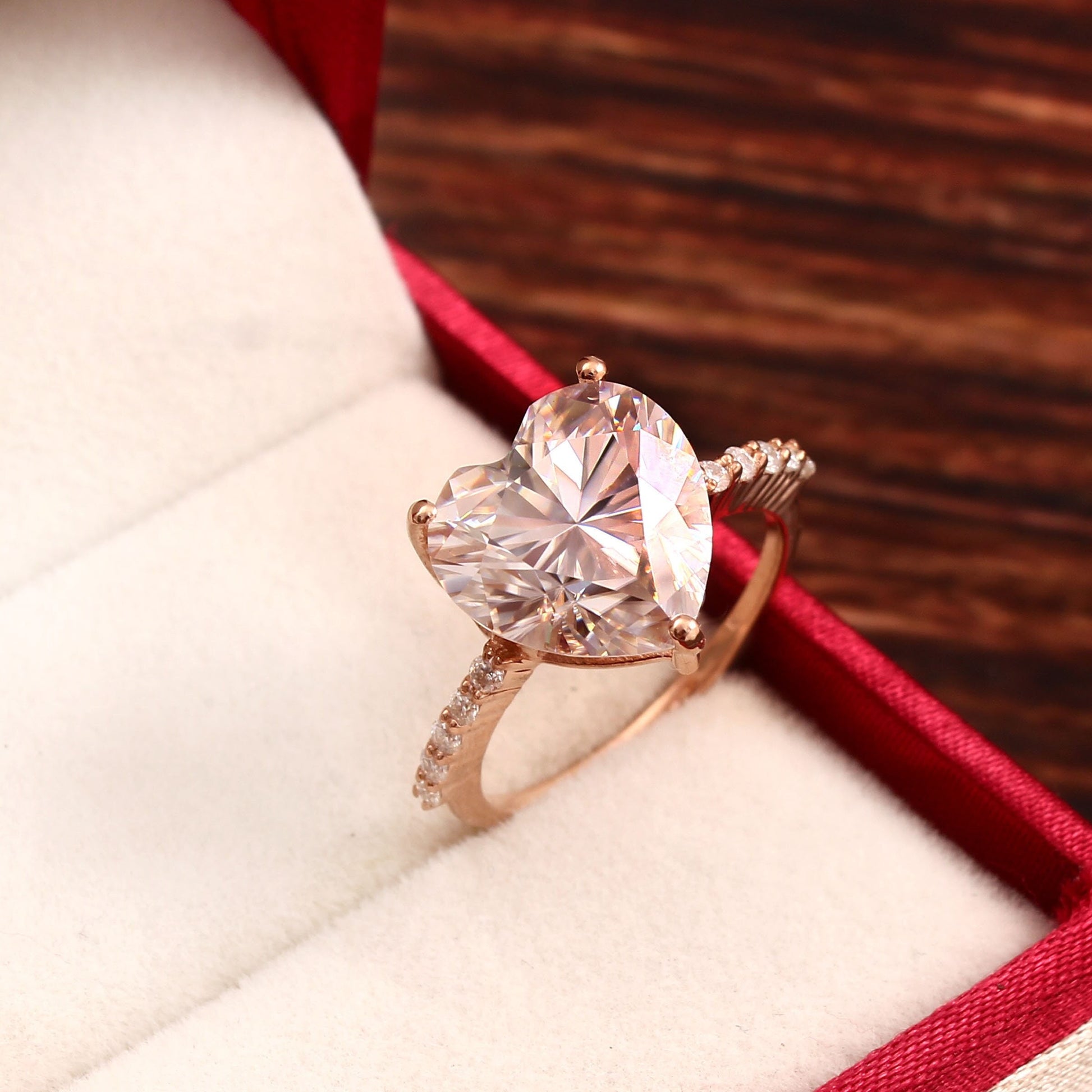 14K Gold Moissanite Heart Ring, Semi Precious Gemstone Ring, Solid Gold Moissanite Ring, Designer Wedding Ring, Statement Ring for Women Product Details : Material ::- 10K, 14K, 18K Solid Gold ✥ 𝐌𝐚𝐢𝐧 𝐒𝐭𝐨𝐧𝐞 𝐃𝐞𝐭𝐚𝐢𝐥𝐬 ↣ Shape: Heart ↣ Type: Moissanite ↣ Weight: 5.2 Ct (App.) ↣ Dimension: 11 MM ↣ Color: Colorless ↣ Clarity: VVS ↣ Making Process : Handmade - Crafted by our experienced team ✥ 𝐒𝐢𝐝𝐞 𝐒𝐭𝐨𝐧𝐞 𝐃𝐞𝐭𝐚𝐢𝐥𝐬 ↣ Shape: Round ↣ Type: Moissanite ↣ Dimension: 1.5 MM ↣ Color: Colorless ↣ Clarity: VVS ↣ Making Process: Handmade - Crafted by our experienced team Customization:- We are able to make changes to this design according to your need or can make any other design you may desire, just send us photo of your favourite product and get it made in your desired materials. Care Instructions:- Wipe your jewelry with a soft cloth after every use Always store your jewelry in a flat box to avoid accidental scratches ✥✥✥✥✥✥Benefits Of Wearing Moissanite Gemstone✥✥✥✥✥✥ Moissanite a diamond alternative encourages you to set greater goals and accomplish success and recognition in your industry of choice. Your personality becomes more endearing, likeable, and magnificent. Also Moissanite is diamond tester positive. Moissanite is believed to be a stone of the future and can help those who want to manifest their dreams and desires. It is said to enhance intuition and creativity and can help you tap into your inner power and potential. If you have any questions or need more information, Please feel free to contact us. For more amazing designs visit our shop https://www.etsy.com/shop/Gemethysts
