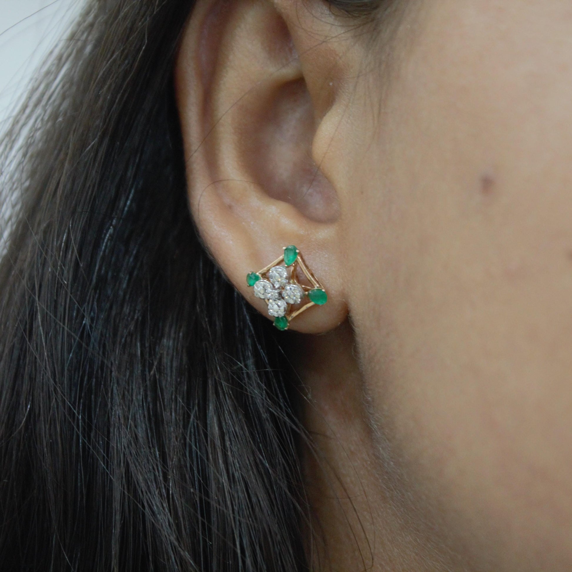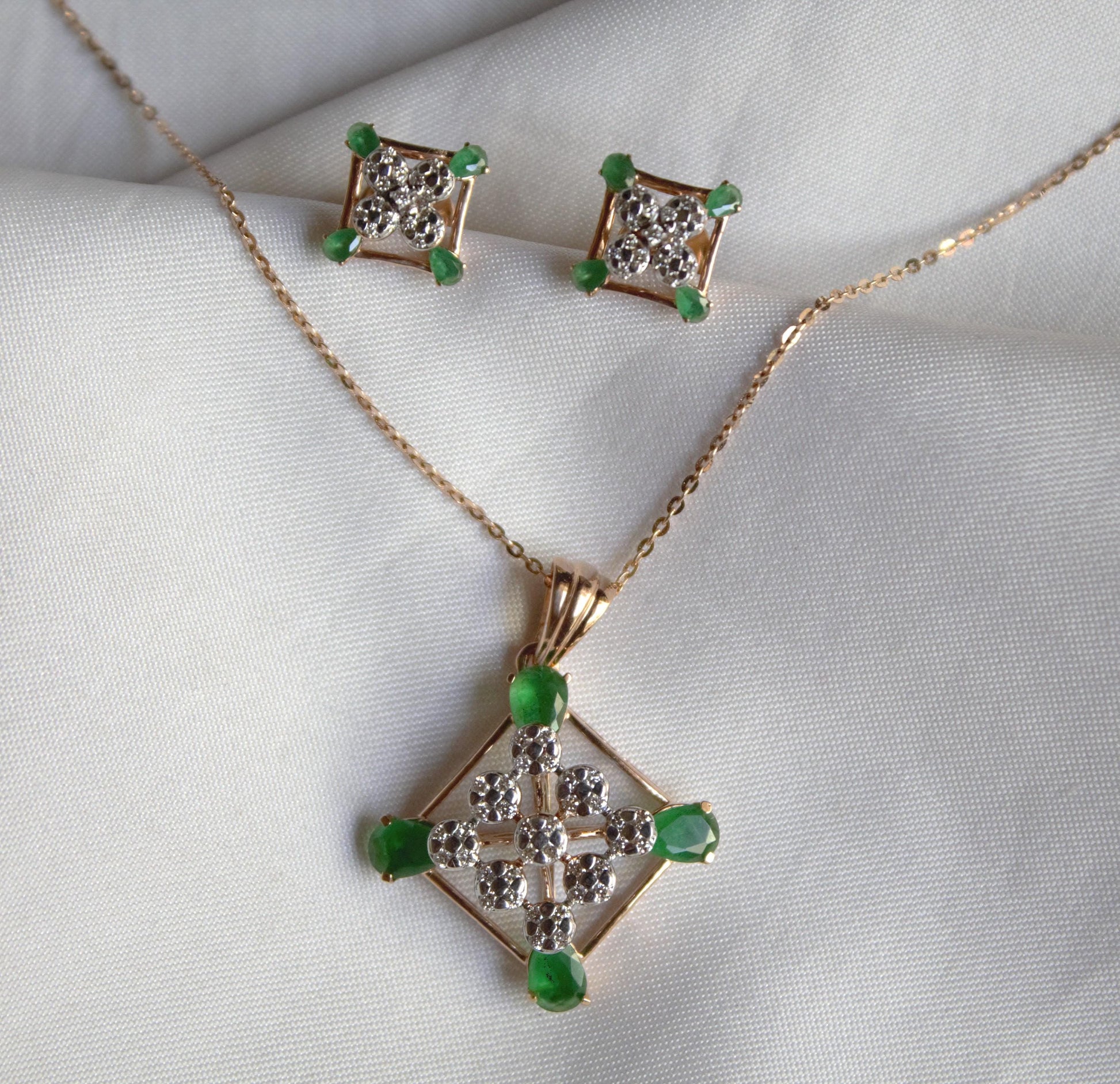 18K Gold Diamond Stud Earrings and Necklace, Charm Handmade Bridal Jewelry Set, Green Emerald Jewelry, Minimalist Wedding Gift for Women