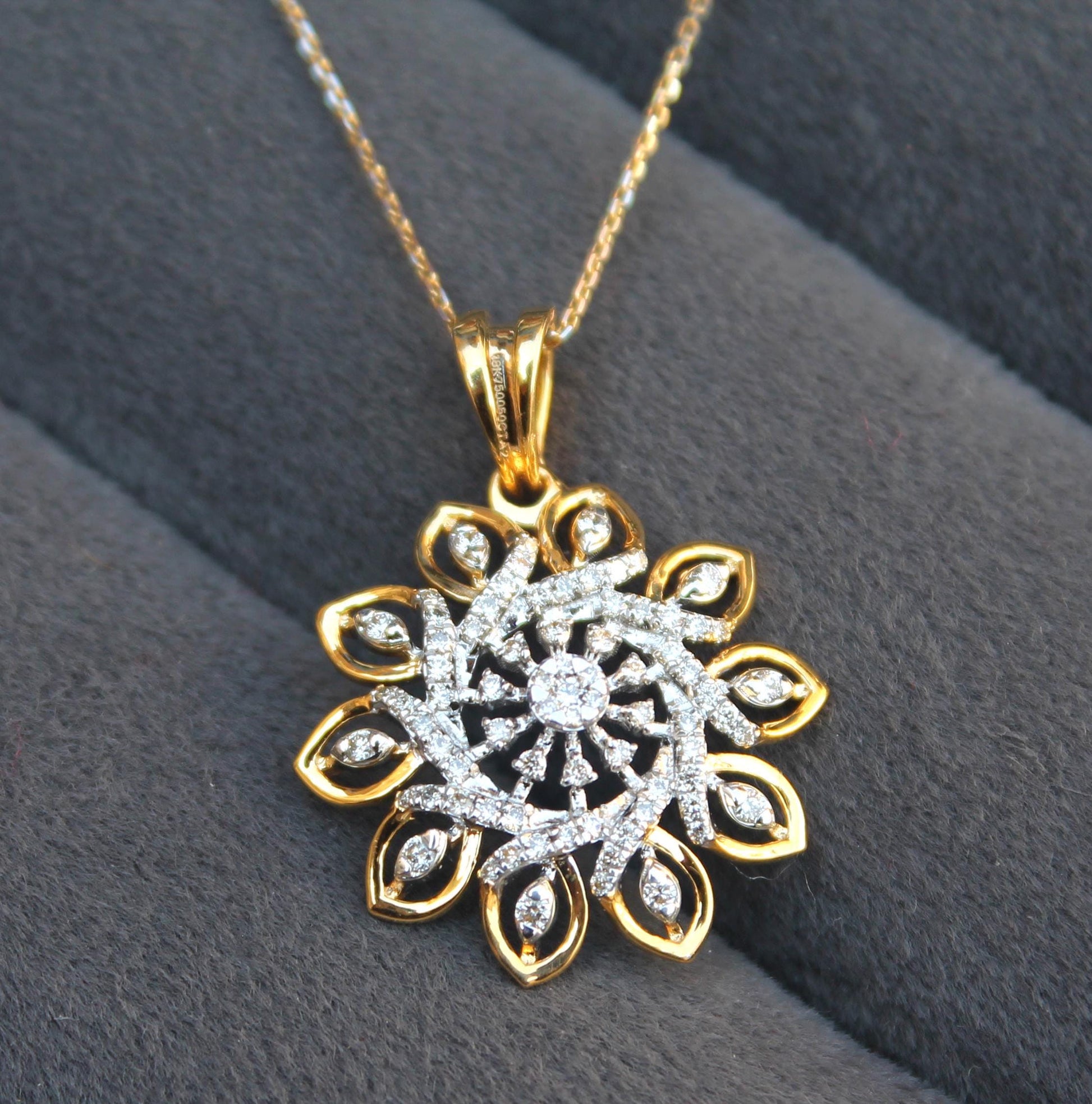 18K Solid Yellow Gold Real Diamond Jewelry Set, IGI Certified Diamond Necklace and Earrings, Floral Design Jewelry for Women, Ready to Ship IGI Certified Real Diamond Gold Jewelry. Product Details- Necklace Details : Gold Purity : 18K Gold Gross Weight : 5.03 grams Net Weight : 4.93 grams Diamond Weight : 0.50 carat Diamond Color : H-I Diamond Clarity : VS - SI IGI Report : 73J507012412 IGI Certificate Report Link : https://www.igi.org/verify-your-report/?r=73J507012412 Earrings Details : Gold Purity : 18K Gold Gross Weight : 3.16 grams Net Weight : 3.118 grams Diamond Weight : 0.21 carat Diamond Color : H-I Diamond Clarity : VS - SI IGI Report : 73J150892412 IGI Certificate Report Link : https://www.igi.org/verify-your-report/?r=73J150892412 About Diamond :- The history of diamonds is a tale that spans millennia and continents. Diamonds were first discovered in India, where they were revered for their extraordinary beauty and symbolism. Ancient Indian texts, dating back to at least the 4th century BC, mention diamonds as "Vajra," a term signifying both thunderbolts and diamonds, highlighting their indestructibility. Natural Diamond, is one of such sparkling gemstones with various benefits. Real Heera symbolizes true undying love. Physically it is considered unbreakable. On the chemical ground, Diamond is said to be the strongest mineral present on the planet Earth. It is a naturally occurring material produced by components of carbon. Clear colorless diamonds are though quite rare and uncommon; diamonds with a tint of yellow and brown colors are most easily found. Real Diamond, popularly renowned as Heera in Hindi, is one of the nine gemstones on the list of Navratna gemstones. It is undeniably the first love of any woman. Customization:- We are able to make changes to this design according to your need or can make any other design you may desire, just send us photo of your favorite product and get it made in your desired materials. Care Instructions:- Wipe your jewelry with a soft cloth after every use Always store your jewelry in a flat box to avoid accidental scratches For more amazing designs visit our shop https://www.etsy.com/shop/Gemethysts