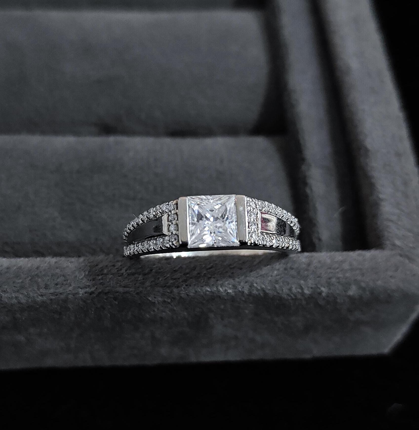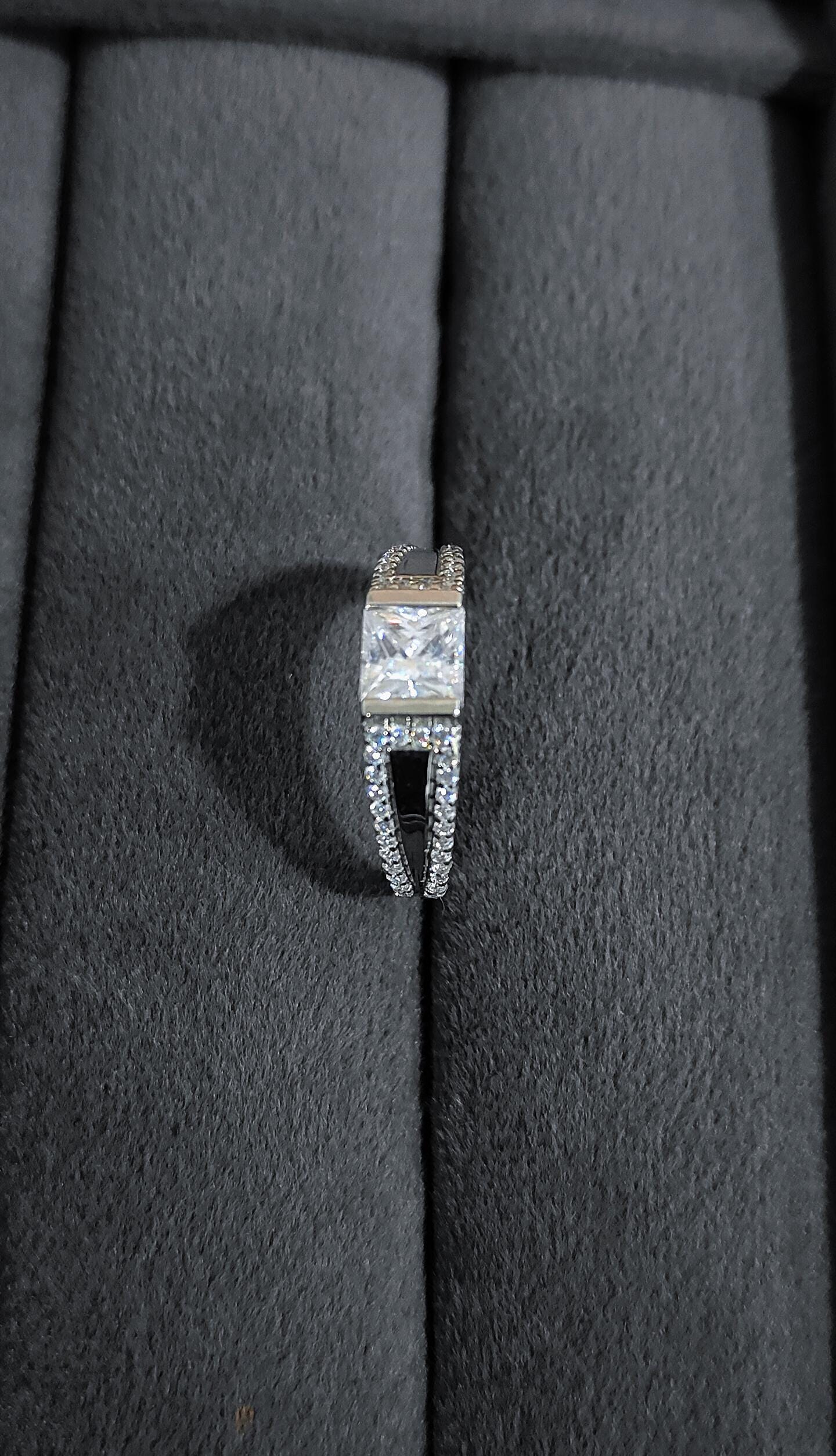 6 mm Moissanite Princess Cut Ring, Engagement Ring For Men, Bezel Setting Ring, Statement 925 Sterling Silver Men's Ring, Christmas Gift Product Details : ⇨ 𝐒𝐭𝐨𝐧𝐞 𝐃𝐞𝐭𝐚𝐢𝐥𝐬 ✥ Material : 925 Sterling Silver ✥ Shape : Princess Cut ✥ Type : Moissanite ✥ Dimension: 6 MM (App.) ✥ Setting : Bezel ✥ Color: Colorless ✥ Clarity: VVS ✥ Making Process : Handmade - Crafted by our experienced team Customization:- We are able to make changes to this design according to your need or can make any other design you may desire, just send us photo of your favourite product and get it made in your desired materials. Care Instructions:- Wipe your jewelry with a soft cloth after every use Always store your jewelry in a flat box to avoid accidental scratches ✥✥✥✥✥✥Benefits Of Wearing Moissanite Gemstone✥✥✥✥✥✥ Moissanite a diamond alternative encourages you to set greater goals and accomplish success and recognition in your industry of choice. Your personality becomes more endearing, likeable, and magnificent. Also Moissanite is diamond tester positive. Moissanite is believed to be a stone of the future and can help those who want to manifest their dreams and desires. It is said to enhance intuition and creativity and can help you tap into your inner power and potential. If you have any questions or need more information, Please feel free to contact us. For more amazing designs visit our shop https://www.etsy.com/shop/Gemethysts