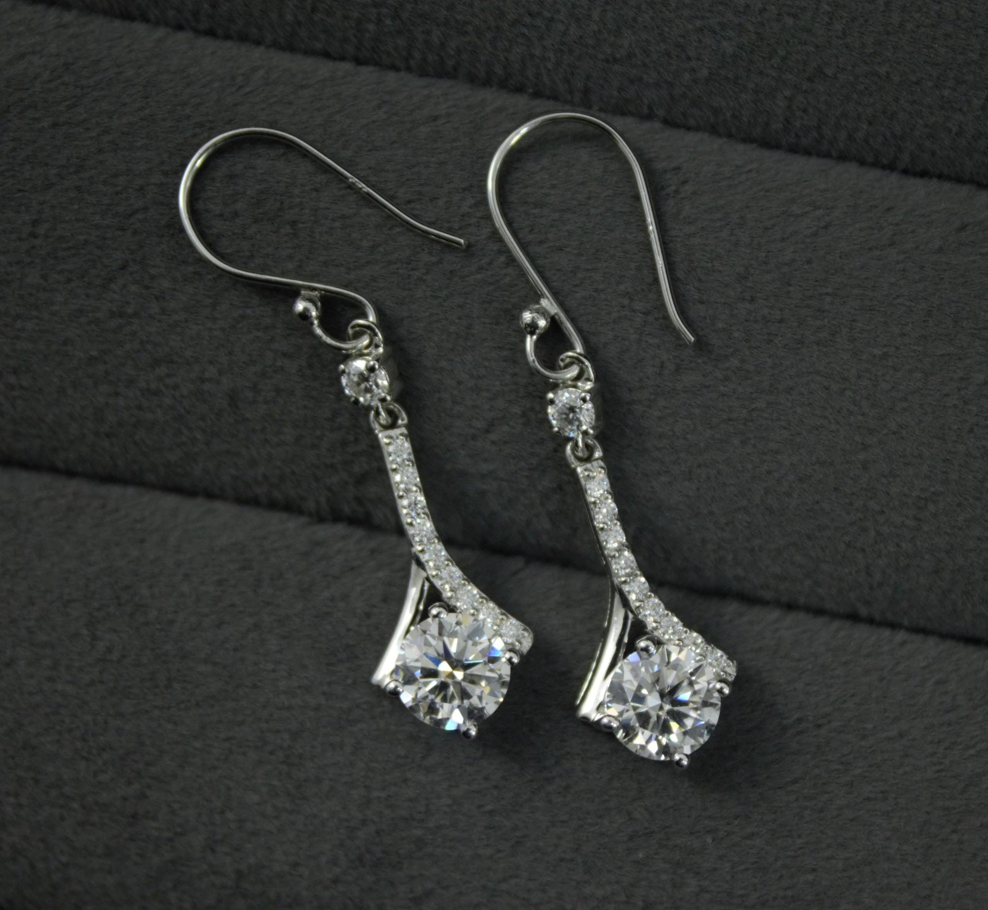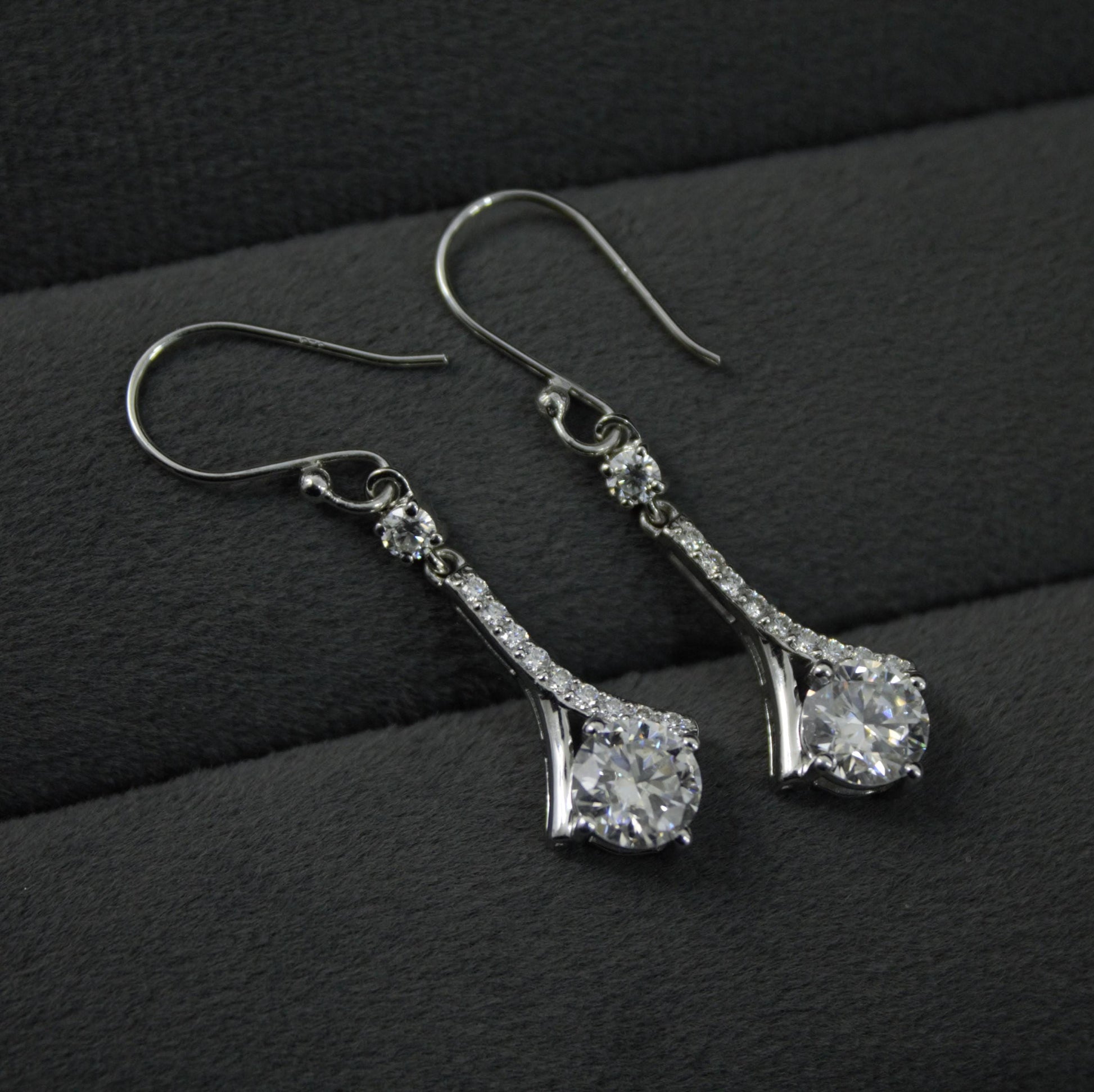 925 Sterling Silver Dangle Earrings, Moissanite Minimalist Earring for Her, White Moissanite Jewelry, Wedding Earrings, Gift for Bridesmaids Product Details : ✥ Material ::- 925 Sterling Silver ✥ Gemstone ::- Moissanite ✥ Gross Weight ::- 3.31 Gm. (Approx) ✥ Net Weight ::- 2.733 Gm. (Approx) ✥ Stone Weight ::- 2.884 Ct. (Approx) ✥ Stone Quantity ::- 22 ✥ Gemstone Shape ::- Round Customization:- We are able to make changes to this design according to your need or can make any other design you may desire, just send us photo of your favourite product and get it made in your desired materials. Care Instructions:- Wipe your jewelry with a soft cloth after every use Always store your jewelry in a flat box to avoid accidental scratches Benefits Of Wearing Moissanite Gemstone :- Moissanite a diamond alternative encourages you to set greater goals and accomplish success and recognition in your industry of choice. Your personality becomes more endearing, likeable, and magnificent. Also Moissanite is diamond tester positive. Moissanite is believed to be a stone of the future and can help those who want to manifest their dreams and desires. It is said to enhance intuition and creativity and can help you tap into your inner power and potential. If you have any questions or need more information, Please feel free to contact us. For more amazing designs visit our shop https://www.etsy.com/shop/Gemethysts