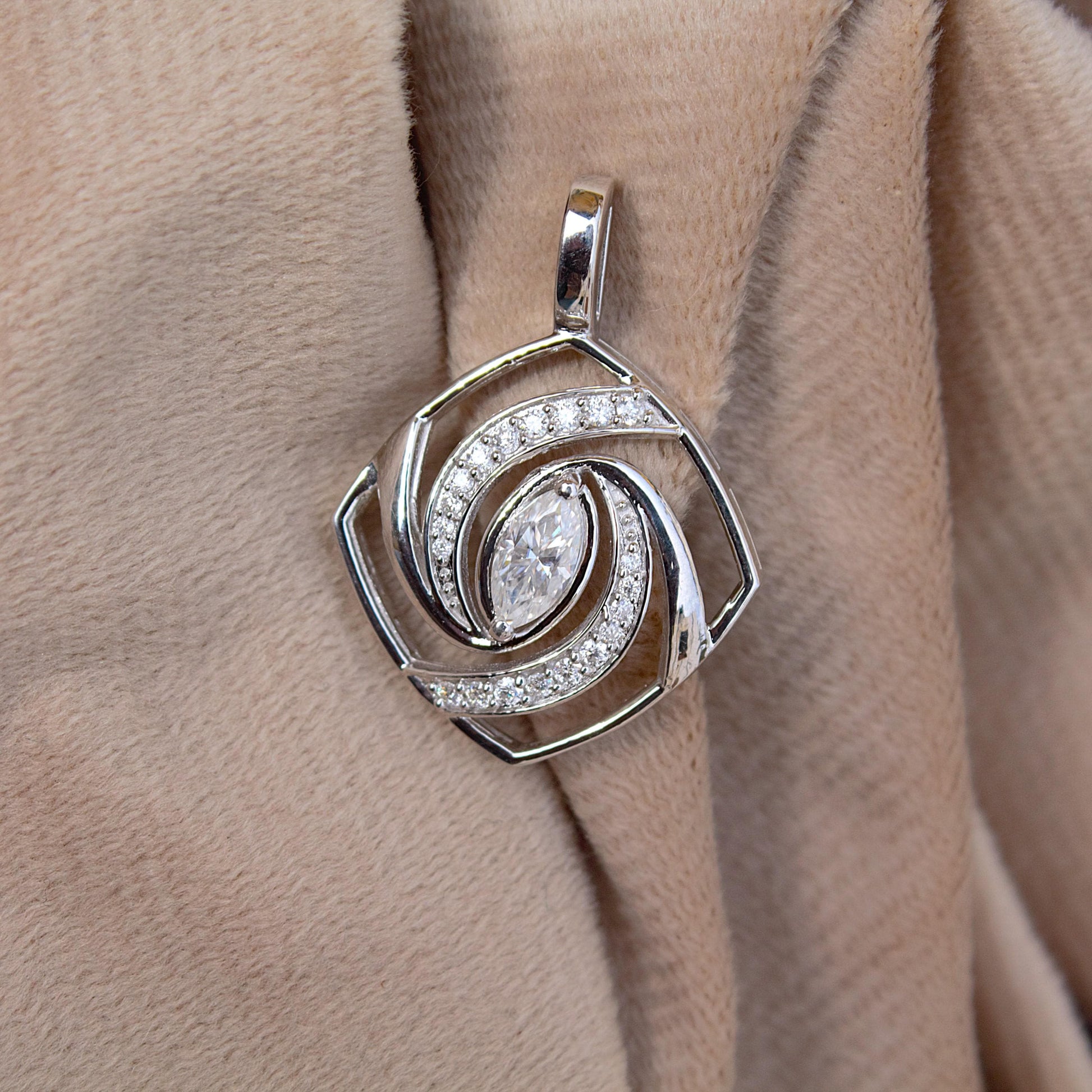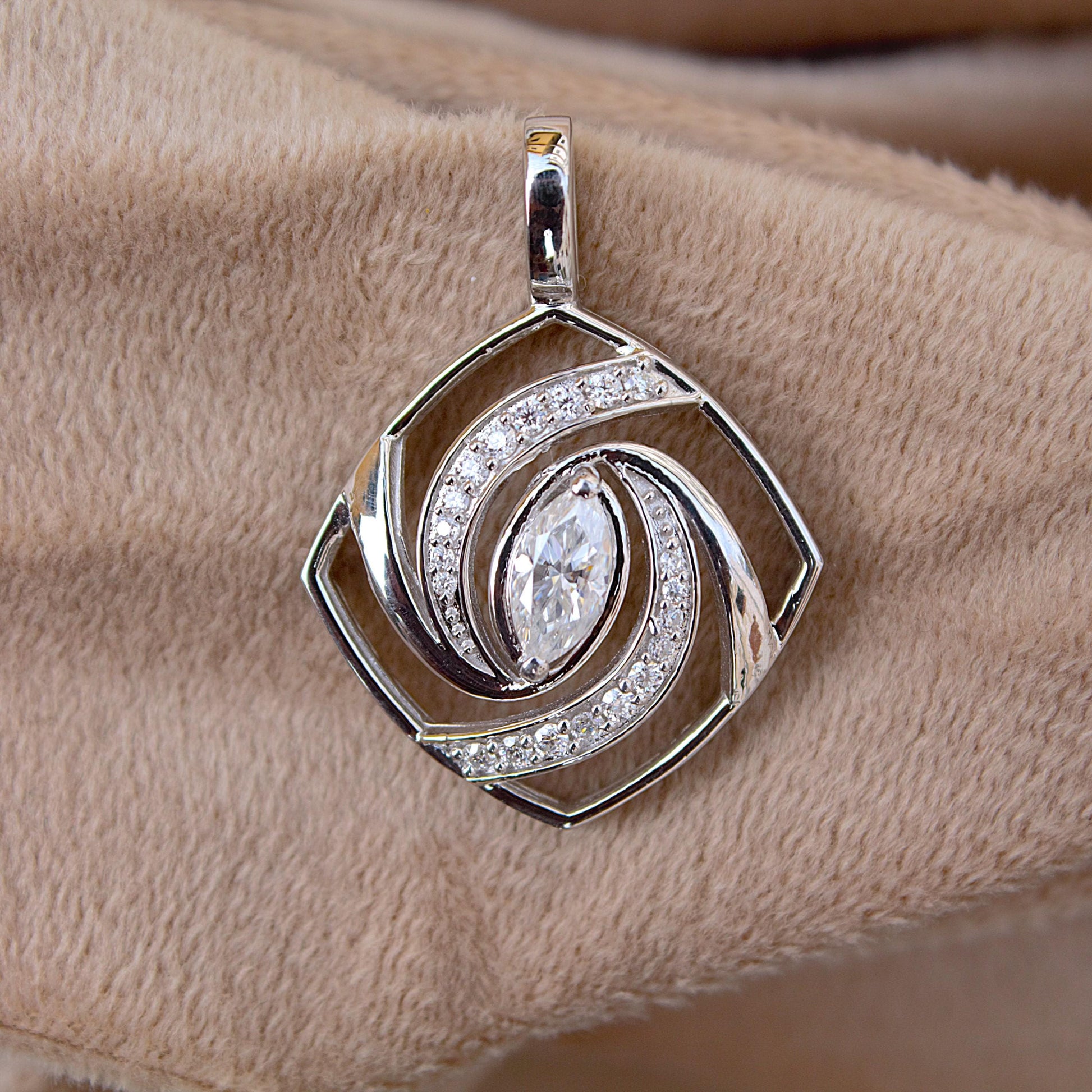 925 Sterling Silver Designer Pendant, Moissanite Pendant for Chain, Elegant Fine Jewelry for Women, Marquise Cut Stone Pendant Gift for Mom Product Details : ✥ Material ::- 925 Sterling Silver ✥ Gemstone ::- Moissanite ✥ Gross Weight ::- 3.349 Gm. (Approx) ✥ Net Weight ::- 3.189 Gm. (Approx) ✥ Stone Weight ::- 0.803 Ct. (Approx) ✥ Stone Quantity ::- 21 ✥ Gemstone Shape ::- Marquise, Round Customization:- We are able to make changes to this design according to your need or can make any other design you may desire, just send us photo of your favorite product and get it made in your desired materials. Care Instructions:- Wipe your jewelry with a soft cloth after every use Always store your jewelry in a flat box to avoid accidental scratches Benefits Of Wearing Moissanite Gemstone :- Moissanite a diamond alternative encourages you to set greater goals and accomplish success and recognition in your industry of choice. Your personality becomes more endearing, likeable, and magnificent. Also Moissanite is diamond tester positive. Moissanite is believed to be a stone of the future and can help those who want to manifest their dreams and desires. It is said to enhance intuition and creativity and can help you tap into your inner power and potential. If you have any questions or need more information, Please feel free to contact us. For more amazing designs visit our shop https://www.etsy.com/shop/Gemethysts