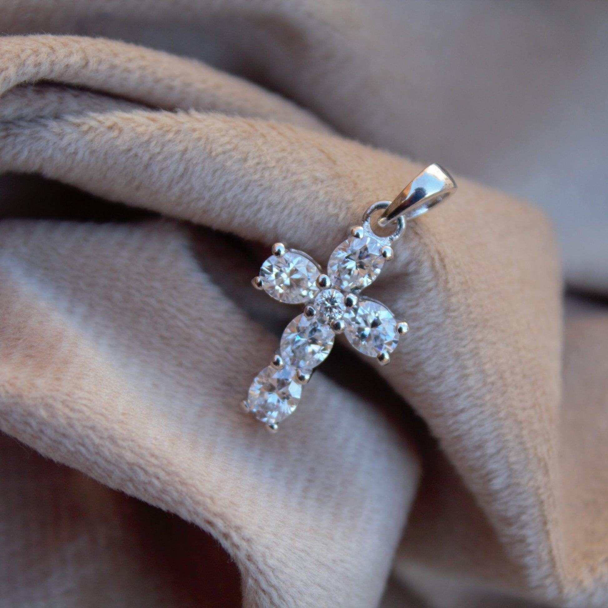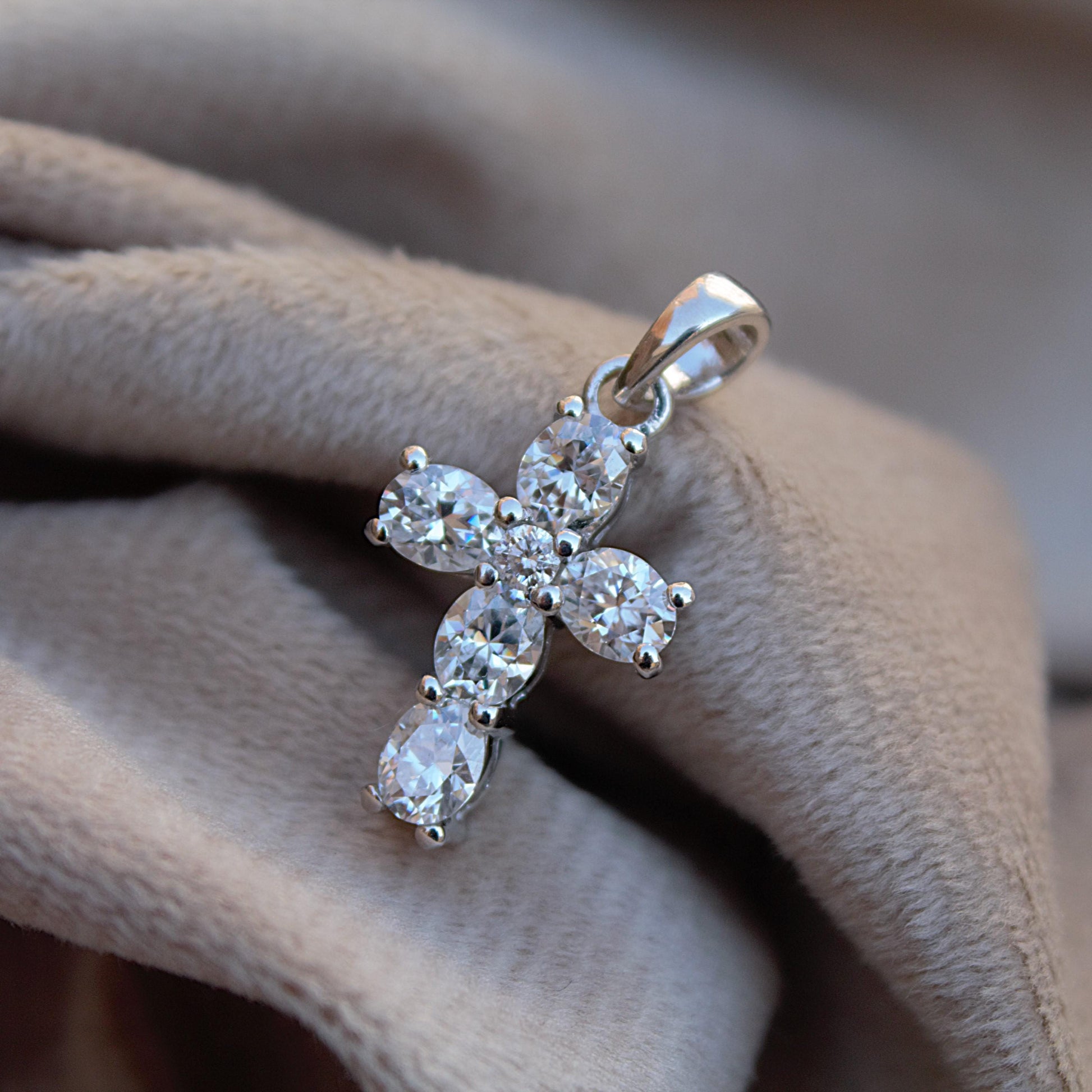 925 Sterling Silver Moissanite Cross Pendant, Oval Cut Stone Pendant, Cross Pendant for Men and Women, Moissanite Silver Jewelry For Gift Product Details : ✥ Material ::- 925 Sterling Silver ✥ Gemstone ::- Moissanite ✥ Gross Weight ::- 2.183 Gm.(approx) ✥ Net Weight ::- 1.784 Gm.(approx) ✥ Stone Weight ::- 1.994 Ct.(approx) ✥ Stone Quantity ::- 6 ✥ Gemstone Shape ::- Oval, Round Customization:- We are able to make changes to this design according to your need or can make any other design you may desire, just send us photo of your favorite product and get it made in your desired materials. Care Instructions:- Wipe your jewelry with a soft cloth after every use Always store your jewelry in a flat box to avoid accidental scratches Benefits Of Wearing Moissanite Gemstone : Moissanite a diamond alternative encourages you to set greater goals and accomplish success and recognition in your industry of choice. Your personality becomes more endearing, likeable, and magnificent. Also Moissanite is diamond tester positive. Moissanite is believed to be a stone of the future and can help those who want to manifest their dreams and desires. It is said to enhance intuition and creativity and can help you tap into your inner power and potential. If you have any questions or need more information, Please feel free to contact us. For more amazing designs visit our shop https://www.etsy.com/shop/Gemethysts