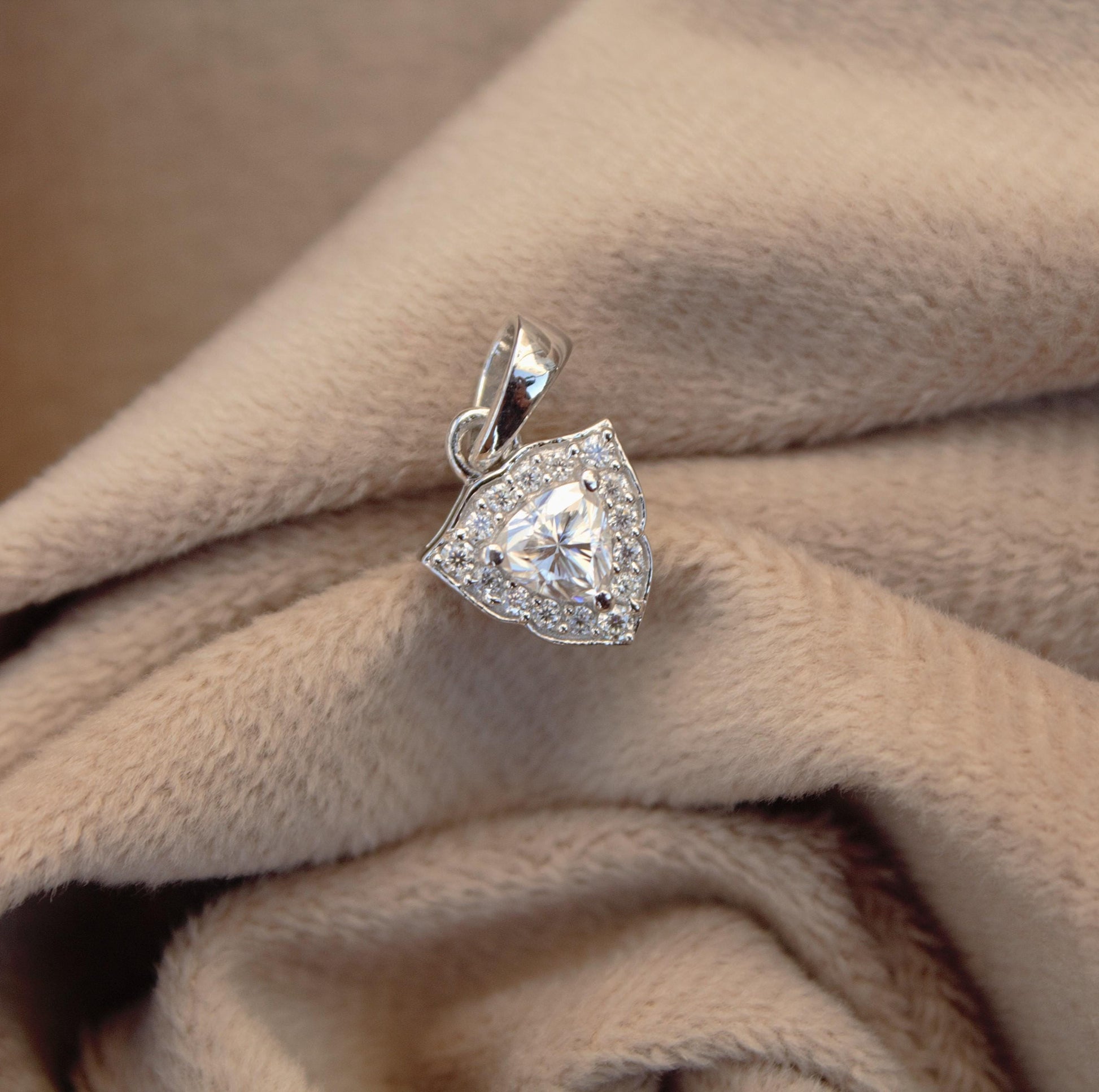 925 Sterling Silver Moissanite Trillion Cut Pendant, Silver Tiny Charm Pendant for Chain, Minimalist Pendant, Stunning Jewelry Gift for Her Product Details : ✥ Material ::- 925 Sterling Silver ✥ Gemstone ::- Moissanite ✥ Gross Weight ::- 1.304 Gm. (approx) ✥ Net Weight ::- 1.55 Gm. (approx) ✥ Stone Weight ::- 0.74 Ct. (approx) ✥ Stone Quantity ::- 17 ✥ Gemstone Shape ::- Trillion & Round Customization:- We are able to make changes to this design according to your need or can make any other design you may desire, just send us photo of your favourite product and get it made in your desired materials. Care Instructions:- Wipe your jewelry with a soft cloth after every use Always store your jewelry in a flat box to avoid accidental scratches Benefits Of Wearing Moissanite Gemstone : Moissanite a diamond alternative encourages you to set greater goals and accomplish success and recognition in your industry of choice. Your personality becomes more endearing, likeable, and magnificent. Also Moissanite is diamond tester positive. Moissanite is believed to be a stone of the future and can help those who want to manifest their dreams and desires. It is said to enhance intuition and creativity and can help you tap into your inner power and potential. If you have any questions or need more information, Please feel free to contact us. For more amazing designs visit our shop https://www.etsy.com/shop/Gemethysts