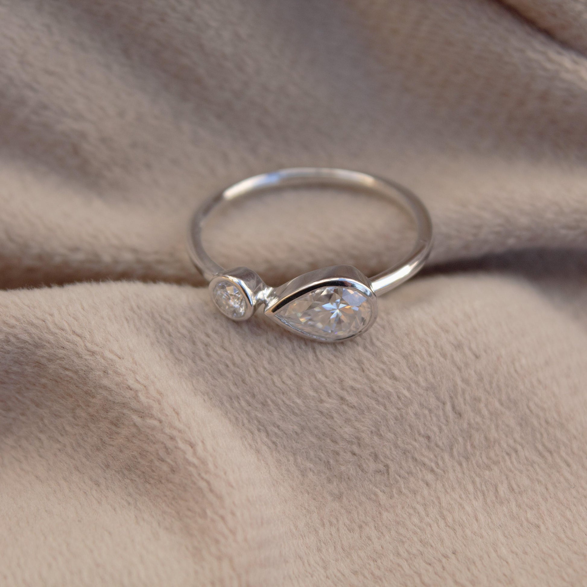 925Sterling Silver Moissanite Anniversary Ring, Pear and Round Cut Stone Ring, Minimalist Stackable Ring, Perfect Moissanite Jewelry for Her Product Details : ✥ Material ::- 925 Sterling Silver ✥ Gemstone ::- Moissanite ✥ Gross Weight ::- 1.34 Gm. (approx) ✥ Net Weight ::- 1.17 Gm. (approx) ✥ Stone Weight ::- 0.865 Ct. (approx) ✥ Stone Quantity ::- 2 Ring Size : 6 ✥ Gemstone Shape ::- Round, Pear Customization:- We are able to make changes to this design according to your need or can make any other design you may desire, just send us photo of your favorite product and get it made in your desired materials. Care Instructions:- Wipe your jewelry with a soft cloth after every use Always store your jewelry in a flat box to avoid accidental scratches Benefits Of Wearing Moissanite Gemstone : Moissanite a diamond alternative encourages you to set greater goals and accomplish success and recognition in your industry of choice. Your personality becomes more endearing, likeable, and magnificent. Also Moissanite is diamond tester positive. Moissanite is believed to be a stone of the future and can help those who want to manifest their dreams and desires. It is said to enhance intuition and creativity and can help you tap into your inner power and potential. If you have any questions or need more information, Please feel free to contact us. For more amazing designs visit our shop https://www.etsy.com/shop/Gemethysts