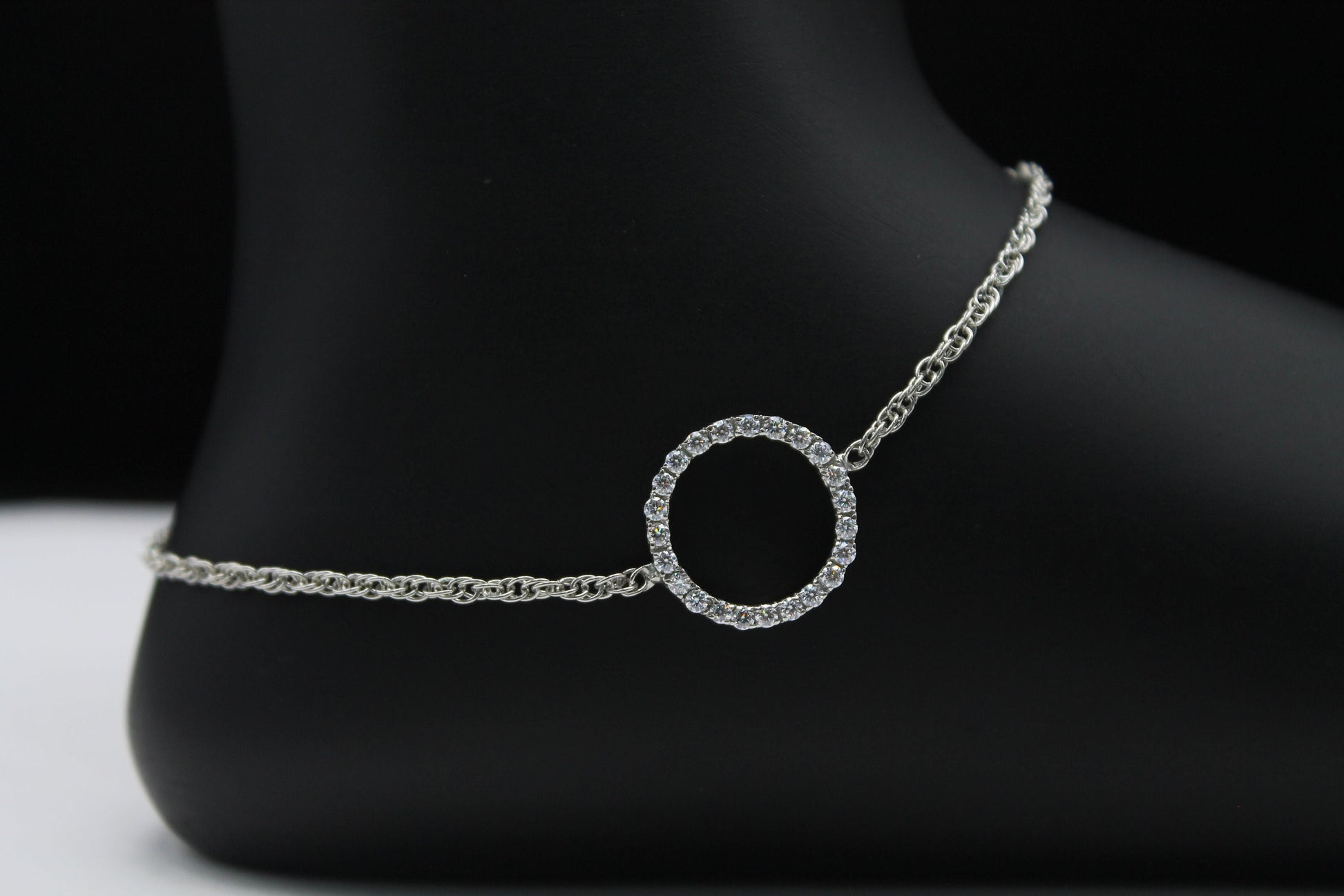 Adjustable Chain Anklet, Moissanite Circle Anklet, Dainty Foot Jewelry, Minimalist Anklet, Statement 925Silver Jewelry, Perfect Gift for Her