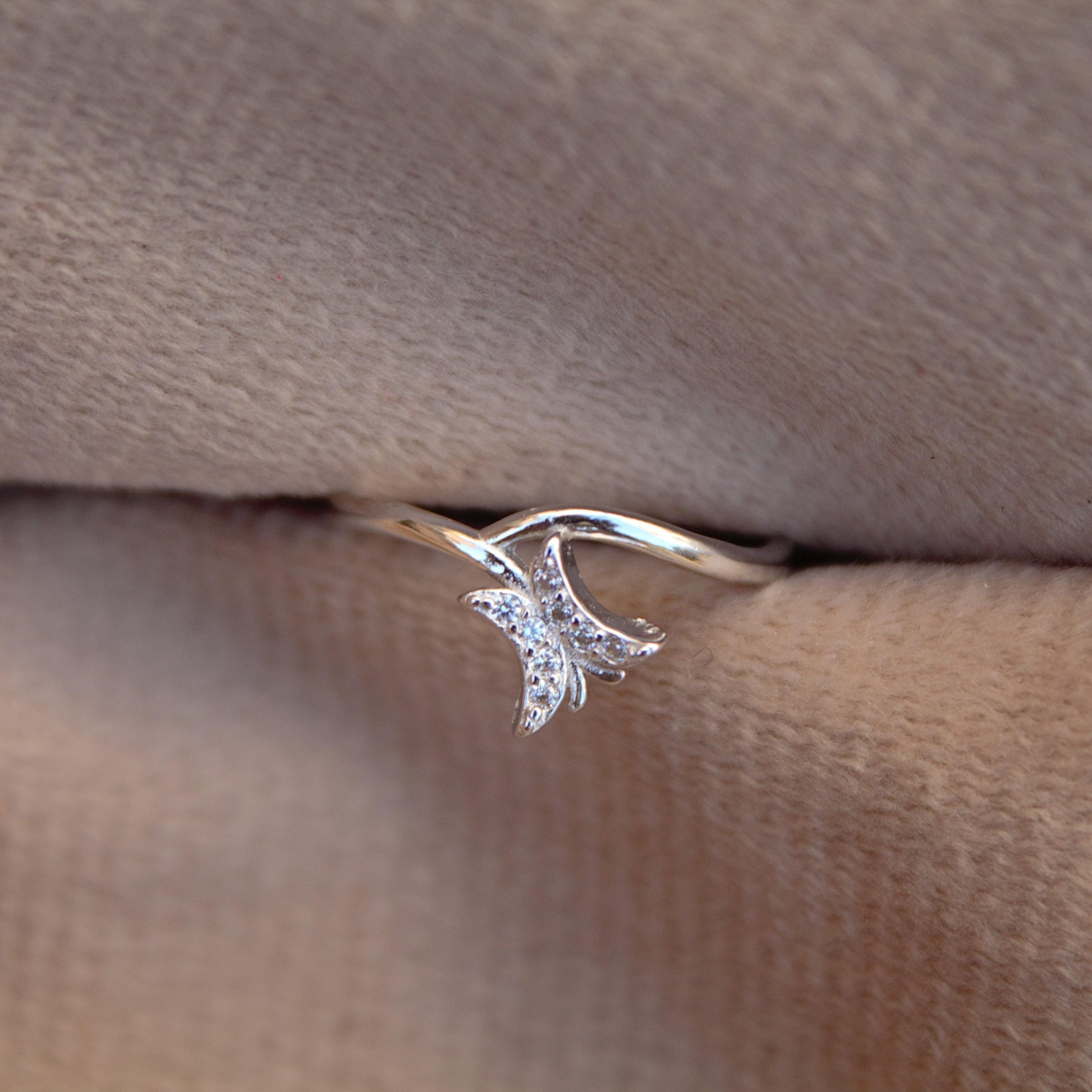 Butterfly Design CZ Ring, Small & Dainty Silver Ring, 925 Sterling Silver Cubic Zircon Ring, Minimalist Butterfly Jewelry, Silver Thin Ring Product Details : ✥ Material ::- 925 Sterling Silver ✥ Stone ::- Cubic Zirconia ✥ Weight ::- Gm. (approx) ✥ Ring Size ::- 4.5, 5, 5.5, 6.5 US ✥ Stone Shape ::- Round Customization:- We are able to make changes to this design according to your need or can make any other design you may desire, just send us photo of your favourite product and get it made in your desired materials. Care Instructions:- Wipe your jewelry with a soft cloth after every use Always store your jewelry in a flat box to avoid accidental scratches If you have any questions or need more information, Please feel free to contact us. For more amazing designs visit our shop https://www.etsy.com/shop/Gemethysts
