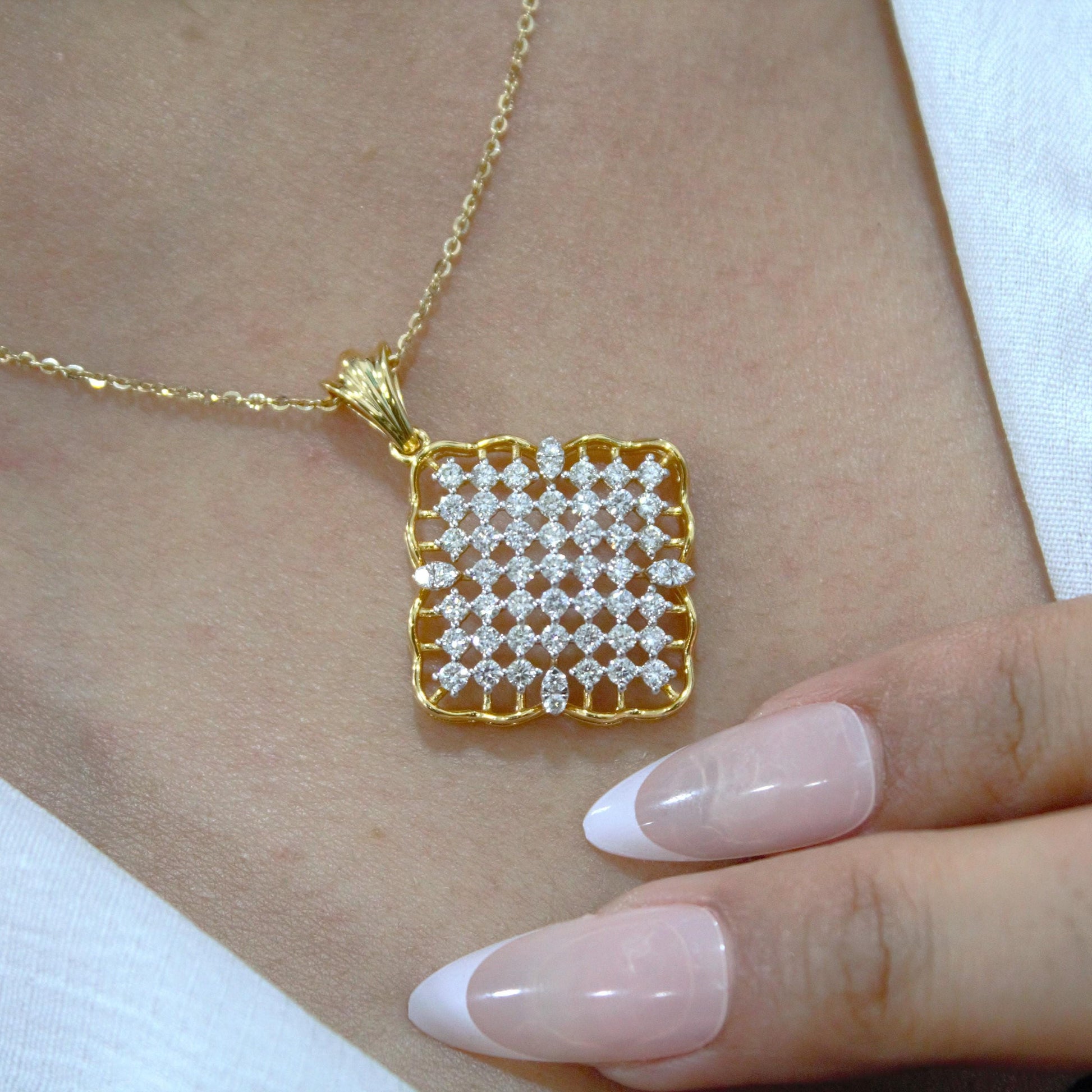 Cluster Diamond Gold Jewelry Set, 18K Yellow Gold Pendant with Earrings Set, Statement Real Diamond Jewelry, Wedding Gift for Bridesmaids IGI Certified Real Diamond Gold Jewelry. Product Details- Necklace Details : Gold Purity : 18K Gold Gross Weight : 6.29 grams Net Weight : 6.048 grams Diamond Weight : 1.21 carat Diamond Color : H - I Diamond Clarity : VS - SI IGI Report : 73J152182412 IGI Certificate Report Link : https://www.igi.org/verify-your-report/?r=73J152182412 Earrings Details : Gold Purity : 18K Gold Gross Weight : 5.45 grams Net Weight : 5.252 grams Diamond Weight : 0.99 carat Diamond Color : G - H Diamond Clarity : VS - SI IGI Report : 73J152192412 IGI Certificate Report Link : https://www.igi.org/verify-your-report/?r=73J152192412 About Diamond :- The history of diamonds is a tale that spans millennia and continents. Diamonds were first discovered in India, where they were revered for their extraordinary beauty and symbolism. Ancient Indian texts, dating back to at least the 4th century BC, mention diamonds as "Vajra," a term signifying both thunderbolts and diamonds, highlighting their indestructibility. Natural Diamond, is one of such sparkling gemstones with various benefits. Real Heera symbolizes true undying love. Physically it is considered unbreakable. On the chemical ground, Diamond is said to be the strongest mineral present on the planet Earth. It is a naturally occurring material produced by components of carbon. Clear colorless diamonds are though quite rare and uncommon; diamonds with a tint of yellow and brown colors are most easily found. Real Diamond, popularly renowned as Heera in Hindi, is one of the nine gemstones on the list of Navratna gemstones. It is undeniably the first love of any woman. Customization:- We are able to make changes to this design according to your need or can make any other design you may desire, just send us photo of your favorite product and get it made in your desired materials. Care Instructions:- Wipe your jewelry with a soft cloth after every use Always store your jewelry in a flat box to avoid accidental scratches For more amazing designs visit our shop https://www.etsy.com/shop/Gemethysts