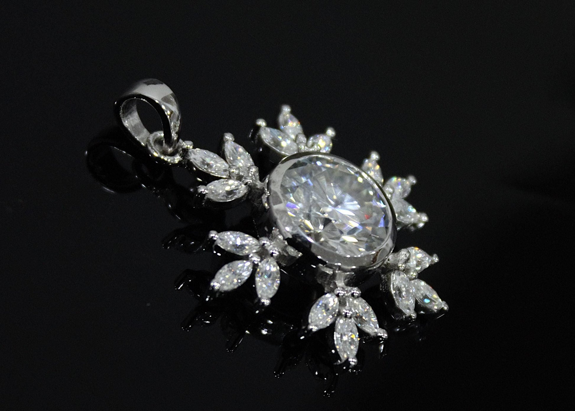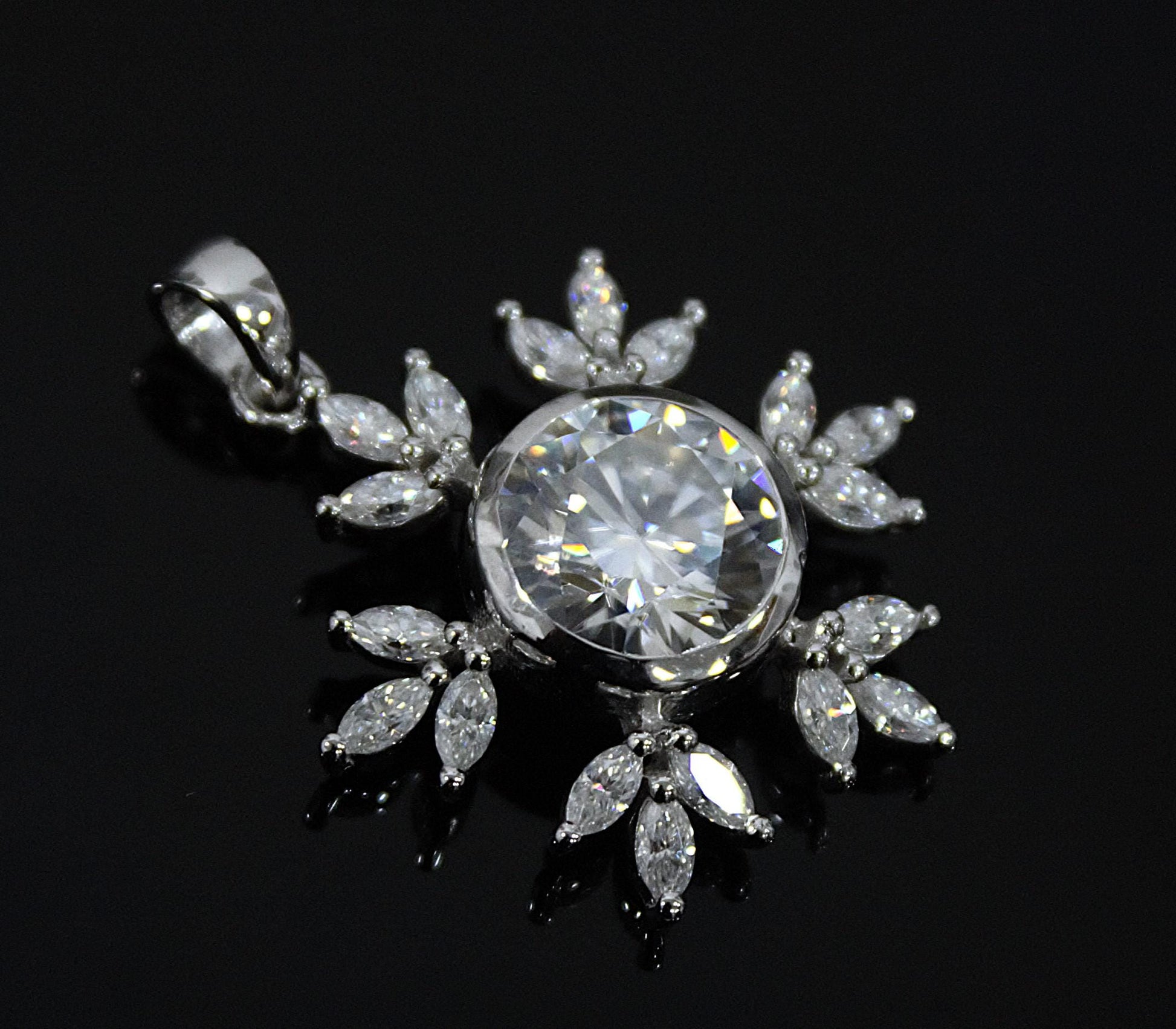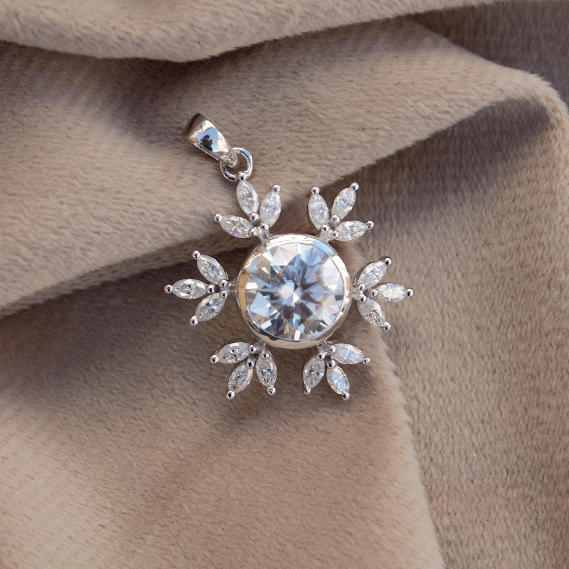 Colorless Moissanite 925 Sterling Silver Pendant for Chain, Floral Design Pendant, Marquise and Round Cut Stone Pendant, Birthday Gift Product Details : ✥ Material ::- 925 Sterling Silver ✥ Gemstone ::- Moissanite ✥ Gross Weight ::- 4.589 Gm. (approx) ✥ Net Weight ::- 3.628 Gm. (approx) ✥ Stone Weight ::- 4.805 Ct. (approx) ✥ Stone Quantity ::- 19 ✥ Gemstone Shape ::- Marquise, Round Customization:- We are able to make changes to this design according to your need or can make any other design you may desire, just send us photo of your favourite product and get it made in your desired materials. Care Instructions:- Wipe your jewelry with a soft cloth after every use Always store your jewelry in a flat box to avoid accidental scratches ✥✥✥✥✥✥Benefits Of Wearing Moissanite Gemstone✥✥✥✥✥✥ Moissanite a diamond alternative encourages you to set greater goals and accomplish success and recognition in your industry of choice. Your personality becomes more endearing, likeable, and magnificent. Also Moissanite is diamond tester positive. Moissanite is believed to be a stone of the future and can help those who want to manifest their dreams and desires. It is said to enhance intuition and creativity and can help you tap into your inner power and potential. If you have any questions or need more information, Please feel free to contact us. For more amazing designs visit our shop https://www.etsy.com/shop/Gemethysts