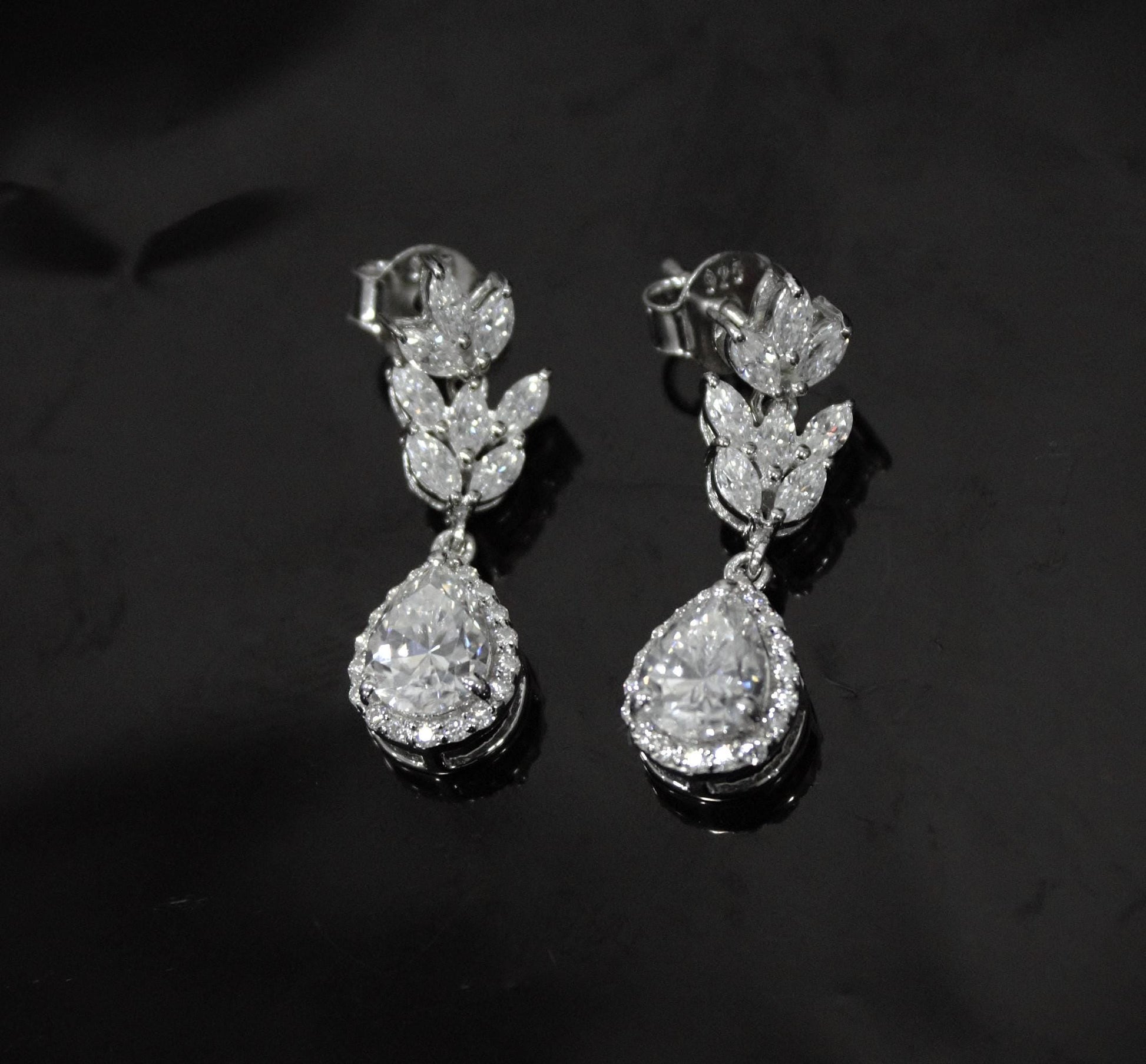 Colorless Moissanite Drop Earrings, 925 Sterling Silver Push Back Earrings, Earrings for Bride, Silver Wedding Jewelry, Perfect for Her Product Details : ✥ Material ::- 925 Sterling Silver ✥ Gemstone ::- Moissanite ✥ Gross Weight ::- 4.162 Gm. (approx) ✥ Net Weight ::- 3.346 Gm. (approx) ✥ Stone Weight ::- 3.63 Ct. (approx) ✥ Stone Quantity ::- 56 ✥ Gemstone Shape ::- Round, Marquise, Pear Customization:- We are able to make changes to this design according to your need or can make any other design you may desire, just send us photo of your favourite product and get it made in your desired materials. Care Instructions:- Wipe your jewelry with a soft cloth after every use Always store your jewelry in a flat box to avoid accidental scratches ✥✥✥✥✥✥Benefits Of Wearing Moissanite Gemstone✥✥✥✥✥✥ Moissanite a diamond alternative encourages you to set greater goals and accomplish success and recognition in your industry of choice. Your personality becomes more endearing, likeable, and magnificent. Also Moissanite is diamond tester positive. Moissanite is believed to be a stone of the future and can help those who want to manifest their dreams and desires. It is said to enhance intuition and creativity and can help you tap into your inner power and potential. If you have any questions or need more information, Please feel free to contact us. For more amazing designs visit our shop https://www.etsy.com/shop/Gemethysts