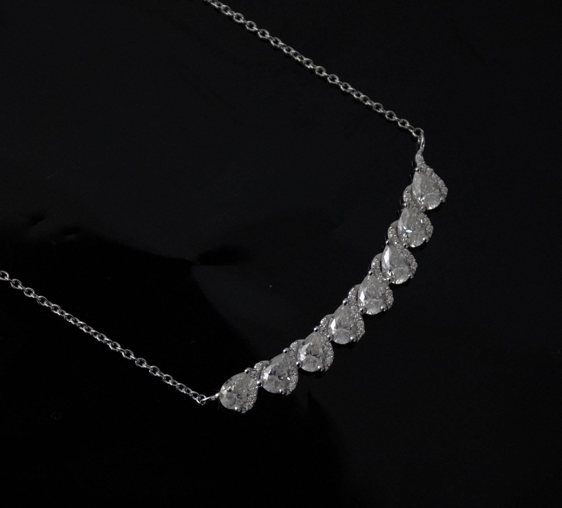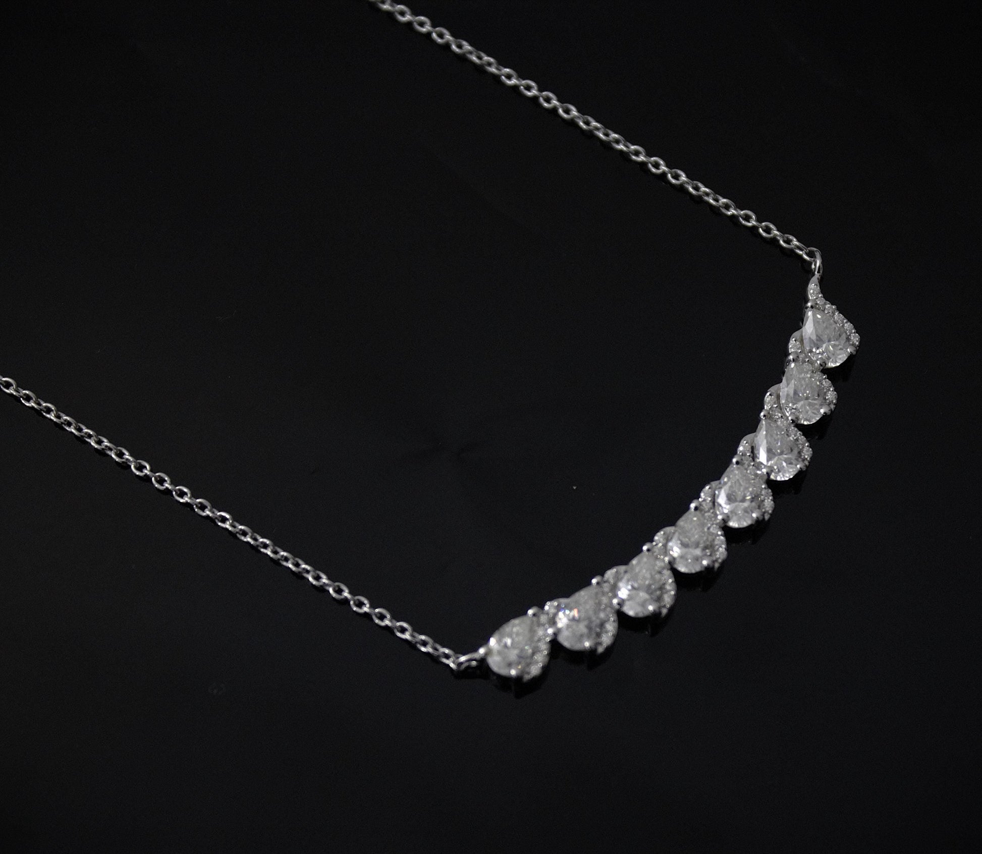 Colorless Moissanite Pear Necklace, 925 Sterling Silver Chain Necklace, Lightweight Travel Jewelry, Minimalist Silver White Stone Necklace Product Details : ✥ Material ::- 925 Sterling Silver ✥ Gemstone ::- Moissanite ✥ Gross Weight ::- 6.14 Gm. (approx) ✥ Net Weight ::- 5.48 Gm. (approx). ✥ Stone Weight ::- 3.3 Ct. (approx) ✥ Stone Quantity ::- 56 ✥ Necklace Length (With Extension) ::- 18 inch ✥ Necklace Length (Without Extension) ::- 16 inch ✥ Gemstone Shape ::- Pear, Round Customization:- We are able to make changes to this design according to your need or can make any other design you may desire, just send us photo of your favourite product and get it made in your desired materials. Care Instructions:- Wipe your jewelry with a soft cloth after every use Always store your jewelry in a flat box to avoid accidental scratches ✥✥✥✥✥✥Benefits Of Wearing Moissanite Gemstone✥✥✥✥✥✥ Moissanite a diamond alternative encourages you to set greater goals and accomplish success and recognition in your industry of choice. Your personality becomes more endearing, likeable, and magnificent. Also Moissanite is diamond tester positive. Moissanite is believed to be a stone of the future and can help those who want to manifest their dreams and desires. It is said to enhance intuition and creativity and can help you tap into your inner power and potential. If you have any questions or need more information, Please feel free to contact us. For more amazing designs visit our shop https://www.etsy.com/shop/Gemethysts