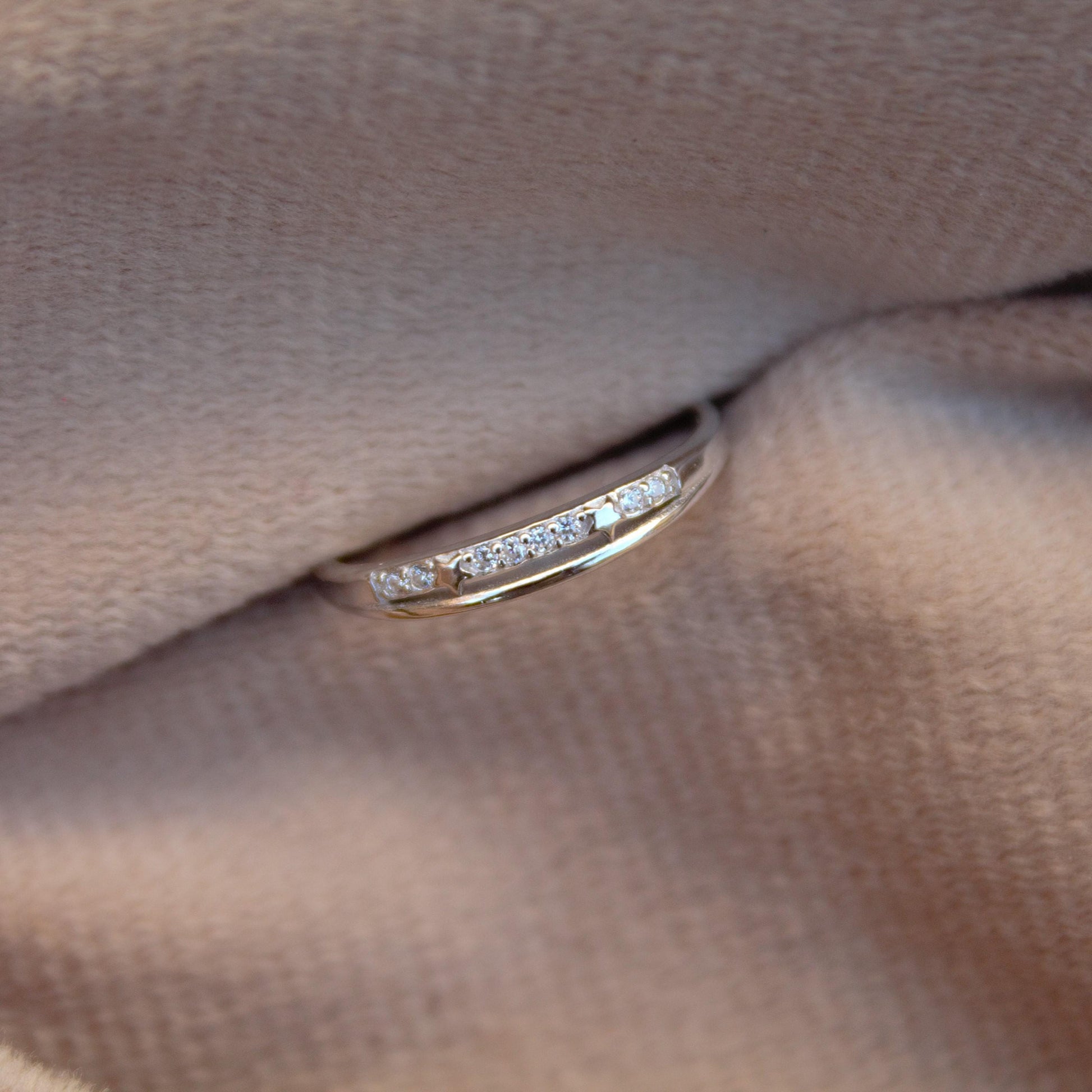 Cubic Zirconia Thin Band, 925 Sterling Silver Stacking Thumb Ring, Promise Ring Band, Star Design Ring, Round Cut Stones Ring Band for Her