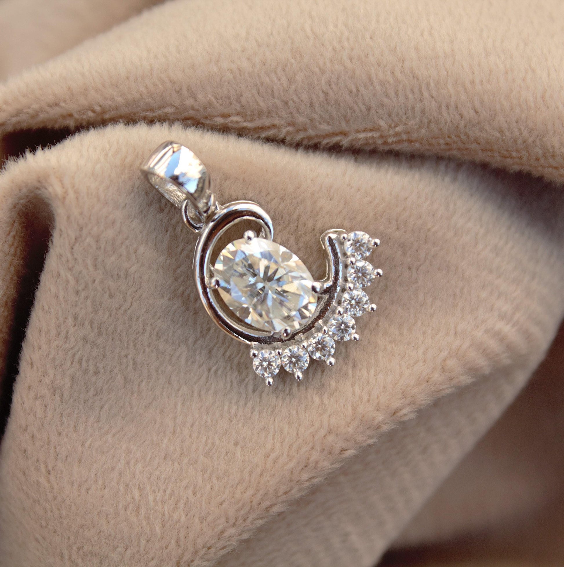 D Color VVS1 Clarity Moissanite Pendant in 925 Sterling Silver, Oval and Round Cut Pendant, Prong Set Pendant, Silver Charm Jewelry for Her