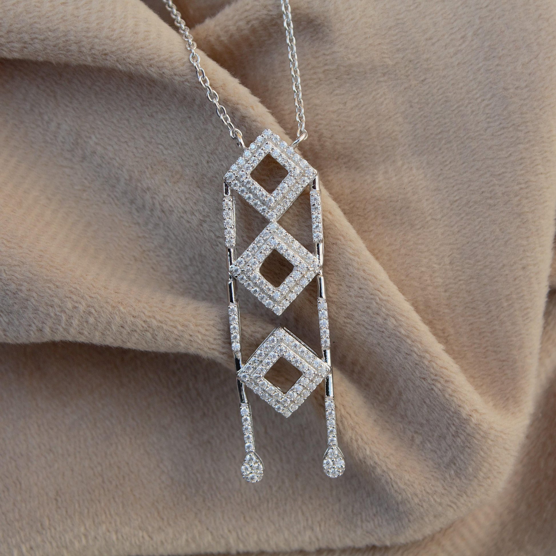 Designer Moissanite Pendant With Chain, 925 Sterling Silver Moissanite Chain Necklace, Elegant Beautiful Anniversary Gift For Special One