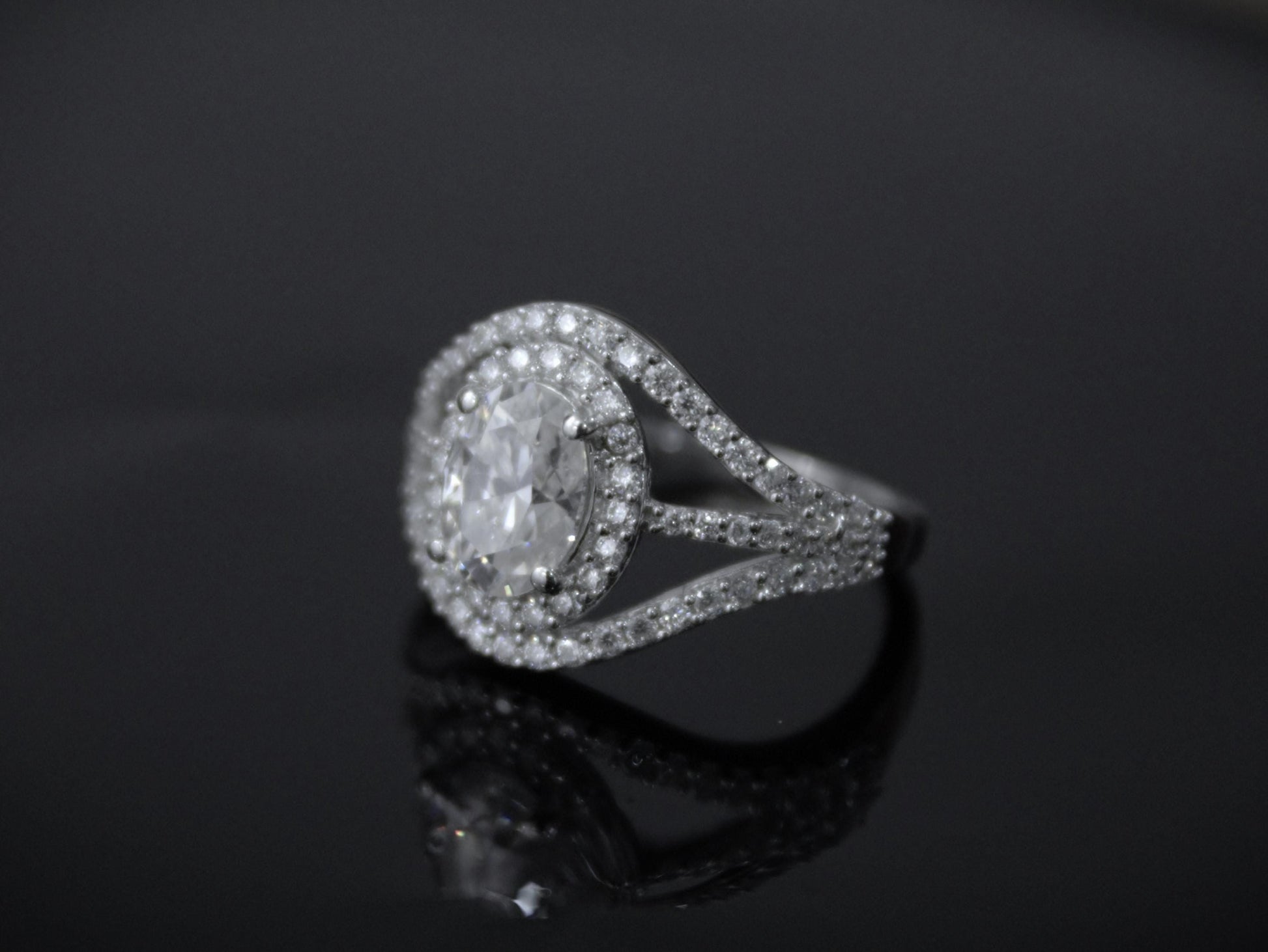 Designer Moissanite Silver Ring, 925 Sterling Silver Statement Ring for Women, Oval Cut Stone Ring, Engagement Ring for Women, Wedding Gift Product Details : ✥ Material ::- 925 Sterling Silver ✥ Gemstone ::- Moissanite ✥ Gross Weight ::- 2.96 Gm. (Approx) ✥ Net Weight ::- 2.563 Gm. (Approx) ✥ Stone Weight ::- 1.981 Ct. (Approx) ✥ Stone Quantity ::- 83 ✥ Gemstone Shape ::- Oval, Round ✥ Ring Size ::- 6 US Customization:- We are able to make changes to this design according to your need or can make any other design you may desire, just send us photo of your favourite product and get it made in your desired materials. Care Instructions:- Wipe your jewelry with a soft cloth after every use Always store your jewelry in a flat box to avoid accidental scratches Benefits Of Wearing Moissanite Gemstone :- Moissanite a diamond alternative encourages you to set greater goals and accomplish success and recognition in your industry of choice. Your personality becomes more endearing, likeable, and magnificent. Also Moissanite is diamond tester positive. Moissanite is believed to be a stone of the future and can help those who want to manifest their dreams and desires. It is said to enhance intuition and creativity and can help you tap into your inner power and potential. If you have any questions or need more information, Please feel free to contact us. For more amazing designs visit our shop https://www.etsy.com/shop/Gemethysts