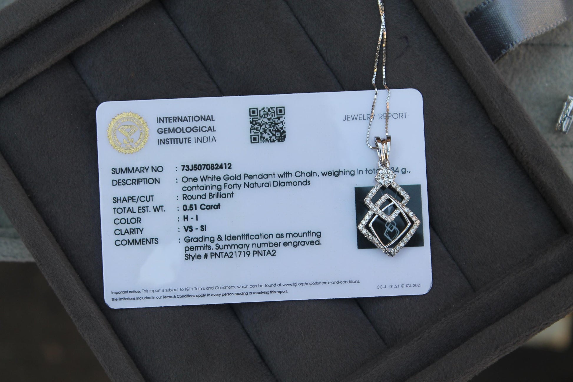 Diamond Gold Necklace with Earrings, 18K Gold Jewelry Set, Designer Gold Jewelry, Real Diamond Pendant with Chain and Stud Earrings Set IGI Certified Real Diamond Gold Jewelry. Product Details- Necklace Details : Gold Purity : 18K Gold Gross Weight : 4.34 grams Net Weight : 4.238 grams Diamond Weight : 0.51 carat Diamond Color : H-I Diamond Clarity : VS-SI IGI Report : 73J507082412 IGI Certificate Report Link : https://www.igi.org/verify-your-report/?r=73J507082412 Earrings Details : Gold Purity : 18K Gold Gross Weight : 3.11 grams Net Weight : 3.008 grams Diamond Weight : 0.510 carat Diamond Color : H-I-J Diamond Clarity : SI IGI Report : 73J150982412 IGI Certificate Report Link : https://www.igi.org/verify-your-report/?r=73J150982412 About Diamond :- The history of diamonds is a tale that spans millennia and continents. Diamonds were first discovered in India, where they were revered for their extraordinary beauty and symbolism. Ancient Indian texts, dating back to at least the 4th century BC, mention diamonds as "Vajra," a term signifying both thunderbolts and diamonds, highlighting their indestructibility. Natural Diamond, is one of such sparkling gemstones with various benefits. Real Heera symbolizes true undying love. Physically it is considered unbreakable. On the chemical ground, Diamond is said to be the strongest mineral present on the planet Earth. It is a naturally occurring material produced by components of carbon. Clear colorless diamonds are though quite rare and uncommon; diamonds with a tint of yellow and brown colors are most easily found. Real Diamond, popularly renowned as Heera in Hindi, is one of the nine gemstones on the list of Navratna gemstones. It is undeniably the first love of any woman. Customization:- We are able to make changes to this design according to your need or can make any other design you may desire, just send us photo of your favorite product and get it made in your desired materials. Care Instructions:- Wipe your jewelry with a soft cloth after every use Always store your jewelry in a flat box to avoid accidental scratches For more amazing designs visit our shop https://www.etsy.com/shop/Gemethysts