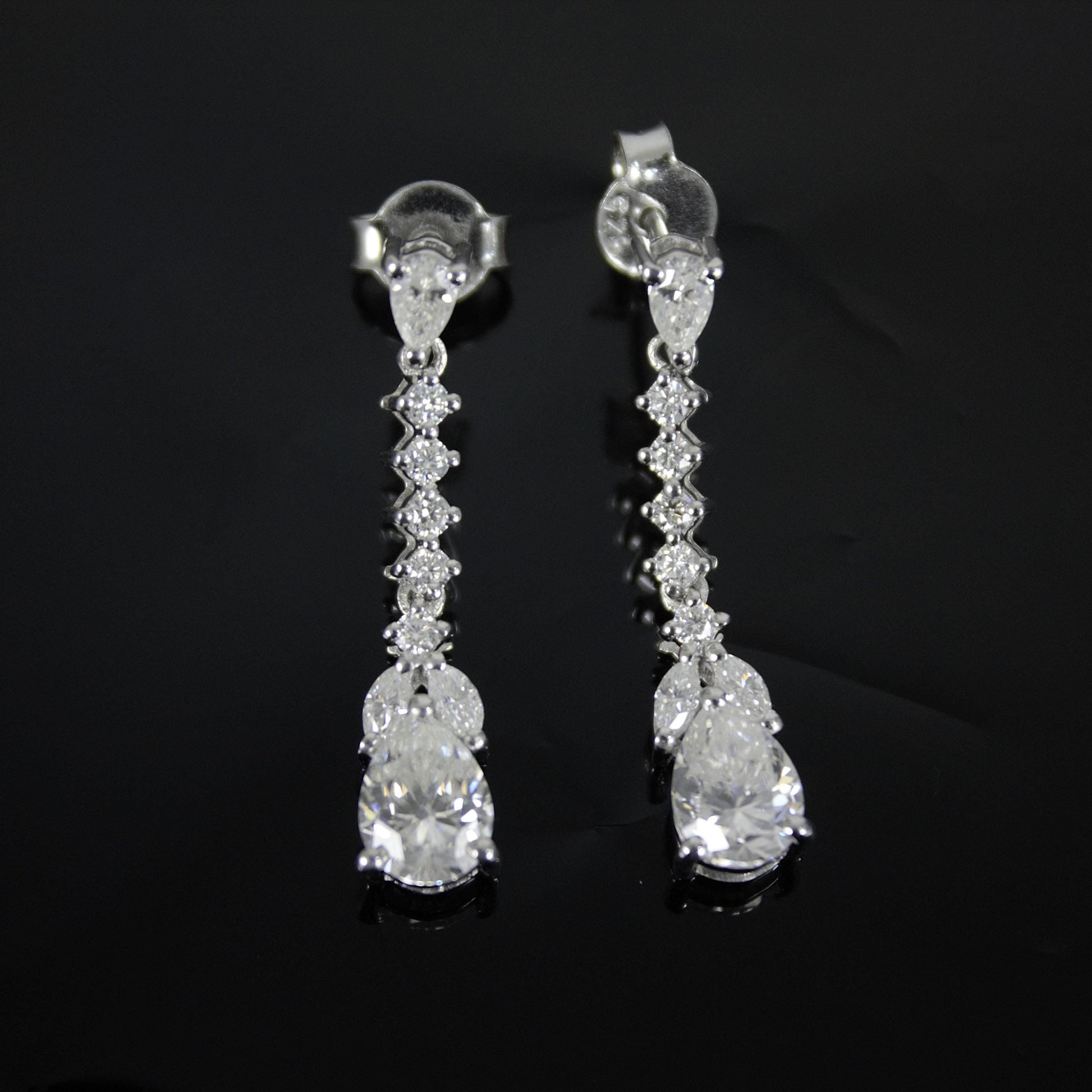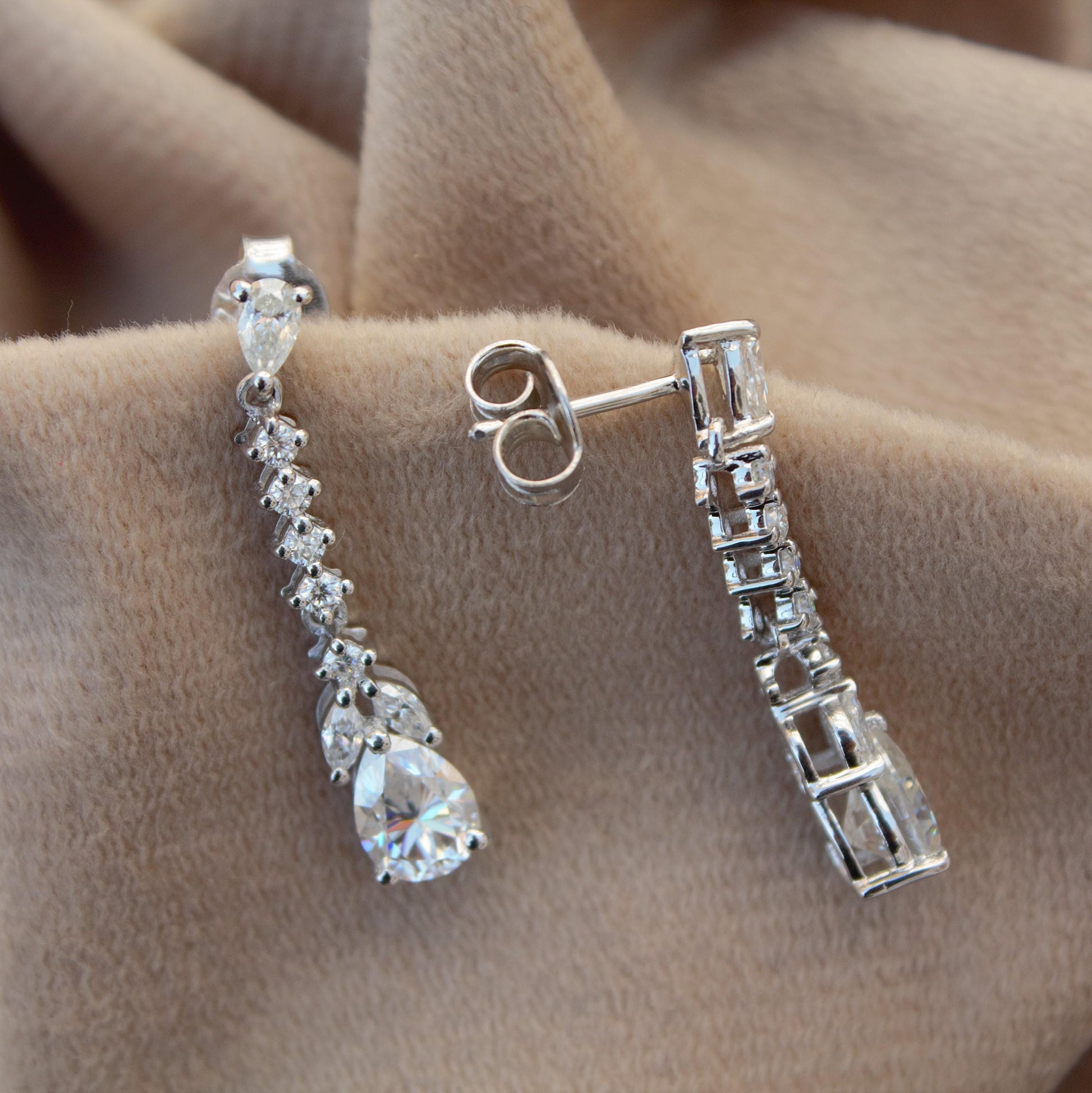 Drop and Dangle Moissanite Silver Earrings, 925 Sterling Silver Long Dangle Earrings for Women, Moissanite Jewelry, Propose Gift for Her Product Details : ✥ Material ::- 925 Sterling Silver ✥ Gemstone ::- Moissanite ✥ Gross Weight ::- 3.808 Gm. (Approx) ✥ Net Weight ::- 3.131 Gm. (Approx) ✥ Stone Weight ::- 3.38 Ct. (Approx) ✥ Stone Quantity ::- 18 ✥ Gemstone Shape ::- Pear, Marquise, Round Customization:- We are able to make changes to this design according to your need or can make any other design you may desire, just send us photo of your favourite product and get it made in your desired materials. Care Instructions:- Wipe your jewelry with a soft cloth after every use Always store your jewelry in a flat box to avoid accidental scratches Benefits Of Wearing Moissanite Gemstone :- Moissanite a diamond alternative encourages you to set greater goals and accomplish success and recognition in your industry of choice. Your personality becomes more endearing, likeable, and magnificent. Also Moissanite is diamond tester positive. Moissanite is believed to be a stone of the future and can help those who want to manifest their dreams and desires. It is said to enhance intuition and creativity and can help you tap into your inner power and potential. If you have any questions or need more information, Please feel free to contact us. For more amazing designs visit our shop https://www.etsy.com/shop/Gemethysts