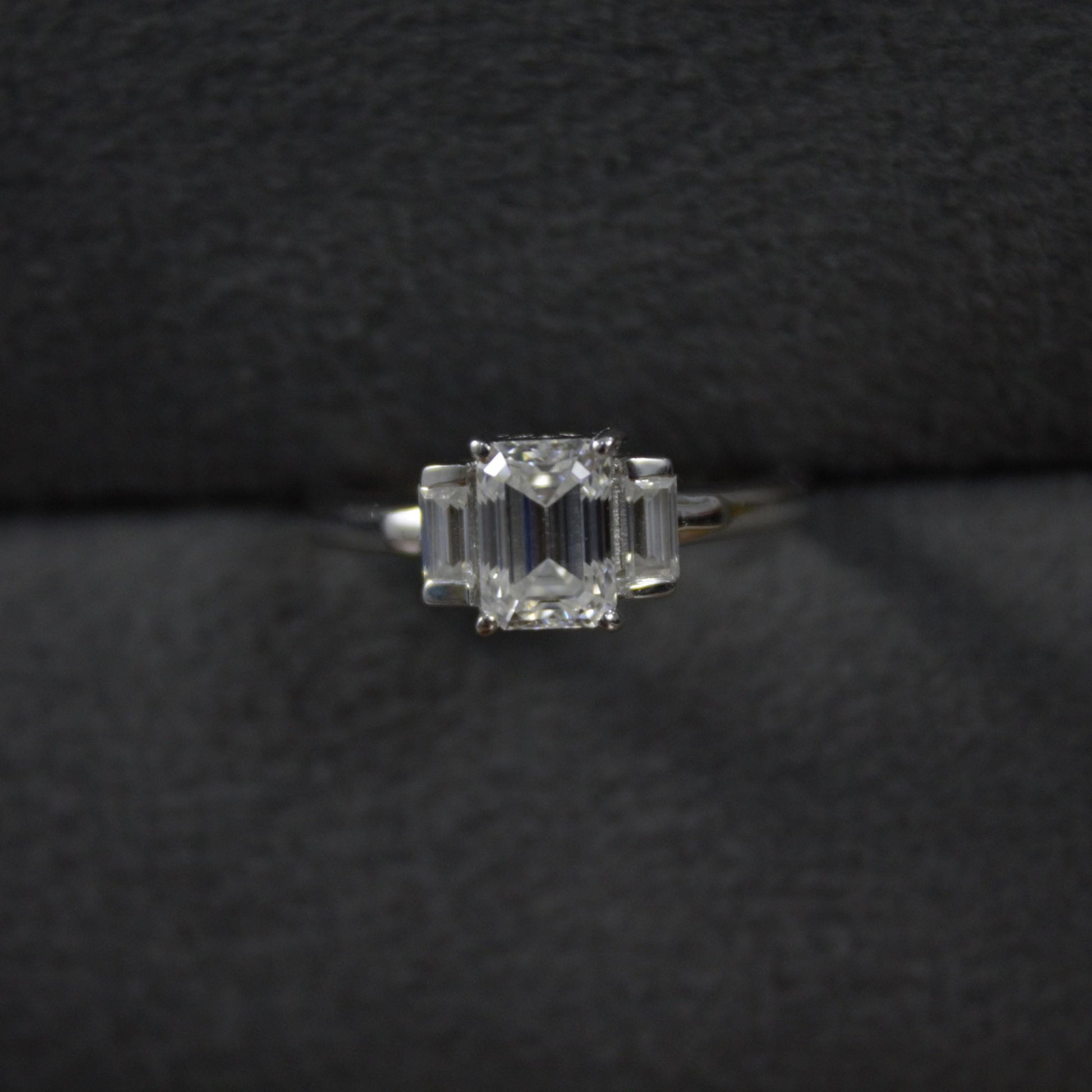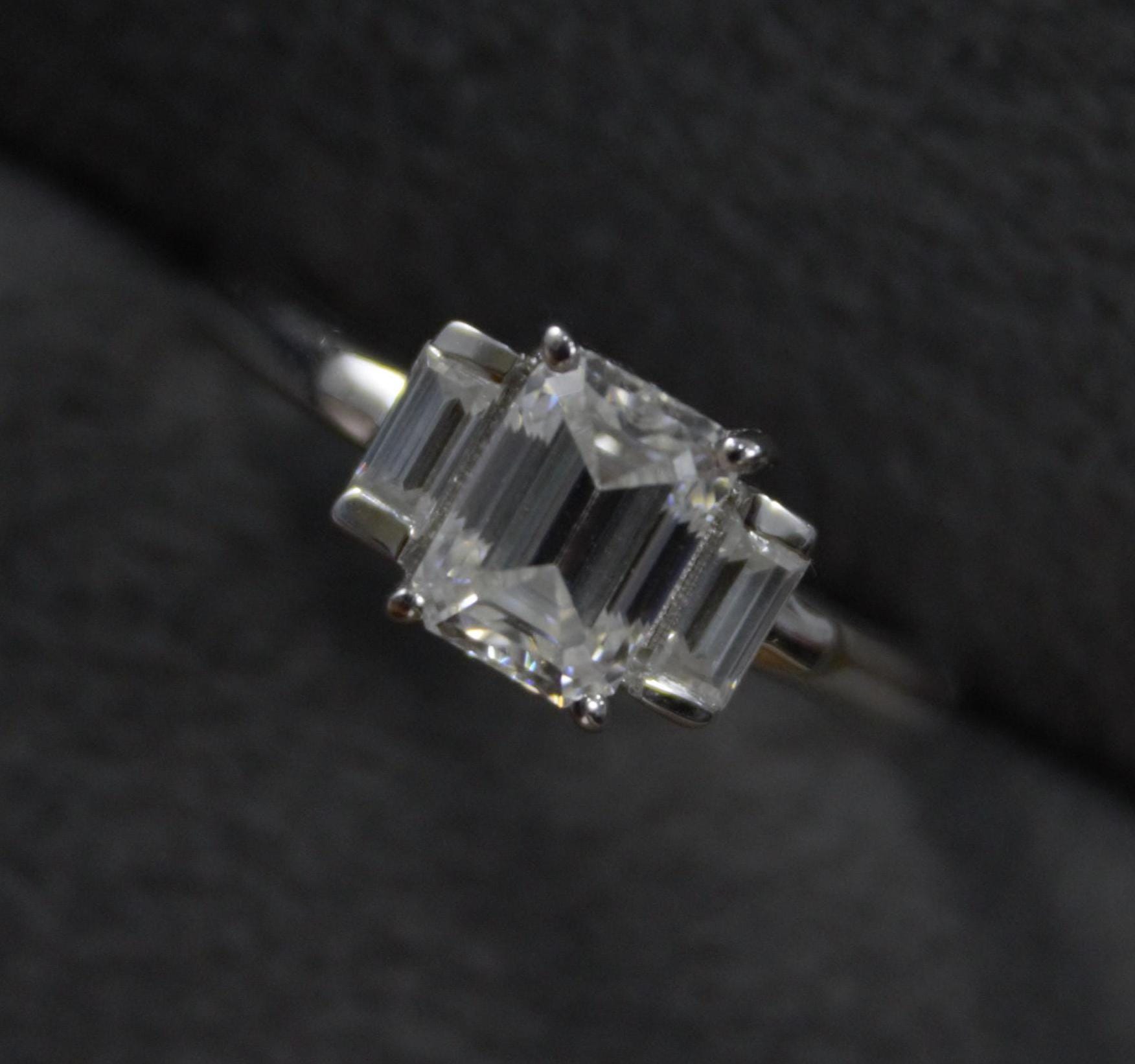 Emerald Cut Moissanite White Stone Ring, 925 Sterling Silver Statement Ring for Bride, Wedding/Engagement Silver Ring, Valentines Day Gift Product Details : ✥ Material ::- 925 Sterling Silver ✥ Gemstone ::- Moissanite ✥ Gross Weight ::- 3.147 Gm. (Approx) ✥ Net Weight ::- 2.97 Gm. (Approx) ✥ Stone Weight ::- 0.885 Ct. (Approx) ✥ Stone Quantity ::- 3 ✥ Gemstone Shape ::- Emerald Cut Customization:- We are able to make changes to this design according to your need or can make any other design you may desire, just send us photo of your favourite product and get it made in your desired materials. Care Instructions:- Wipe your jewelry with a soft cloth after every use Always store your jewelry in a flat box to avoid accidental scratches Benefits Of Wearing Moissanite Gemstone :- Moissanite a diamond alternative encourages you to set greater goals and accomplish success and recognition in your industry of choice. Your personality becomes more endearing, likeable, and magnificent. Also Moissanite is diamond tester positive. Moissanite is believed to be a stone of the future and can help those who want to manifest their dreams and desires. It is said to enhance intuition and creativity and can help you tap into your inner power and potential. If you have any questions or need more information, Please feel free to contact us. For more amazing designs visit our shop https://www.etsy.com/shop/Gemethysts