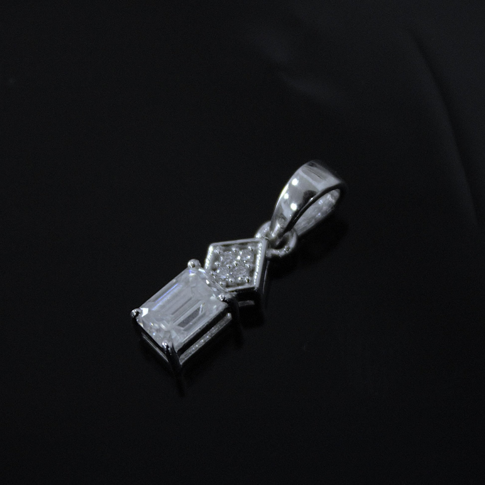 Emerald Cut Silver Charm Pendant, Colorless Moissanite Dainty Pendant, 925 Sterling Silver Jewelry, Tiny Pendant, White Moissanite Jewelry