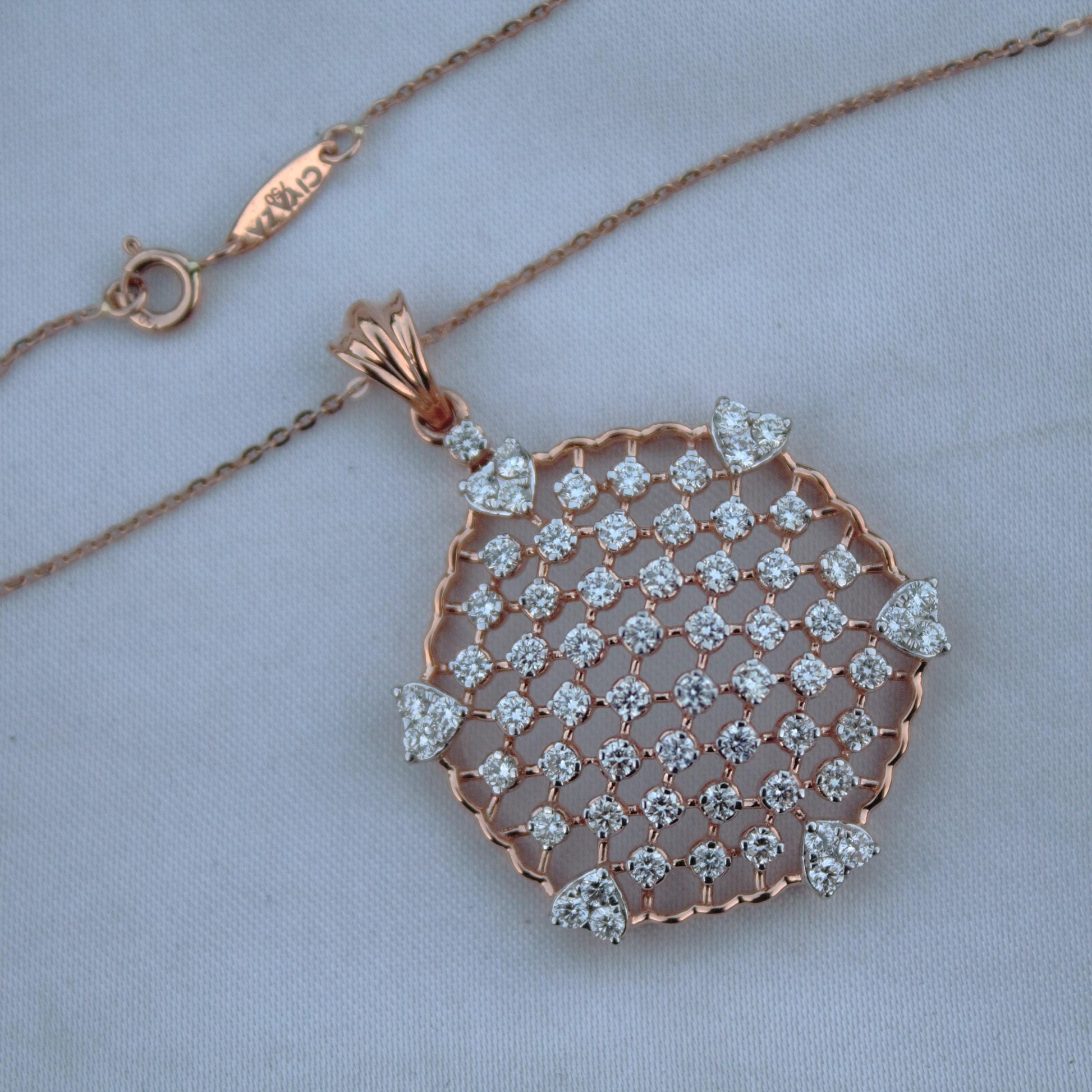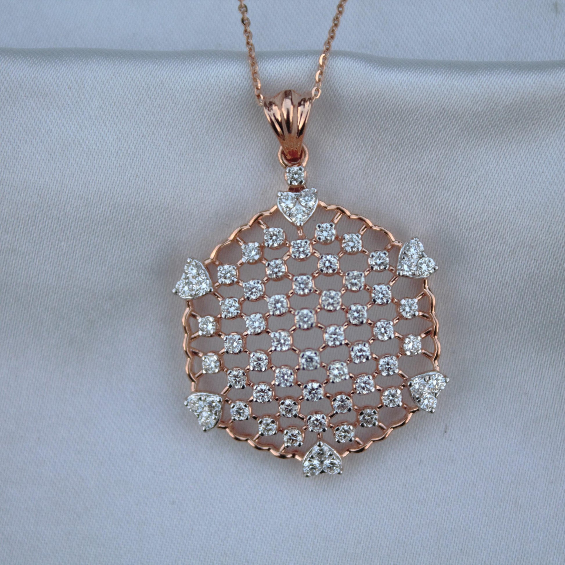 GH Color VS-SI Clarity Natural Diamonds, Beautiful Natural Diamond Necklace Earring Set, 18k Rose Gold Jewelry Set With igi Certificate