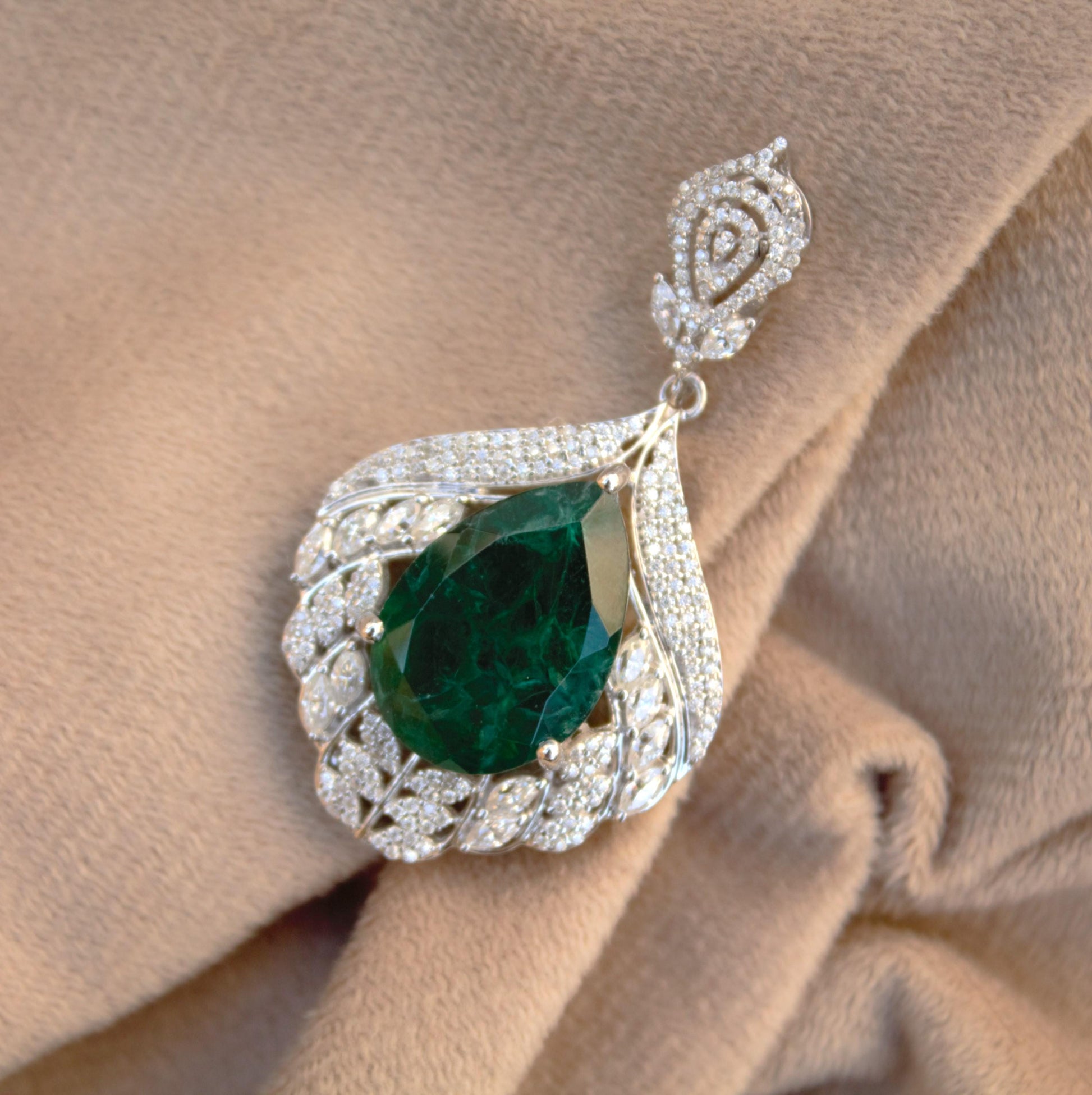 Green Emerald Inclusion with Moissanite Pendant, Statement Halo Pendant, Pear Shape 925 Sterling Silver Pendant for Special Occasion Product Details : ✥ Material ::- 925 Sterling Silver ✥ Center Gemstone ::- Green Inclusions Emerald ✥ Second Gemstone ::- Moissanite ✥ Gross Weight ::- 10.94 Gm. (Approx.) ✥ Net Weight ::- 7.15 Gm. (Approx.) ✥ Stone Weight ::- 18.97 Ct. (Approx.) ✥ Gemstone Shape ::- Pear, Round Customization:- We are able to make changes to this design according to your need or can make any other design you may desire, just send us photo of your favorite product and get it made in your desired materials. Care Instructions:- Wipe your jewelry with a soft cloth after every use Always store your jewelry in a flat box to avoid accidental scratches If you have any questions or need more information, Please feel free to contact us. For more amazing designs visit our shop https://www.etsy.com/shop/Gemethysts