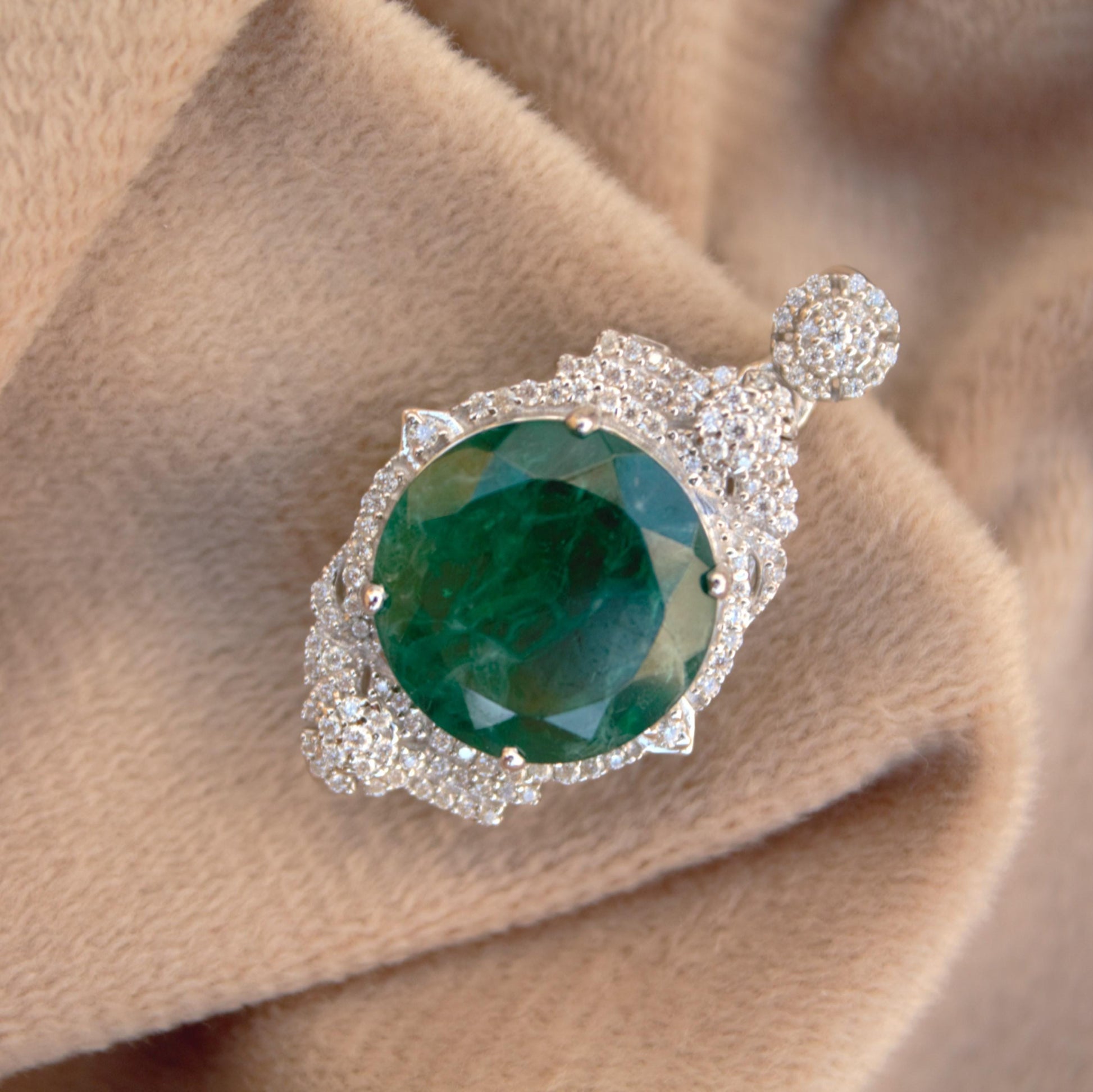 Green Inclusion Emerald With Moissanite Pendant, 4 Prong Setting Silver Pendant, 925 Sterling Silver Delicate Pendant, Birthday Gift for Her Product Details : ✥ Material ::- 925 Sterling Silver ✥ Center Gemstone ::- Green Inclusions Emerald ✥ Second Gemstone ::- Moissanite ✥ Gross Weight ::- 6.19 Gm. (Approx.) ✥ Net Weight ::- 3.91 Gm. (Approx.) ✥ Stone Weight ::- 11.41 Ct. (Approx.) ✥ Total Stones : 116 ✥ Gemstone Shape ::- Round Customization:- We are able to make changes to this design according to your need or can make any other design you may desire, just send us photo of your favorite product and get it made in your desired materials. Care Instructions:- Wipe your jewelry with a soft cloth after every use Always store your jewelry in a flat box to avoid accidental scratches If you have any questions or need more information, Please feel free to contact us. For more amazing designs visit our shop https://www.etsy.com/shop/Gemethysts