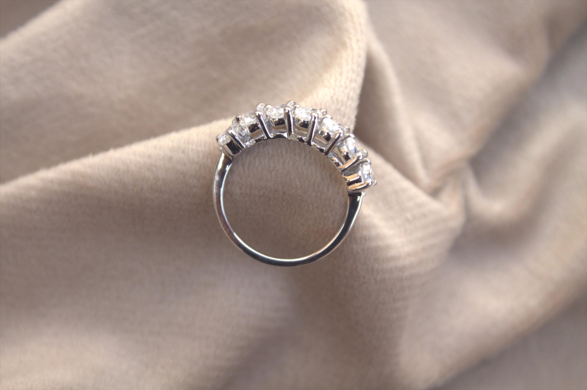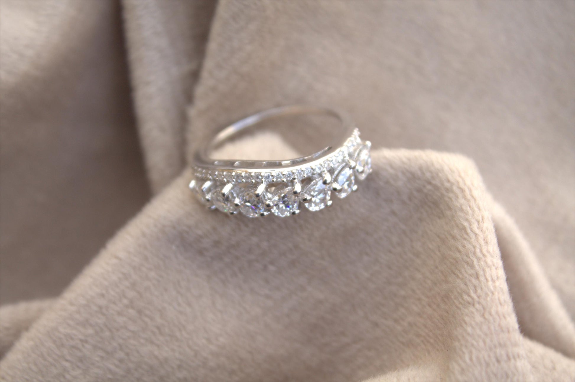 Half Eternity Moissanite Ring Band, Pear Cut White Stone Ring, 925 Sterling Silver Stackable Ring, Engagement/Anniversary Band, Gift for Her Product Details : ✥ Material ::- 925 Sterling Silver ✥ Gemstone ::- Moissanite ✥ Gross Weight ::- 2.357 Gm. (approx) ✥ Net Weight ::- 2.124 Gm. (approx) ✥ Stone Weight ::- 1.16 Ct. (approx) ✥ Stone Quantity ::- 30 ✥ Ring Size ::- 5.5, 6.5, 7.5 US ✥ Gemstone Shape ::- Pear, Round Customization:- We are able to make changes to this design according to your need or can make any other design you may desire, just send us photo of your favourite product and get it made in your desired materials. Care Instructions:- Wipe your jewelry with a soft cloth after every use Always store your jewelry in a flat box to avoid accidental scratches Benefits Of Wearing Moissanite Gemstone :- Moissanite a diamond alternative encourages you to set greater goals and accomplish success and recognition in your industry of choice. Your personality becomes more endearing, likeable, and magnificent. Also Moissanite is diamond tester positive. Moissanite is believed to be a stone of the future and can help those who want to manifest their dreams and desires. It is said to enhance intuition and creativity and can help you tap into your inner power and potential. If you have any questions or need more information, Please feel free to contact us. For more amazing designs visit our shop https://www.etsy.com/shop/Gemethysts