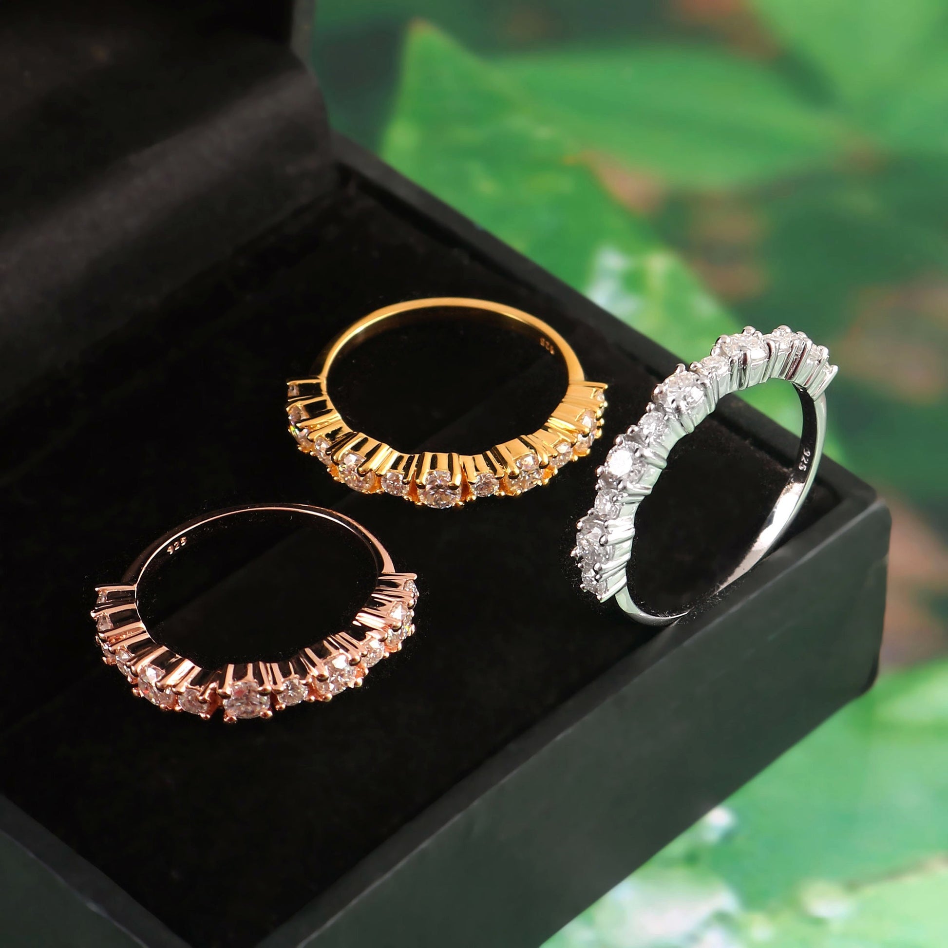 Half Eternity Wedding Band, Lab Grown Diamond Band, Gold Ring, Eternity Pave Diamond Band, Stacking Moissanite Band, Bridal Engagement Ring Product Details : ✥ 𝐂𝐞𝐧𝐭𝐞𝐫 𝐒𝐭𝐨𝐧𝐞 𝐃𝐞𝐭𝐚𝐢𝐥𝐬 ↣ Gemstone : Lab Diamond (CVD / HPHT) ↣ Shape : Round ↣ Color/Clarity : FG Color VVS/ VS grade ↣ Gemstone Size : 3 MM ↣ Number Of Stones : 5 PCS. ✥ 𝐒𝐢𝐝𝐞 𝐒𝐭𝐨𝐧𝐞 𝐃𝐞𝐭𝐚𝐢𝐥𝐬 ↣ Shape : Round ↣ Color/Clarity : FG Color VVS/ VS grade ↣ Stone Size : 2 MM ↣ Number Of Stones : 6 PCS. ✥ 𝐑𝐢𝐧𝐠 𝐃𝐞𝐭𝐚𝐢𝐥𝐬 ↣ Metal Purity : 10K 14K 18K Solid Gold ↣ Metal Tone : White Gold, Yellow Gold, Rose Gold ↣ Stamped : Yes Customization:- We are able to make changes to this design according to your need or can make any other design you may desire, just send us photo of your favourite product and get it made in your desired materials. Care Instructions:- Wipe your jewelry with a soft cloth after every use Always store your jewelry in a flat box to avoid accidental scratches About Lab Diamond:- Lab-grown diamonds share the same physical, chemical, and optical properties as mined diamonds. Their matching brilliance and sparkle make their appearance indistinguishable from diamonds sourced from the Earth. These gems are created in controlled, humane conditions. This eliminates concerns about 'blood diamonds' or worker exploitation that can occur in diamond mining. Lab-grown diamonds shine brightly as an excellent choice for your jewelry. These ethical diamonds offer the identical aesthetic of mined diamonds, with the added benefits of sustainability, affordability, and higher quality. If you have any questions or need more information, Please feel free to contact us. For more amazing designs visit our shop https://www.etsy.com/shop/Gemethysts