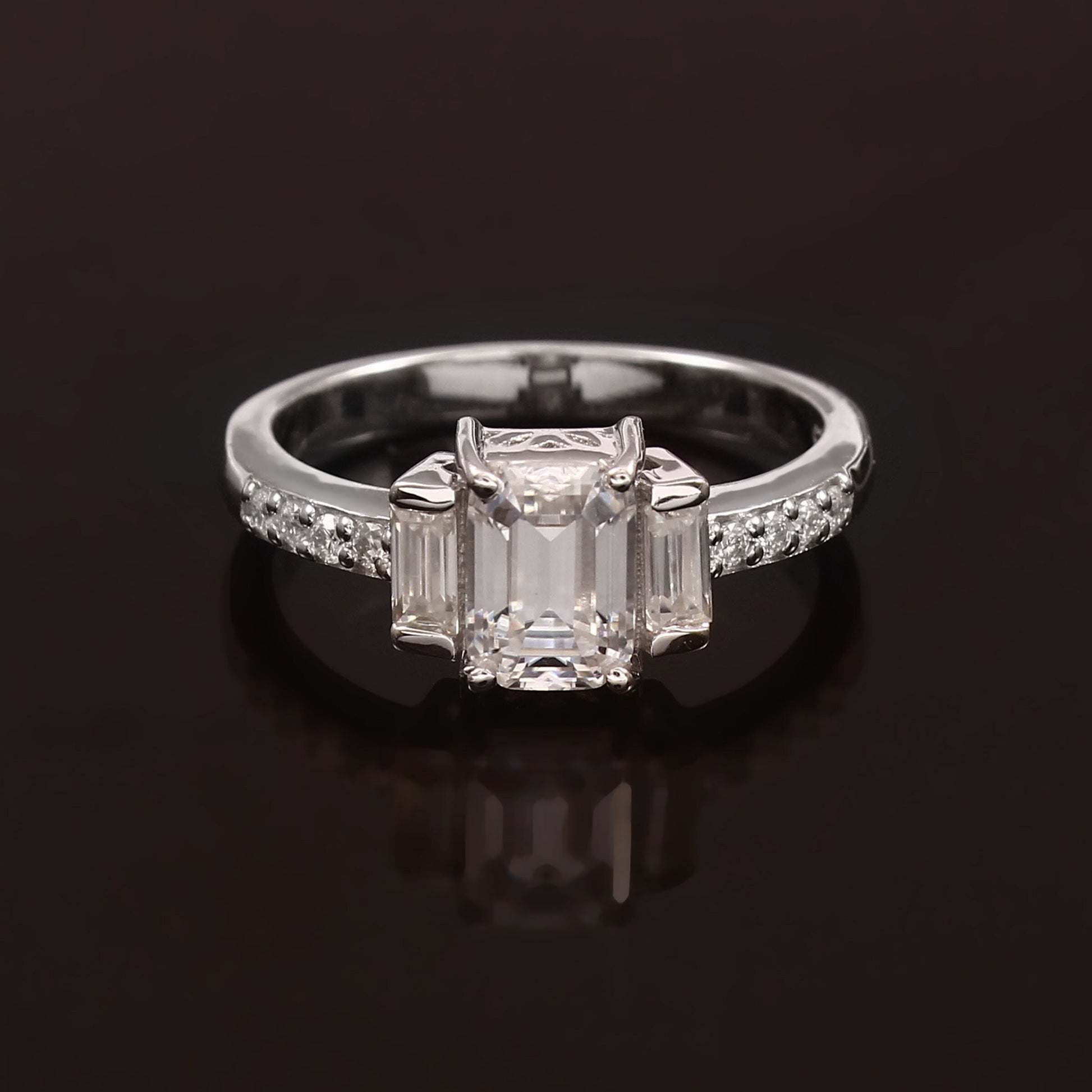 IGI Certified Diamond Gold Ring, Lab Diamond Jewelry, VVS Clarity Diamond Ring, Octagon and Baguette Cut Diamond Ring for Men and Women Product Details : Material ::- 10K, 14K, 18K Solid Gold ✥ 𝐌𝐚𝐢𝐧 𝐒𝐭𝐨𝐧𝐞 𝐃𝐞𝐭𝐚𝐢𝐥𝐬 ↣ Shape: Octagon ↣ Type: Lab Grown Diamond CVD ↣ Weight: 1.66 Ct (App.) ↣ Color: FG+ ↣ Clarity: VVS/VS ↣ Dimension: 9 X 7 MM (approximately) ↣ Making Process: Handmade - Crafted by our experienced team ✥ 𝐒𝐢𝐝𝐞 𝐒𝐭𝐨𝐧𝐞 𝐃𝐞𝐭𝐚𝐢𝐥𝐬 ↣ Shape: Baguette ↣ Type: Lab Grown Diamond CVD ↣ Dimension: 2 X 4 MM (approximately) ↣ Color: FG+ ↣ Clarity: VVS/VS ↣ Making Process: Handmade - Crafted by our experienced team ✥ 𝐒𝐢𝐝𝐞 𝐒𝐭𝐨𝐧𝐞 𝐃𝐞𝐭𝐚𝐢𝐥𝐬 ↣ Shape: Round ↣ Type: Lab Grown Diamond CVD ↣ Dimension: 1 MM (approximately) ↣ Color: FG+ ↣ Clarity: VVS/VS Customization:- We are able to make changes to this design according to your need or can make any other design you may desire, just send us photo of your favorite product and get it made in your desired materials. Care Instructions:- Wipe your jewelry with a soft cloth after every use Always store your jewelry in a flat box to avoid accidental scratches About Lab Diamond:- Lab-grown diamonds share the same physical, chemical, and optical properties as mined diamonds. Their matching brilliance and sparkle make their appearance indistinguishable from diamonds sourced from the Earth. These gems are created in controlled, humane conditions. This eliminates concerns about 'blood diamonds' or worker exploitation that can occur in diamond mining. Lab-grown diamonds shine brightly as an excellent choice for your jewelry. These ethical diamonds offer the identical aesthetic of mined diamonds, with the added benefits of sustainability, affordability, and higher quality. If you have any questions or need more information, Please feel free to contact us. For more amazing designs visit our shop https://www.etsy.com/shop/Gemethysts