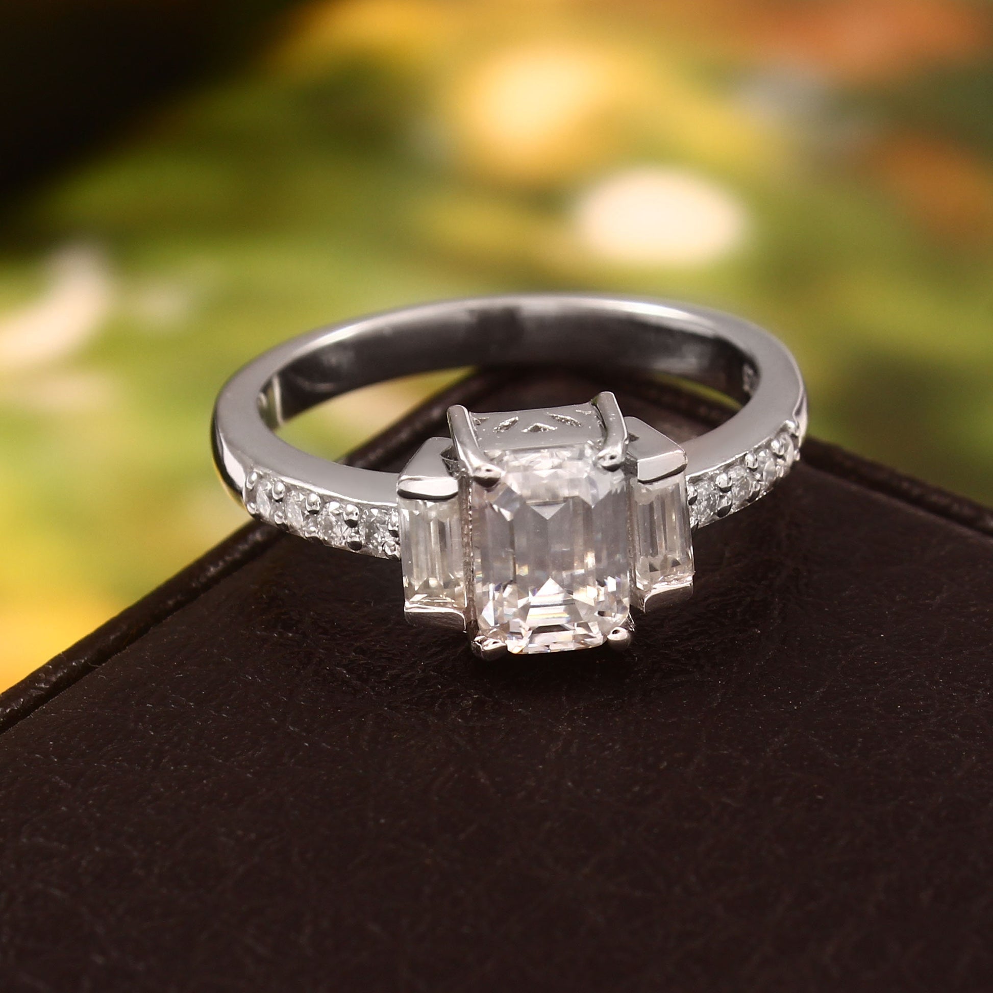 IGI Certified Diamond Gold Ring, Lab Diamond Jewelry, VVS Clarity Diamond Ring, Octagon and Baguette Cut Diamond Ring for Men and Women