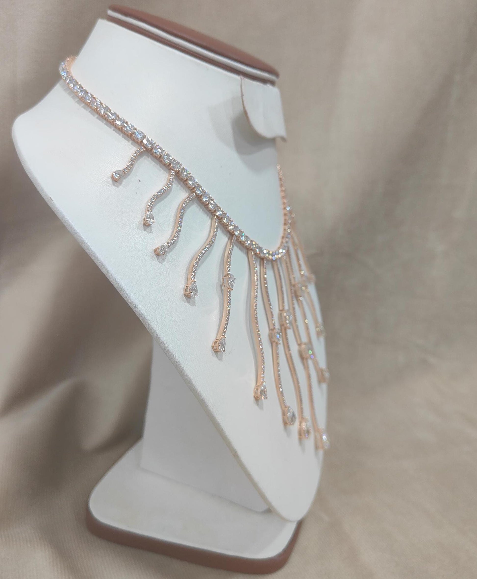 Lab Grown Diamond Gold Necklace, Statement Designer Necklace, CVD/HPHT Diamond Necklace, Grand Pear Cut Diamond Solid Gold Wedding Necklace Product Details : 𝐃𝐢𝐚𝐦𝐨𝐧𝐝 𝐃𝐞𝐭𝐚𝐢𝐥𝐬 ✥ Gemstone : Lab Grown Diamond (CVD/HPHT) ✥ Color : EF ✥ Clarity : VVS / VS ✥ Shape : Pear/Round Shaped ✤𝐍𝐞𝐜𝐤𝐥𝐚𝐜𝐞 𝐃𝐞𝐭𝐚𝐢𝐥𝐬 ✥ Material : Solid 10K 14K or 18K ✥ Chain Length : Adjustable ✥ Clasp : Secured box lock ✥ Size : 18 inch ✥ Stone weight - Around 51 carat ✥ Setting : Prong Setting Yellow/White/Rose Gold (choose your preference) ✥ Chain: Adjustable Perfect for: * Engagements, weddings, or anniversary gifts * A special statement piece for formal events * Everyday luxury and elegance Customization:- We are able to make changes to this design according to your need or can make any other design you may desire, just send us photo of your favourite product and get it made in your desired materials. Care Instructions:- Wipe your jewelry with a soft cloth after every use Always store your jewelry in a flat box to avoid accidental scratches About Lab Diamond :- Lab-grown diamonds share the same physical, chemical, and optical properties as mined diamonds. Their matching brilliance and sparkle make their appearance indistinguishable from diamonds sourced from the Earth. These gems are created in controlled, humane conditions. This eliminates concerns about 'blood diamonds' or worker exploitation that can occur in diamond mining. Lab-grown diamonds shine brightly as an excellent choice for your jewelry. These ethical diamonds offer the identical aesthetic of mined diamonds, with the added benefits of sustainability, affordability, and higher quality. If you have any questions or need more information, Please feel free to contact us. For more amazing designs visit our shop https://www.etsy.com/shop/Gemethysts