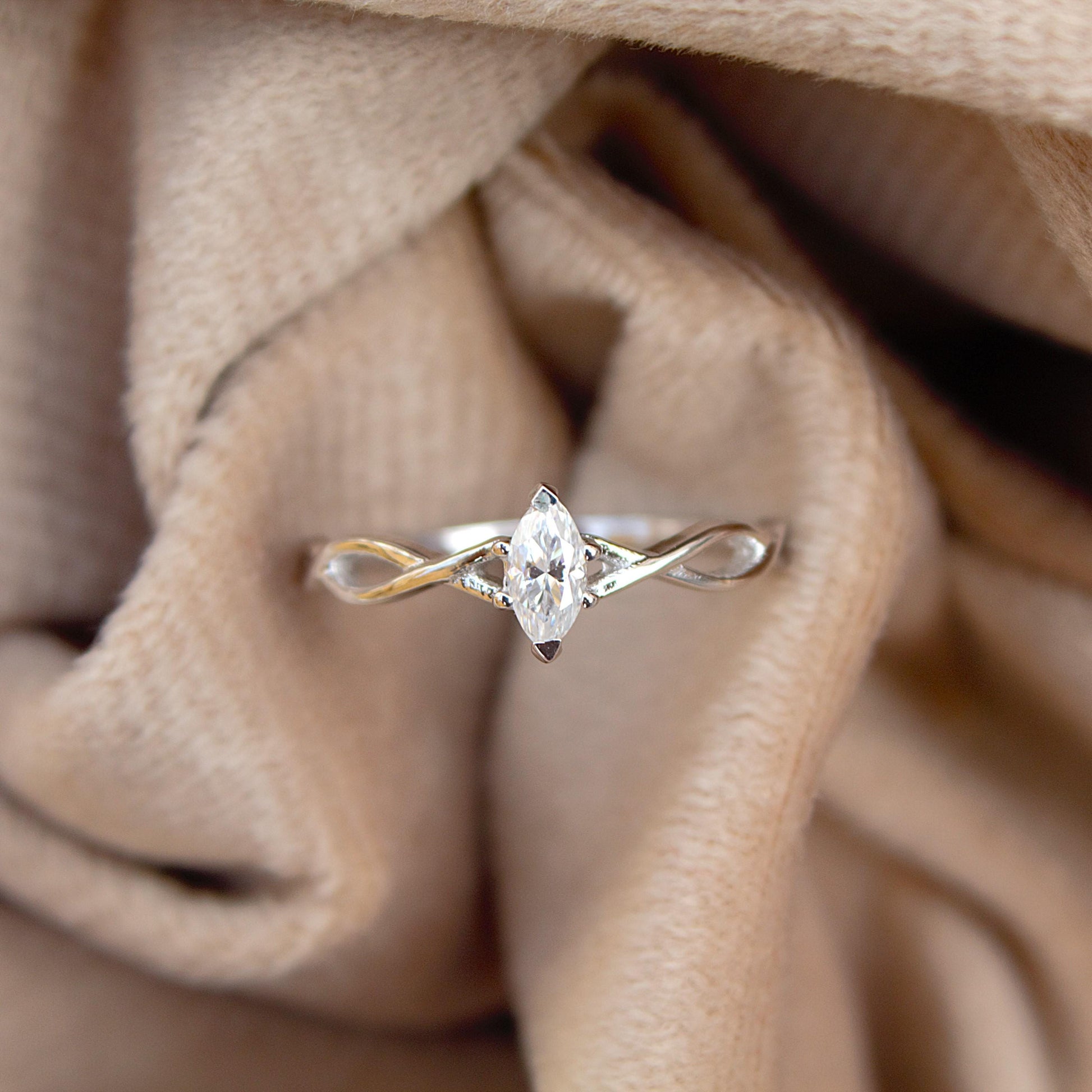 Marquise Cut Stone Moissanite Silver Ring, 925 Sterling Silver Ring, Minimalist Ring, Dainty Silver Ring, White Stone Ring, Gift for Her Product Details : ✥ Material ::- 925 Sterling Silver ✥ Gemstone ::- Moissanite ✥ Gross Weight ::- 1.095 Gm. (Approx) ✥ Net Weight ::- 1.065 Gm. (Approx) ✥ Stone Weight ::- 0.150 Ct. (Approx) ✥ Stone Quantity ::- 1 ✥ Gemstone Shape ::- Marquise Customization:- We are able to make changes to this design according to your need or can make any other design you may desire, just send us photo of your favourite product and get it made in your desired materials. Care Instructions:- Wipe your jewelry with a soft cloth after every use Always store your jewelry in a flat box to avoid accidental scratches Benefits Of Wearing Moissanite Gemstone :- Moissanite a diamond alternative encourages you to set greater goals and accomplish success and recognition in your industry of choice. Your personality becomes more endearing, likeable, and magnificent. Also Moissanite is diamond tester positive. Moissanite is believed to be a stone of the future and can help those who want to manifest their dreams and desires. It is said to enhance intuition and creativity and can help you tap into your inner power and potential. If you have any questions or need more information, Please feel free to contact us. For more amazing designs visit our shop https://www.etsy.com/shop/Gemethysts