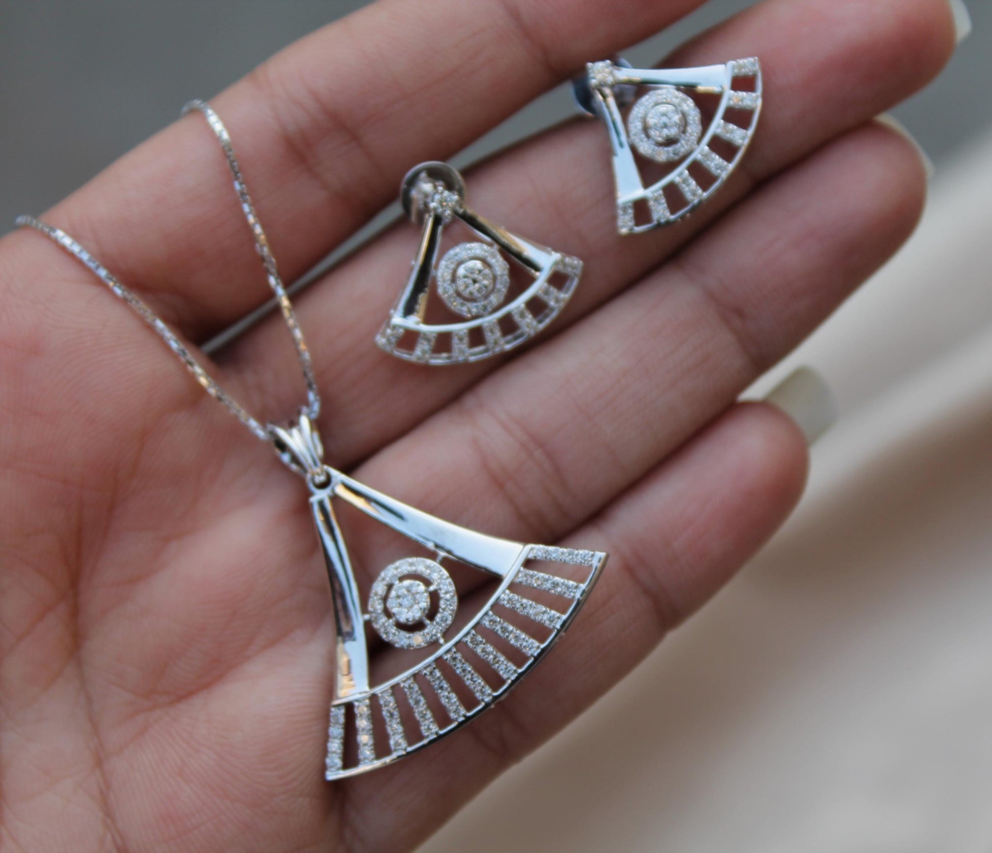 Minimalist Gold Diamond Jewelry, Natural Diamond Necklace Earring for Bride, Available in White Gold, Yellow Gold, Rose Gold, IGI Certified