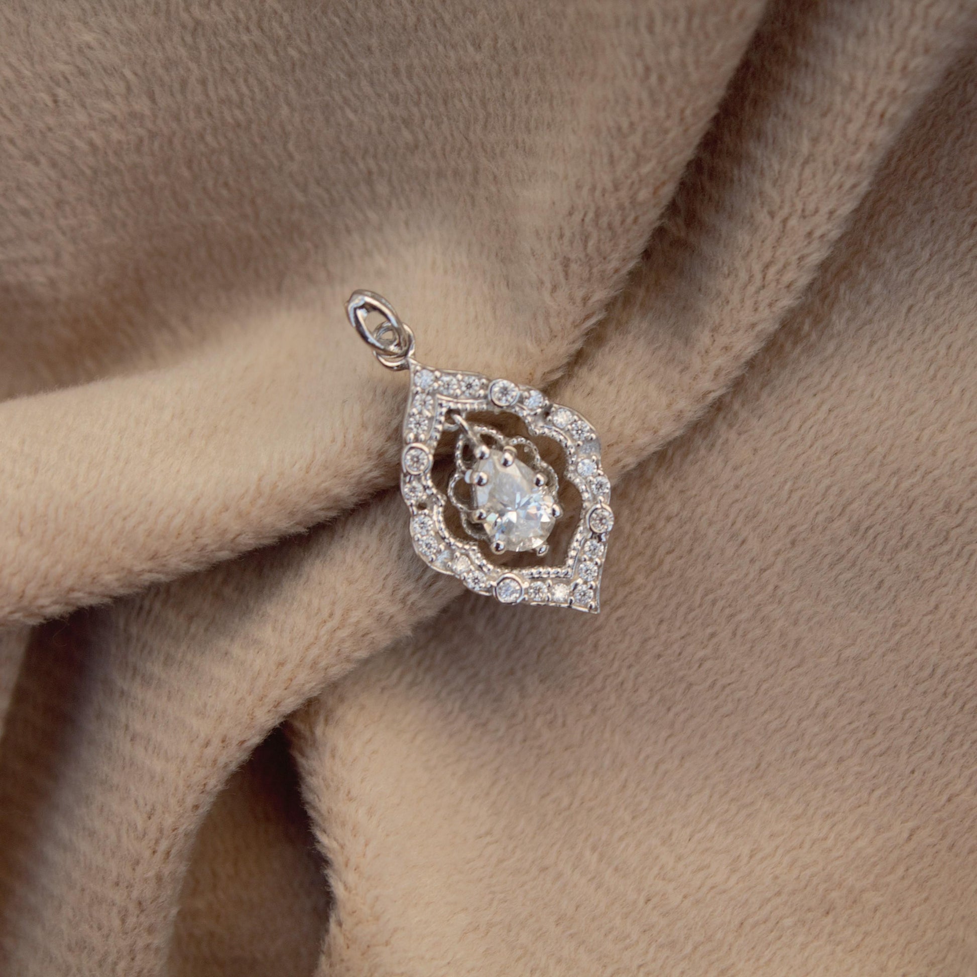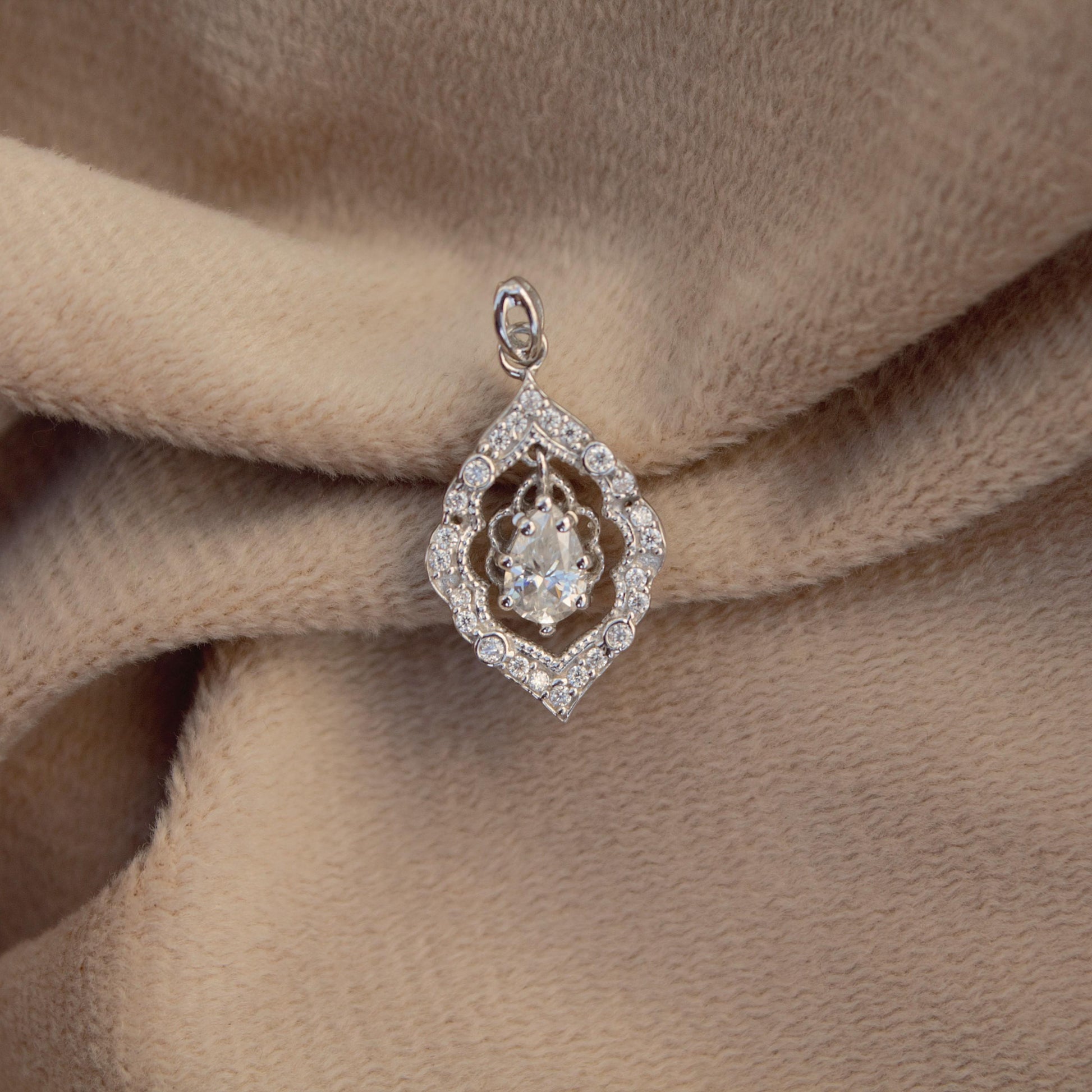Minimalist Silver Charm Pendant, Moissanite Solitaire Halo Pendant, 925 Sterling Silver Pendant, Dainty Moissanite Pendant Gift for Women Product Details : ✥ Material ::- 925 Sterling Silver ✥ Gemstone ::- Moissanite ✥ Gross Weight ::- 1.547 Gm. (approx) ✥ Net Weight ::- 1.428 Gm. (approx) ✥ Stone Weight ::- 0.593 Ct. (approx) ✥ Stone Quantity ::- 24 ✥ Gemstone Shape ::- Pear, Round Customization:- We are able to make changes to this design according to your need or can make any other design you may desire, just send us photo of your favourite product and get it made in your desired materials. Care Instructions:- Wipe your jewelry with a soft cloth after every use Always store your jewelry in a flat box to avoid accidental scratches Benefits Of Wearing Moissanite Gemstone : Moissanite a diamond alternative encourages you to set greater goals and accomplish success and recognition in your industry of choice. Your personality becomes more endearing, likeable, and magnificent. Also Moissanite is diamond tester positive. Moissanite is believed to be a stone of the future and can help those who want to manifest their dreams and desires. It is said to enhance intuition and creativity and can help you tap into your inner power and potential. If you have any questions or need more information, Please feel free to contact us. For more amazing designs visit our shop https://www.etsy.com/shop/Gemethysts