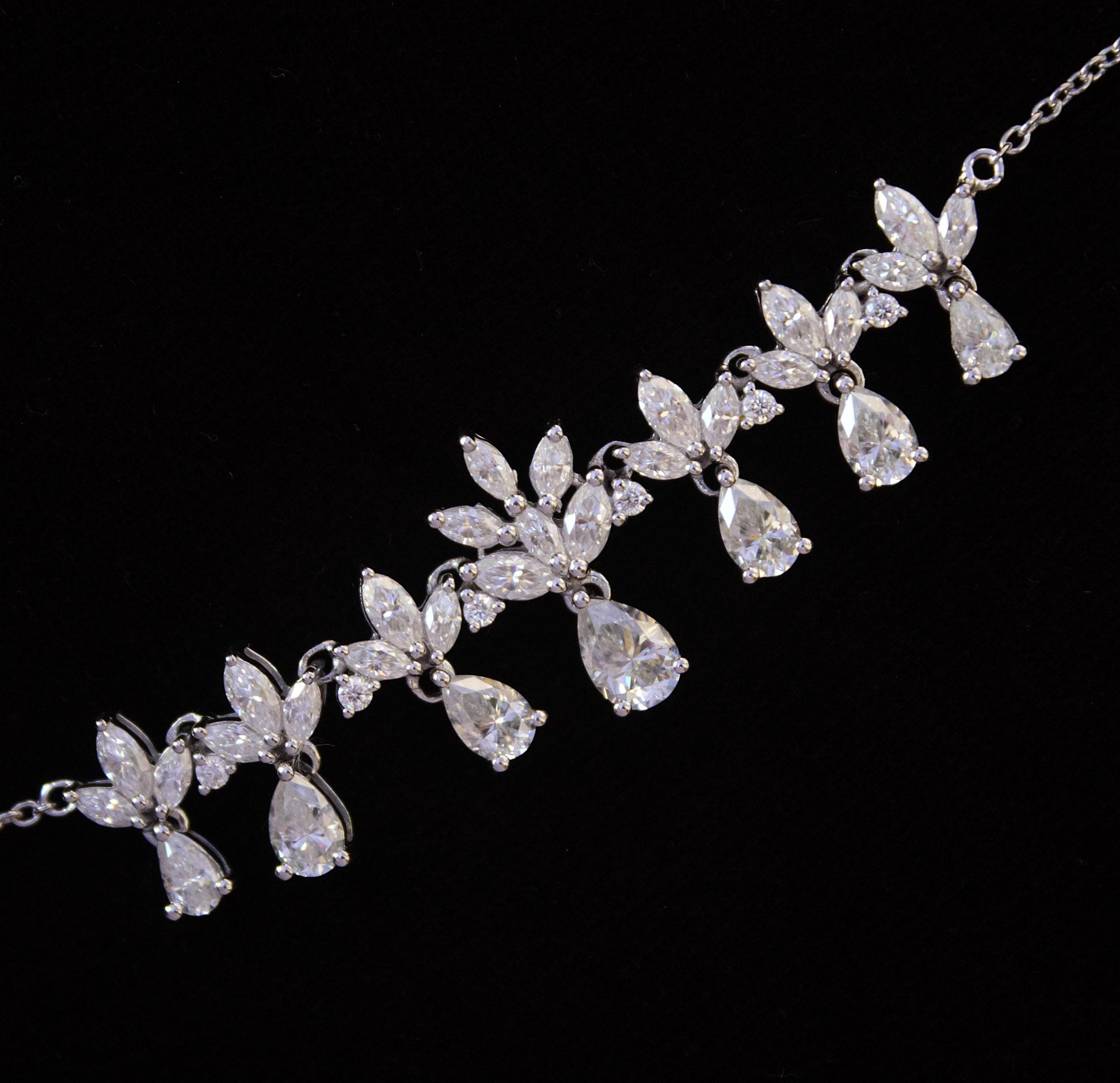 Moissanite 925 Sterling Silver Chain Necklace, Handmade Pear Drop Necklace For Women, Minimalist Marquise Cut Necklace, Wedding Gift for Her Product Details : ✥ Material ::- 925 Sterling Silver ✥ Gemstone ::- Moissanite ✥ Gross Weight ::- 8.030 Gm. (approx) ✥ Net Weight ::- 6.640 Gm. (approx) ✥ Stone Weight ::- 6.95 Ct. (approx) ✥ Stone Quantity ::- 37 ✥ Necklace Length (With Extension) ::- 18 inch ✥ Necklace Length (Without Extension) ::- 16 inch ✥ Gemstone Shape ::- Marquise, Pear, Round Customization:- We are able to make changes to this design according to your need or can make any other design you may desire, just send us photo of your favourite product and get it made in your desired materials. Care Instructions:- Wipe your jewelry with a soft cloth after every use Always store your jewelry in a flat box to avoid accidental scratches ✥✥✥✥✥✥Benefits Of Wearing Moissanite Gemstone✥✥✥✥✥✥ Moissanite a diamond alternative encourages you to set greater goals and accomplish success and recognition in your industry of choice. Your personality becomes more endearing, likeable, and magnificent. Also Moissanite is diamond tester positive. Moissanite is believed to be a stone of the future and can help those who want to manifest their dreams and desires. It is said to enhance intuition and creativity and can help you tap into your inner power and potential. If you have any questions or need more information, Please feel free to contact us. For more amazing designs visit our shop https://www.etsy.com/shop/Gemethysts