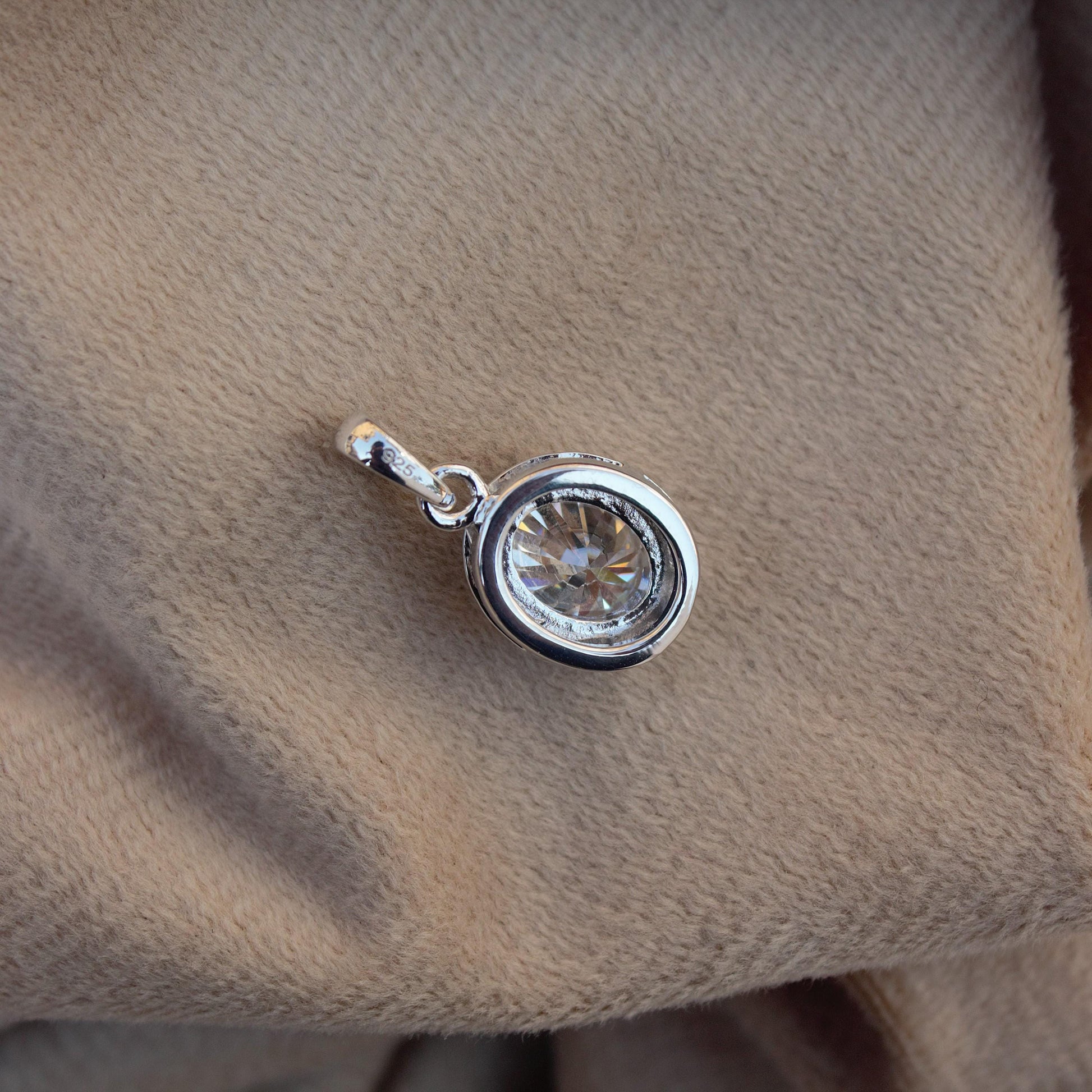 Moissanite 925 Sterling Silver Pendant, Oval Cut White Stone Pendant for Men and Women, Minimalist Pendant for Chain, Silver Charm Pendant