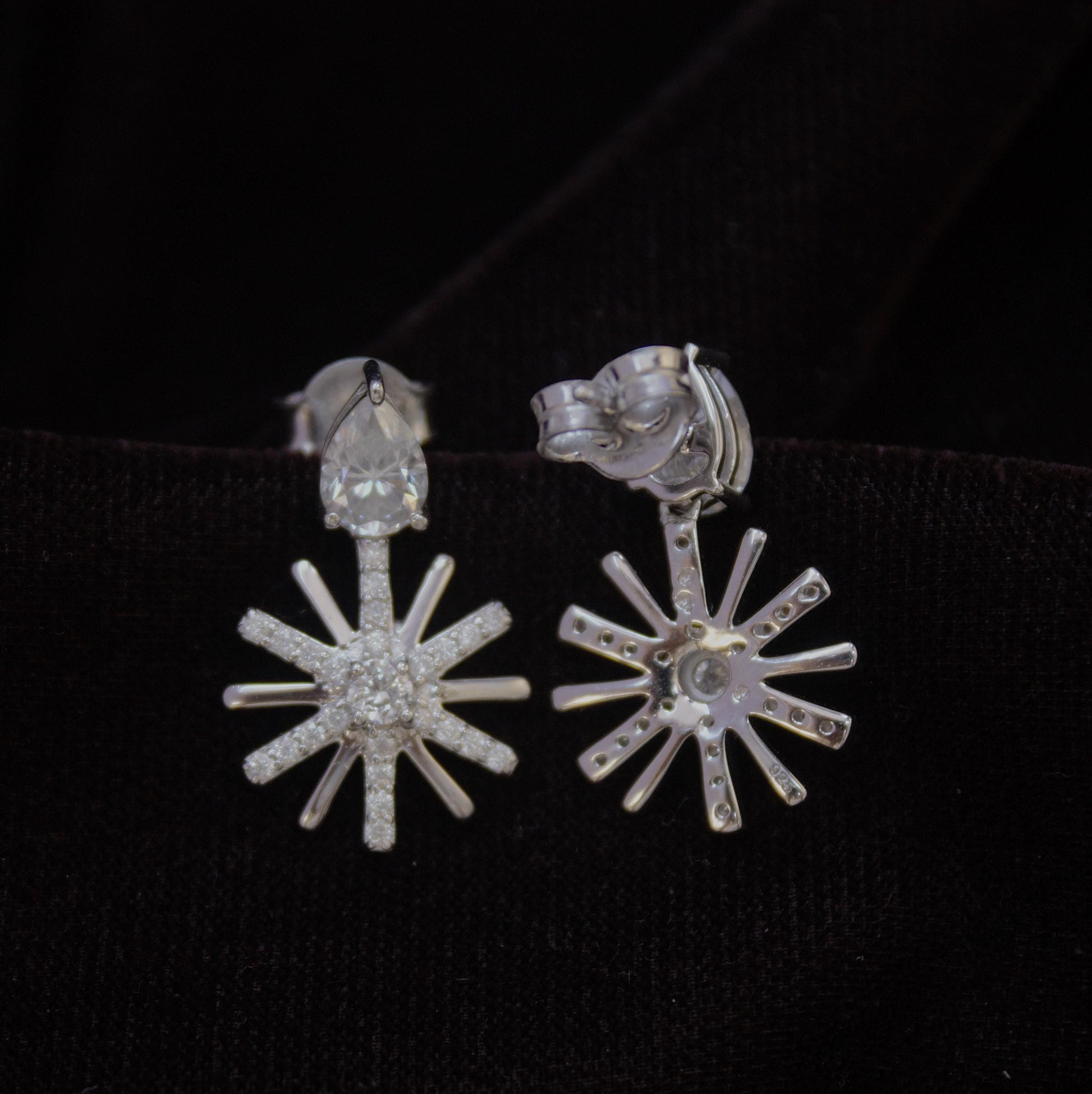 Moissanite Cluster Flower Stud Dangle Earrings, Designer Party Wear Earrings, Floral Shape Earrings for Women, Vintage Earrings in Silver Product Details : ✥ Material ::- 925 Sterling Silver ✥ Gemstone ::- Moissanite ✥ Gross Weight ::- 4.894 Gm. (approx) ✥ Net Weight ::- 4.420 Gm. (approx) ✥ Stone Weight ::- 2.37 Ct. (approx) ✥ Stone Quantity ::- 52 ✥ Gemstone Shape ::- Pear, Round Customization:- We are able to make changes to this design according to your need or can make any other design you may desire, just send us photo of your favourite product and get it made in your desired materials. Care Instructions:- Wipe your jewelry with a soft cloth after every use Always store your jewelry in a flat box to avoid accidental scratches ✥✥✥✥✥✥Benefits Of Wearing Moissanite Gemstone✥✥✥✥✥✥ Moissanite a diamond alternative encourages you to set greater goals and accomplish success and recognition in your industry of choice. Your personality becomes more endearing, likeable, and magnificent. Also Moissanite is diamond tester positive. Moissanite is believed to be a stone of the future and can help those who want to manifest their dreams and desires. It is said to enhance intuition and creativity and can help you tap into your inner power and potential. If you have any questions or need more information, Please feel free to contact us. For more amazing designs visit our shop https://www.etsy.com/shop/Gemethysts
