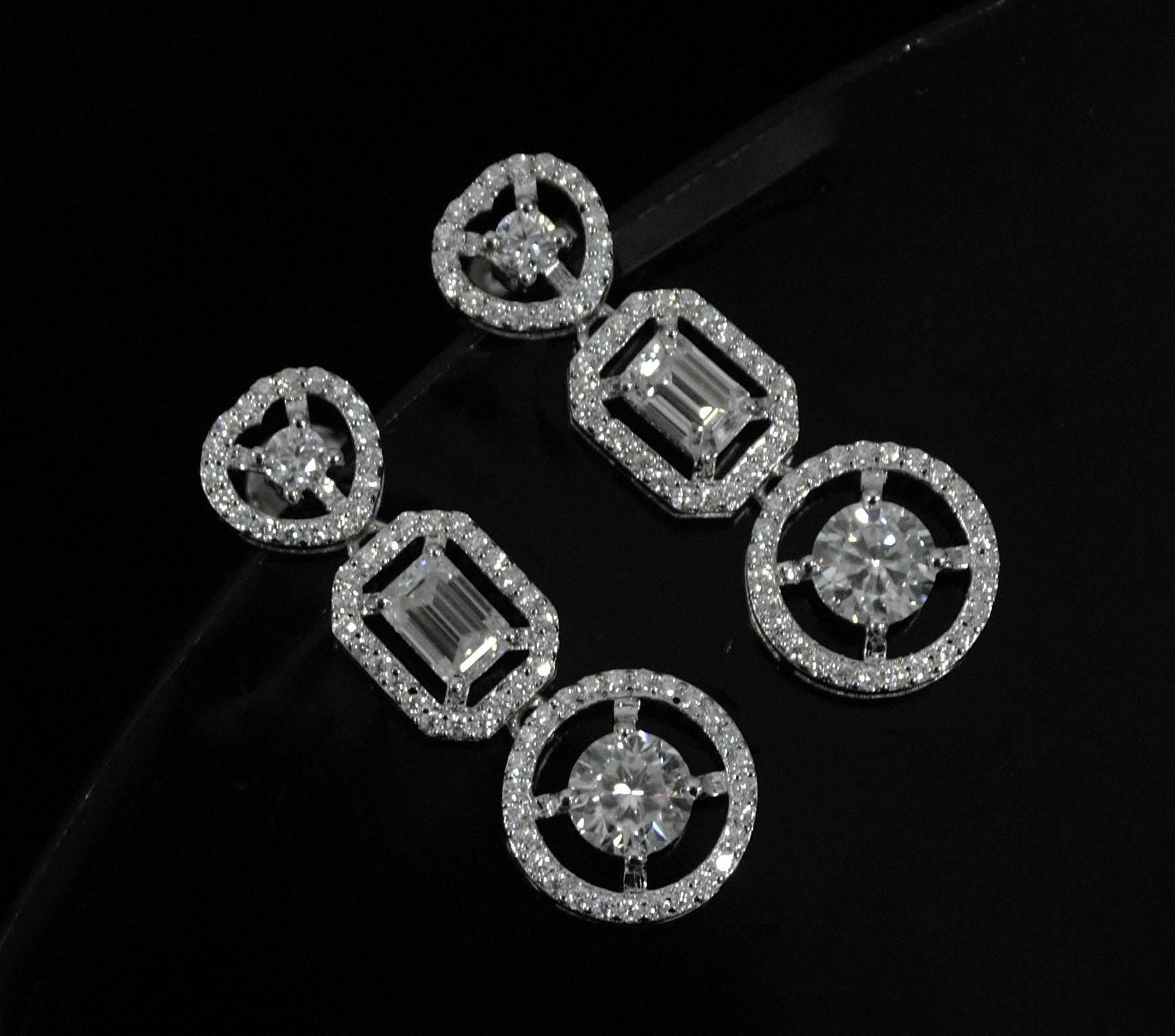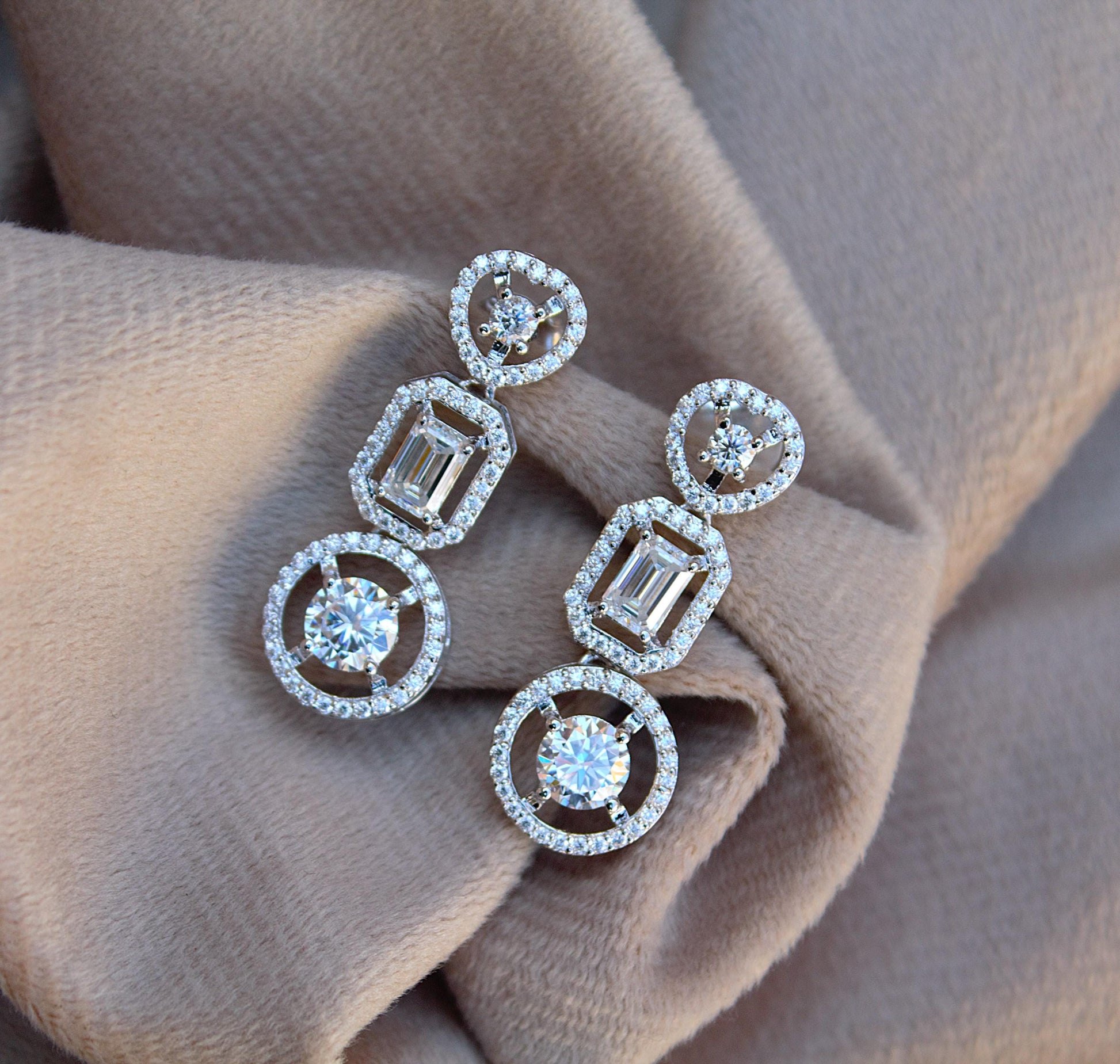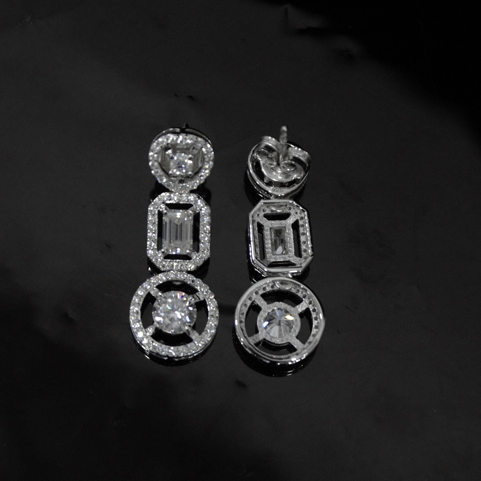 Moissanite Earrings For Women, 925 Sterling Silver Sparkling Stud Dangle Earrings, Statement Earrings, Retro Jewelry, Valentines Day Gift Product Details : ✥ Material ::- 925 Sterling Silver ✥ Gemstone ::- Moissanite ✥ Gross Weight ::- 5.82 Gm. (approx) ✥ Net Weight ::- 5.072 Gm. (approx) ✥ Stone Weight ::- 3.736 Ct. (approx) ✥ Stone Quantity ::- 146 ✥ Gemstone Shape ::- Round, Emerald Cut Customization:- We are able to make changes to this design according to your need or can make any other design you may desire, just send us photo of your favourite product and get it made in your desired materials. Care Instructions:- Wipe your jewelry with a soft cloth after every use Always store your jewelry in a flat box to avoid accidental scratches ✥✥✥✥✥✥Benefits Of Wearing Moissanite Gemstone✥✥✥✥✥✥ Moissanite a diamond alternative encourages you to set greater goals and accomplish success and recognition in your industry of choice. Your personality becomes more endearing, likeable, and magnificent. Also Moissanite is diamond tester positive. Moissanite is believed to be a stone of the future and can help those who want to manifest their dreams and desires. It is said to enhance intuition and creativity and can help you tap into your inner power and potential. If you have any questions or need more information, Please feel free to contact us. For more amazing designs visit our shop https://www.etsy.com/shop/Gemethysts