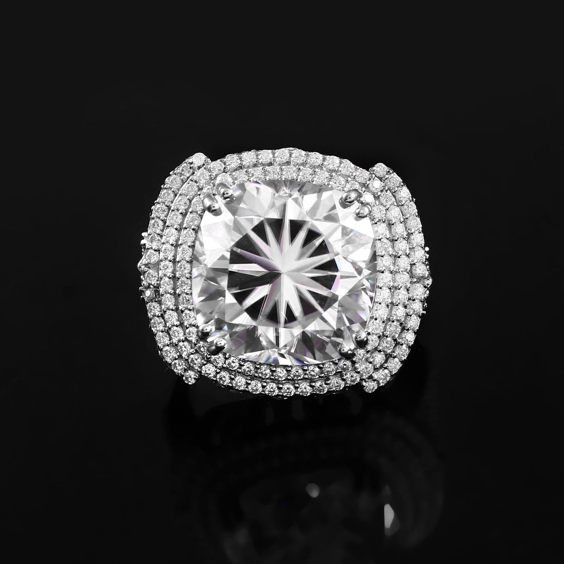 Moissanite Gold Ring, Victorian Style Ring, 14K Moissanite Gold Jewelry, Big Cushion Ring, Gift For Engagement, Statement Solid Gold Ring Product Details ✥ 𝐂𝐞𝐧𝐭𝐞𝐫 𝐒𝐭𝐨𝐧𝐞 𝐃𝐞𝐭𝐚𝐢𝐥𝐬 ⁂ Gemstone : Moissanite ⁂ Shape : Cushion ⁂ Color/Clarity : D Color VVS 1 grade ⁂ Gemstone Size : 13 X 13 MM ✥ 𝐒𝐢𝐝𝐞 𝐒𝐭𝐨𝐧𝐞 𝐃𝐞𝐭𝐚𝐢𝐥𝐬 ⁂ Shape : Round ⁂ Color/Clarity : D Color VVS 1 grade ⁂ Stone Size : 1 MM, 0.90 MM ✥ 𝐑𝐢𝐧𝐠 𝐃𝐞𝐭𝐚𝐢𝐥𝐬 ⁂ Metal Purity : Solid Gold ⁂ Ring Weight : 7.95 (Approx) ⁂ Ring Size : All Sizes Available ⁂ Making Process: Handmade - Crafted by our experienced team ⁂ Metal Tone : Rose Gold- White Gold- Yellow Gold ⁂ Stamped : Yes Customization:- We are able to make changes to this design according to your need or can make any other design you may desire, just send us photo of your favourite product and get it made in your desired materials. Care Instructions:- Wipe your jewelry with a soft cloth after every use Always store your jewelry in a flat box to avoid accidental scratches ✥✥✥✥✥✥Benefits Of Wearing Moissanite Gemstone✥✥✥✥✥✥ Moissanite a diamond alternative encourages you to set greater goals and accomplish success and recognition in your industry of choice. Your personality becomes more endearing, likeable, and magnificent. Also Moissanite is diamond tester positive. Moissanite is believed to be a stone of the future and can help those who want to manifest their dreams and desires. It is said to enhance intuition and creativity and can help you tap into your inner power and potential. If you have any questions or need more information, Please feel free to contact us. For more amazing designs visit our shop https://www.etsy.com/shop/Gemethysts