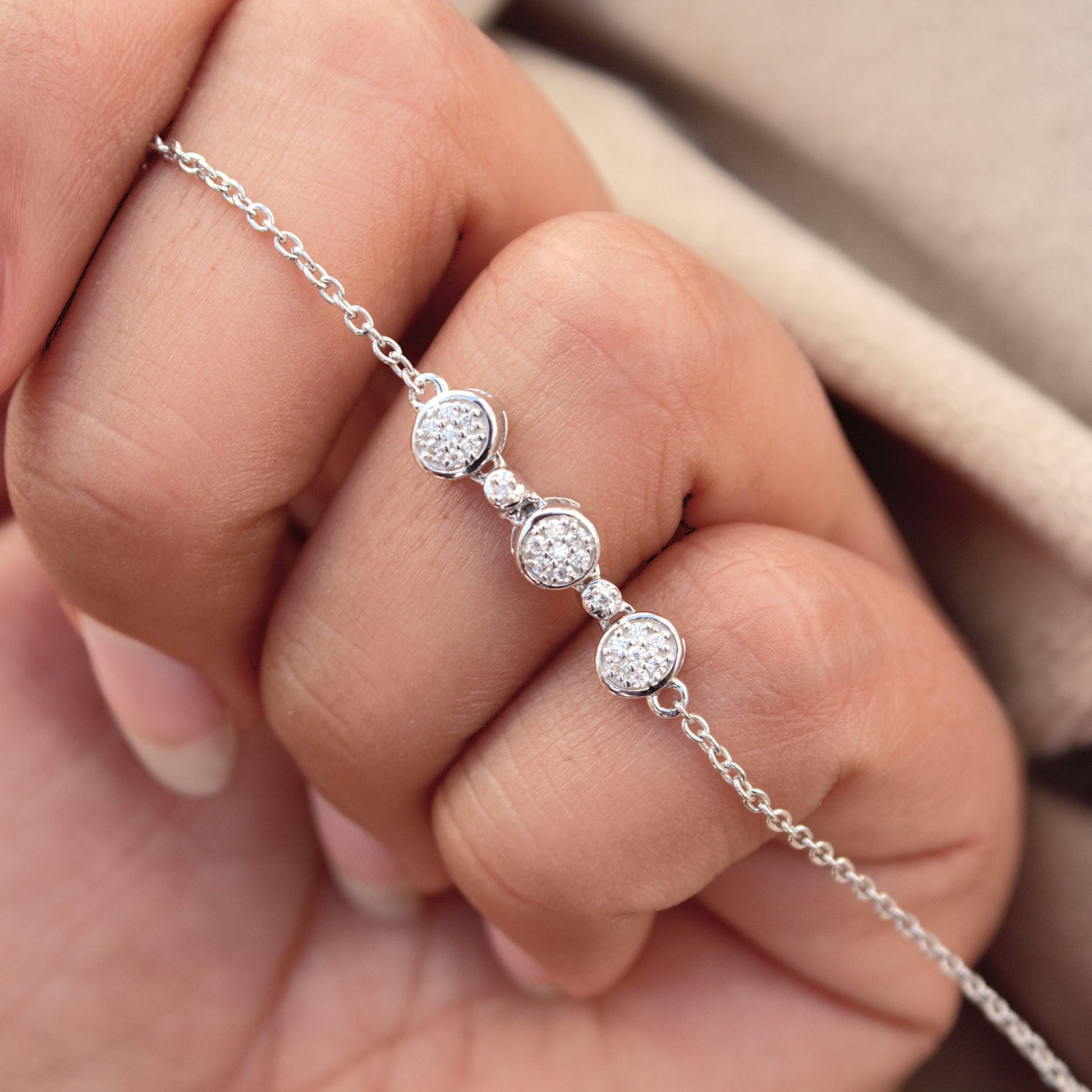 Moissanite Link Chain Bracelet in 925 Sterling Silver, Adjustable Bracelet For Girls, Silver Dainty Bracelet, Graduation Gift for Daughter Product Details : ✥ Material ::- 925 Sterling Silver ✥ Gemstone ::- Moissanite ✥ Gross Weight ::- 2.362 Gm. (approx) ✥ Net Weight ::- 2.338 Gm. (approx) ✥ Stone Weight ::- 0.118 Ct. (approx) ✥ Stone Quantity ::- 23 ✥ Gemstone Shape ::- Round Customization:- We are able to make changes to this design according to your need or can make any other design you may desire, just send us photo of your favorite product and get it made in your desired materials. Care Instructions:- Wipe your jewelry with a soft cloth after every use Always store your jewelry in a flat box to avoid accidental scratches Benefits Of Wearing Moissanite Gemstone : Moissanite a diamond alternative encourages you to set greater goals and accomplish success and recognition in your industry of choice. Your personality becomes more endearing, likeable, and magnificent. Also Moissanite is diamond tester positive. Moissanite is believed to be a stone of the future and can help those who want to manifest their dreams and desires. It is said to enhance intuition and creativity and can help you tap into your inner power and potential. If you have any questions or need more information, Please feel free to contact us. For more amazing designs visit our shop https://www.etsy.com/shop/Gemethysts