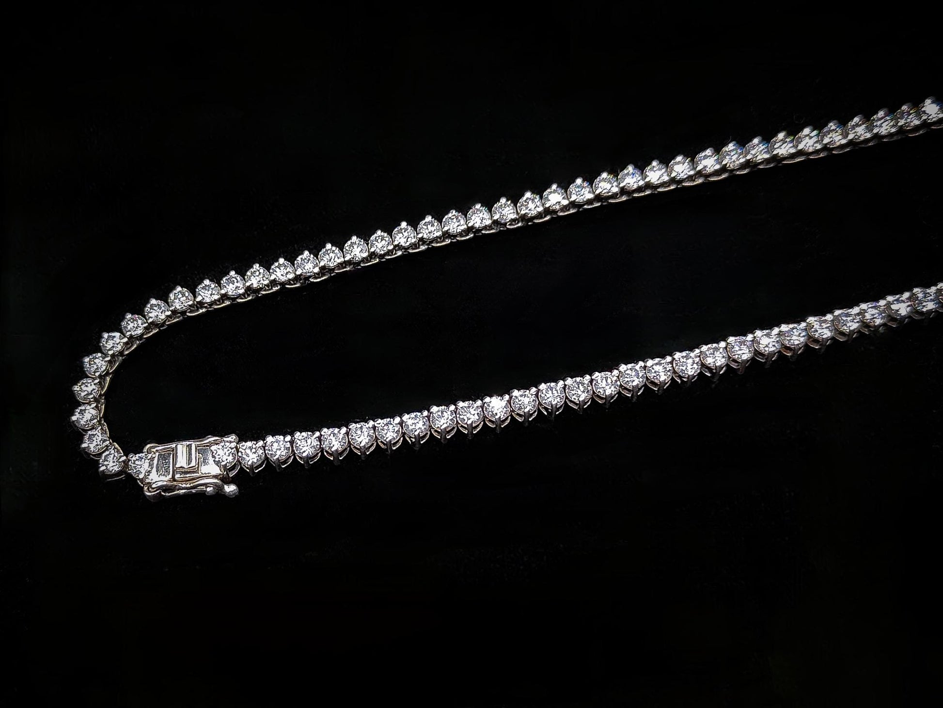 Moissanite Three Prong Tennis Necklace, 925 Sterling Silver Necklace, 3mm Moissanite Silver Chain, Infinity Necklace For Her, Christmas Gift Product Details : Material : 925 Sterling Silver Stone : Moissanite Shape : Round Cut Closure : Box Lock Stone Size: 3mm Customization:- We are able to make changes to this design according to your need or can make any other design you may desire, just send us photo of your favourite product and get it made in your desired materials. Care Instructions:- Wipe your jewelry with a soft cloth after every use Always store your jewelry in a flat box to avoid accidental scratches ✥✥✥✥✥✥Benefits Of Wearing Moissanite Gemstone✥✥✥✥✥✥ Moissanite a diamond alternative encourages you to set greater goals and accomplish success and recognition in your industry of choice. Your personality becomes more endearing, likeable, and magnificent. Also Moissanite is diamond tester positive. Moissanite is believed to be a stone of the future and can help those who want to manifest their dreams and desires. It is said to enhance intuition and creativity and can help you tap into your inner power and potential. If you have any questions or need more information, Please feel free to contact us. For more amazing designs visit our shop https://www.etsy.com/shop/Gemethysts