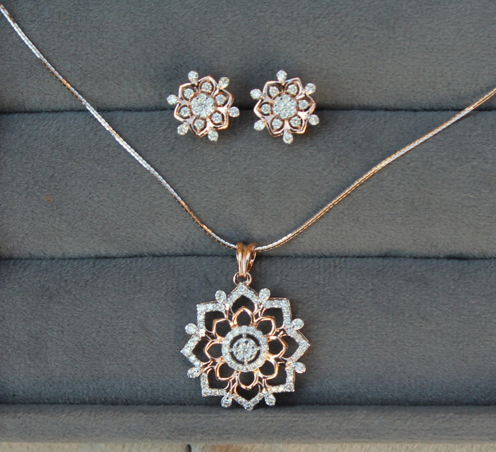 Natural Diamond Gold Jewelry For Anniversary Gift, 18K Real Gold Diamond Pendant Earring Set, IGI Certified Jewelry, Perfect Gift For Wife