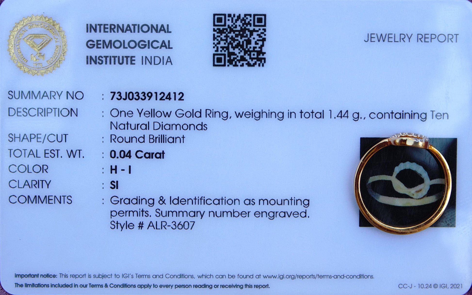 1.44 Gm Natural Diamond Gold Knot Ring, Elegant Gold Ring, H - I Color With SI Clarity Natural Diamonds Stacking Ring, Propose Ring for Her IGI Certified Real Diamond Gold Jewelry. Product Details- Ring Details : Gold Purity : 18K Gold Gross Weight : 1.44 grams Net Weight : 1.432 grams Ring Size : 4.25 US Diamond Weight : 0.04 carat Diamond Color : H - I Diamond Clarity : SI IGI Report : 73J033912412 IGI Certificate Report Link : https://www.igi.org/verify-your-report/?r=73J033912412 About Diamond :- The history of diamonds is a tale that spans millennia and continents. Diamonds were first discovered in India, where they were revered for their extraordinary beauty and symbolism. Ancient Indian texts, dating back to at least the 4th century BC, mention diamonds as "Vajra," a term signifying both thunderbolts and diamonds, highlighting their indestructibility. Natural Diamond, is one of such sparkling gemstones with various benefits. Real Heera symbolizes true undying love. Physically it is considered unbreakable. On the chemical ground, Diamond is said to be the strongest mineral present on the planet Earth. It is a naturally occurring material produced by components of carbon. Clear colorless diamonds are though quite rare and uncommon; diamonds with a tint of yellow and brown colors are most easily found. Real Diamond, popularly renowned as Heera in Hindi, is one of the nine gemstones on the list of Navratna gemstones. It is undeniably the first love of any woman. Customization:- We are able to make changes to this design according to your need or can make any other design you may desire, just send us photo of your favorite product and get it made in your desired materials. Care Instructions:- Wipe your jewelry with a soft cloth after every use Always store your jewelry in a flat box to avoid accidental scratches For more amazing designs visit our shop https://www.etsy.com/shop/Gemethysts