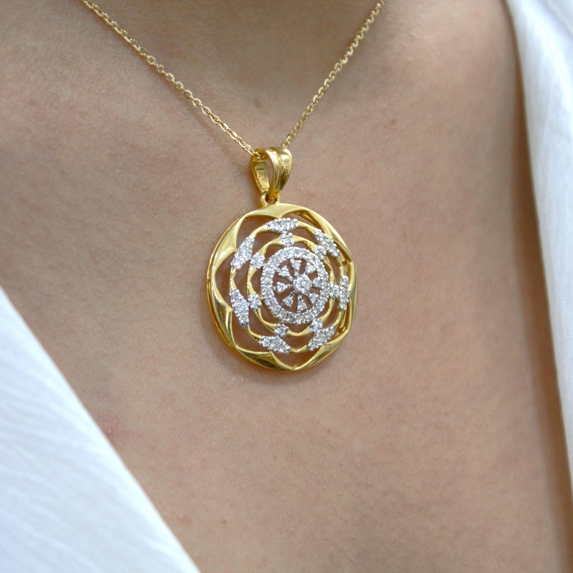 Natural Diamond Halo Cluster Pendant, 18k Solid Yellow Gold Pendant for Wife, IGI Certified Beautiful Diamond Pendant, Designer Elegant Gift