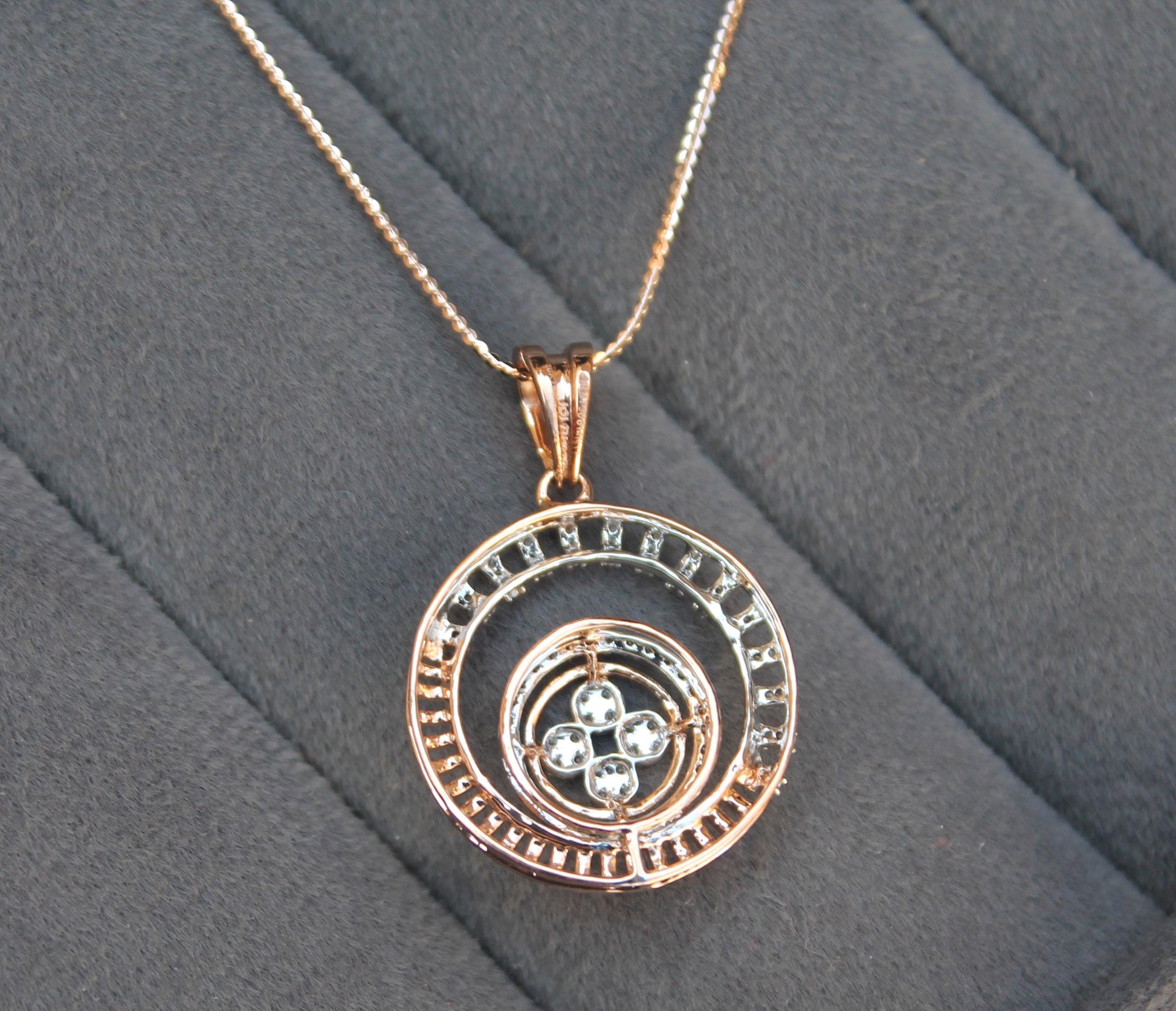 Natural Diamond Necklace Earrings Set, 18K Gold Jewelry Set, Designer Gold Jewelry, Diamond Pendant with Chain, Rose Gold Stud Earring Set