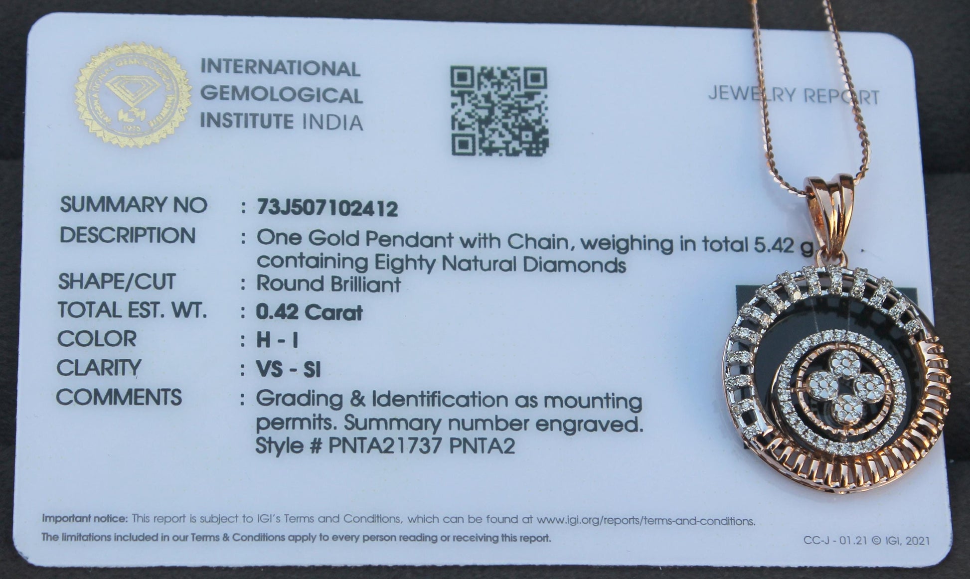 Natural Diamond Necklace Earrings Set, 18K Gold Jewelry Set, Designer Gold Jewelry, Diamond Pendant with Chain, Rose Gold Stud Earring Set IGI Certified Real Diamond Gold Jewelry. Product Details- Necklace Details : Gold Purity : 18K Gold Gross Weight : 5.420 grams Net Weight : 5.336 grams Diamond Weight : 0.420 carat Diamond Color : H-I Diamond Clarity : VS-SI IGI Report : 73J507102412 IGI Certificate Report Link : https://www.igi.org/verify-your-report/?r=73J507102412 Earrings Details : Gold Purity : 18K Gold Gross Weight : 3.020 grams Net Weight : 2.958 grams Diamond Weight : 0.31 carat Diamond Color : H-I Diamond Clarity : VS-SI IGI Report : 73J150792412 IGI Certificate Report Link : https://www.igi.org/verify-your-report/?r=73J150792412 About Diamond :- The history of diamonds is a tale that spans millennia and continents. Diamonds were first discovered in India, where they were revered for their extraordinary beauty and symbolism. Ancient Indian texts, dating back to at least the 4th century BC, mention diamonds as "Vajra," a term signifying both thunderbolts and diamonds, highlighting their indestructibility. Natural Diamond, is one of such sparkling gemstones with various benefits. Real Heera symbolizes true undying love. Physically it is considered unbreakable. On the chemical ground, Diamond is said to be the strongest mineral present on the planet Earth. It is a naturally occurring material produced by components of carbon. Clear colorless diamonds are though quite rare and uncommon; diamonds with a tint of yellow and brown colors are most easily found. Real Diamond, popularly renowned as Heera in Hindi, is one of the nine gemstones on the list of Navratna gemstones. It is undeniably the first love of any woman. Customization:- We are able to make changes to this design according to your need or can make any other design you may desire, just send us photo of your favorite product and get it made in your desired materials. Care Instructions:- Wipe your jewelry with a soft cloth after every use Always store your jewelry in a flat box to avoid accidental scratches For more amazing designs visit our shop https://www.etsy.com/shop/Gemethysts