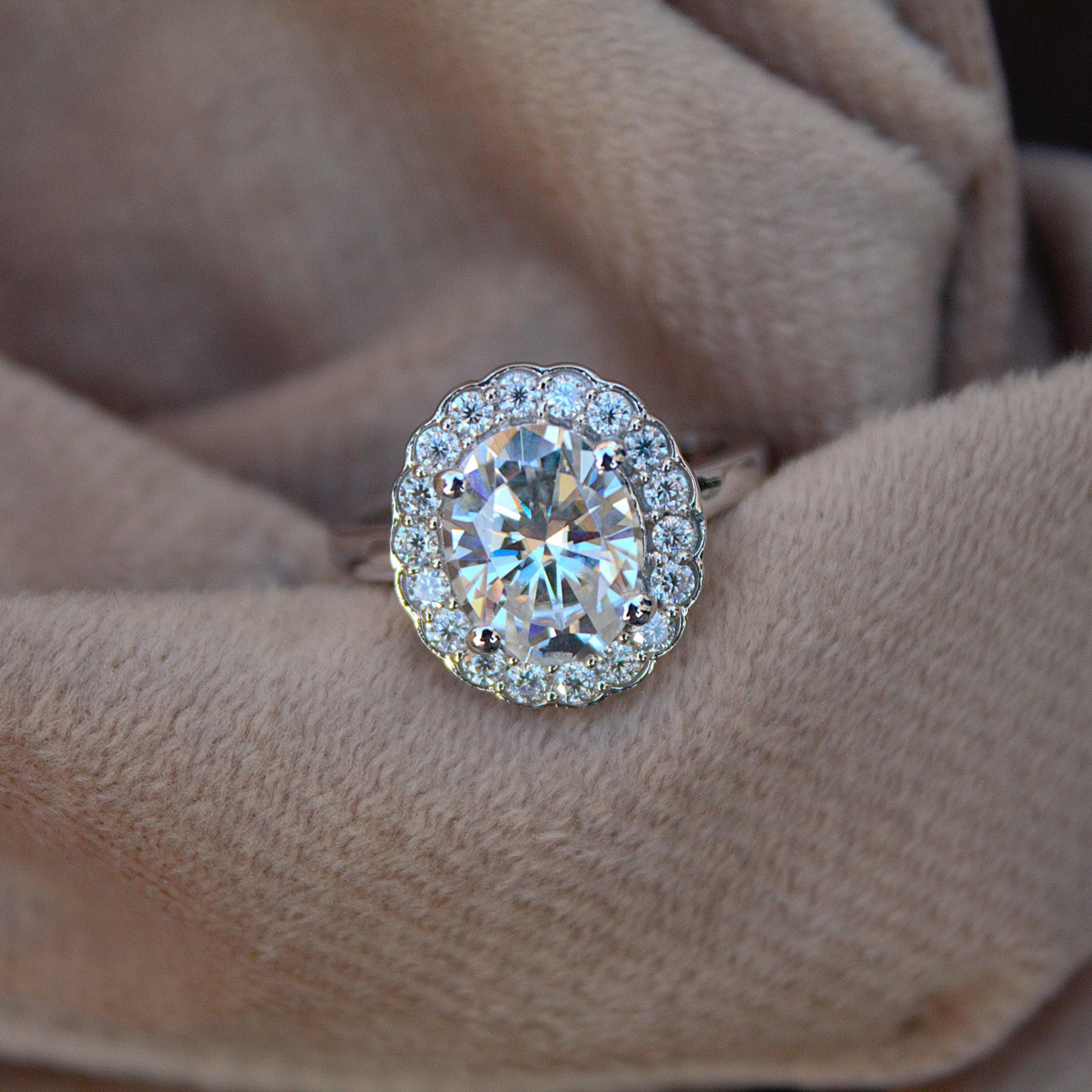 Oval Cut Moissanite Ring in 925 Sterling Silver, Solitaire Wedding Ring for Bride, Vintage Style Silver Jewelry, Travel Jewelry for Women Product Details : ✥ Material ::- 925 Sterling Silver ✥ Gemstone ::- Moissanite ✥ Gross Weight ::- 4.446 Gm. (approx) ✥ Net Weight ::- 3.816 Gm. (approx) ✥ Stone Weight ::- 3.153 Ct. (approx) ✥ Stone Quantity ::- 19 ✥ Ring Size ::- 6 US ✥ Gemstone Shape ::- Oval, Round Customization:- We are able to make changes to this design according to your need or can make any other design you may desire, just send us photo of your favourite product and get it made in your desired materials. Care Instructions:- Wipe your jewelry with a soft cloth after every use Always store your jewelry in a flat box to avoid accidental scratches Benefits Of Wearing Moissanite Gemstone :- Moissanite a diamond alternative encourages you to set greater goals and accomplish success and recognition in your industry of choice. Your personality becomes more endearing, likeable, and magnificent. Also Moissanite is diamond tester positive. Moissanite is believed to be a stone of the future and can help those who want to manifest their dreams and desires. It is said to enhance intuition and creativity and can help you tap into your inner power and potential. If you have any questions or need more information, Please feel free to contact us. For more amazing designs visit our shop https://www.etsy.com/shop/Gemethysts